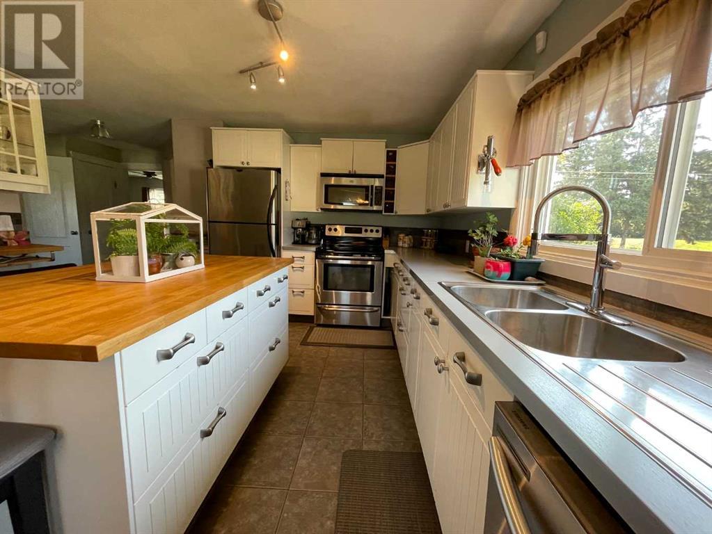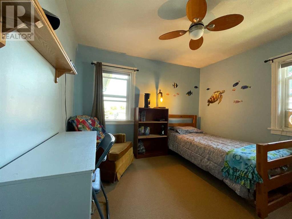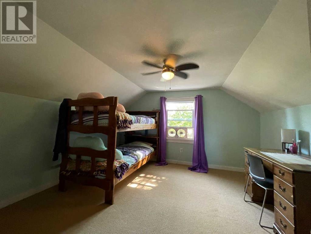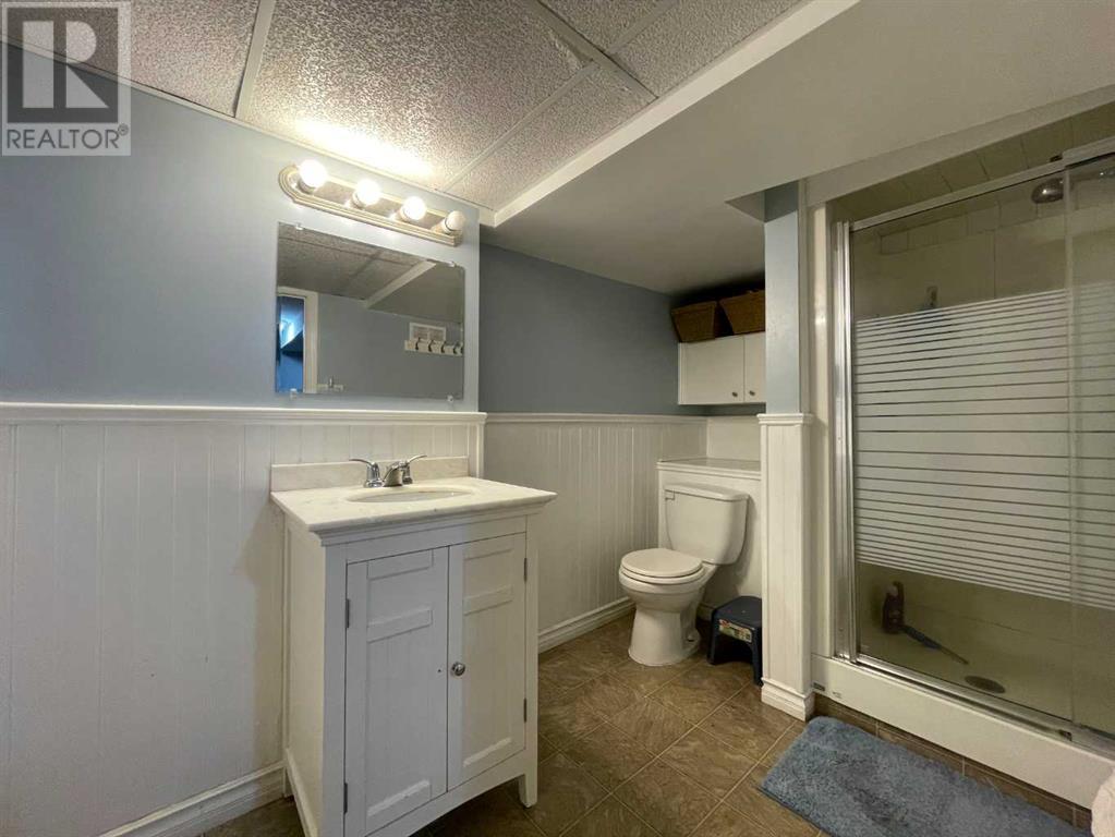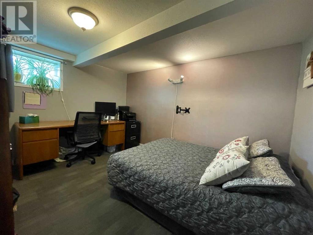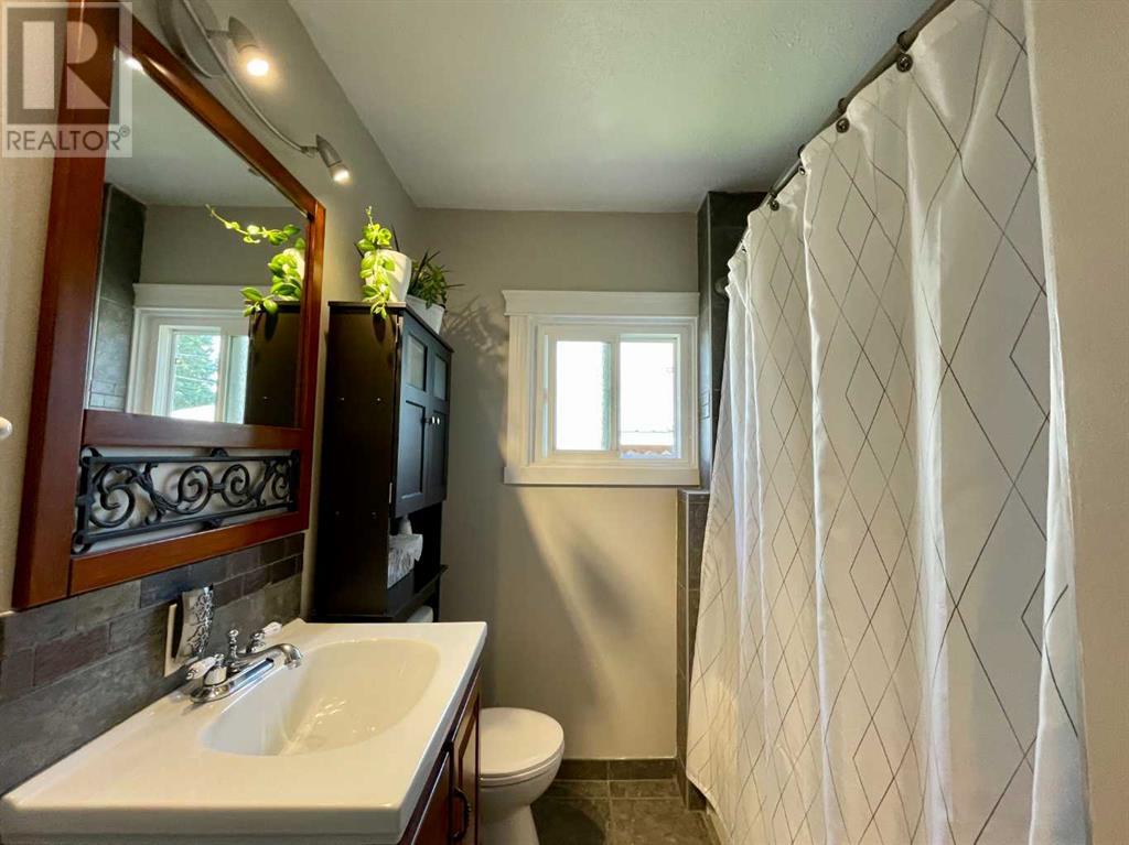 Character and charm are on full display in this spacious, and upgraded 1951 sq. ft. family home! Boasting 5 bedrooms, and 2 baths there is plenty of space for everyone. Gather in the stunning, expansive kitchen featuring crisp white cabinetry, stainless steel appliances, and a sit-up island, or the living room with hardwood flooring and decorative crown moldings. Two bedrooms are located on the main floor including the Primary bedroom. Upstairs you will find 2 more roomy bedrooms. The Basement is fully developed with a family room that is plumbed for a wet bar, 1 more bedroom and full bathroom. So many improvements over the years include new windows, new kitchen, interior/exterior doors, and flooring. More recently, shingles were replaced (2018), new window and garden door (2023), new fence in backyard (2022), new paint (2023), kitchen faucet (2023), and 2 new ceiling fans. Enjoy the serenity of the fenced and beautifully landscaped backyard with a firepit and storage shed. There are no neighbors behind or to the South of this home. It is perfect for outdoor activities. There is also extra space to park an RV. You will love this location that is in close proximity to the golf course and park, walking trails along the Battle River, and the community garden. You will notice pride of ownership and value in this well maintained, affordable property. (id:22211)