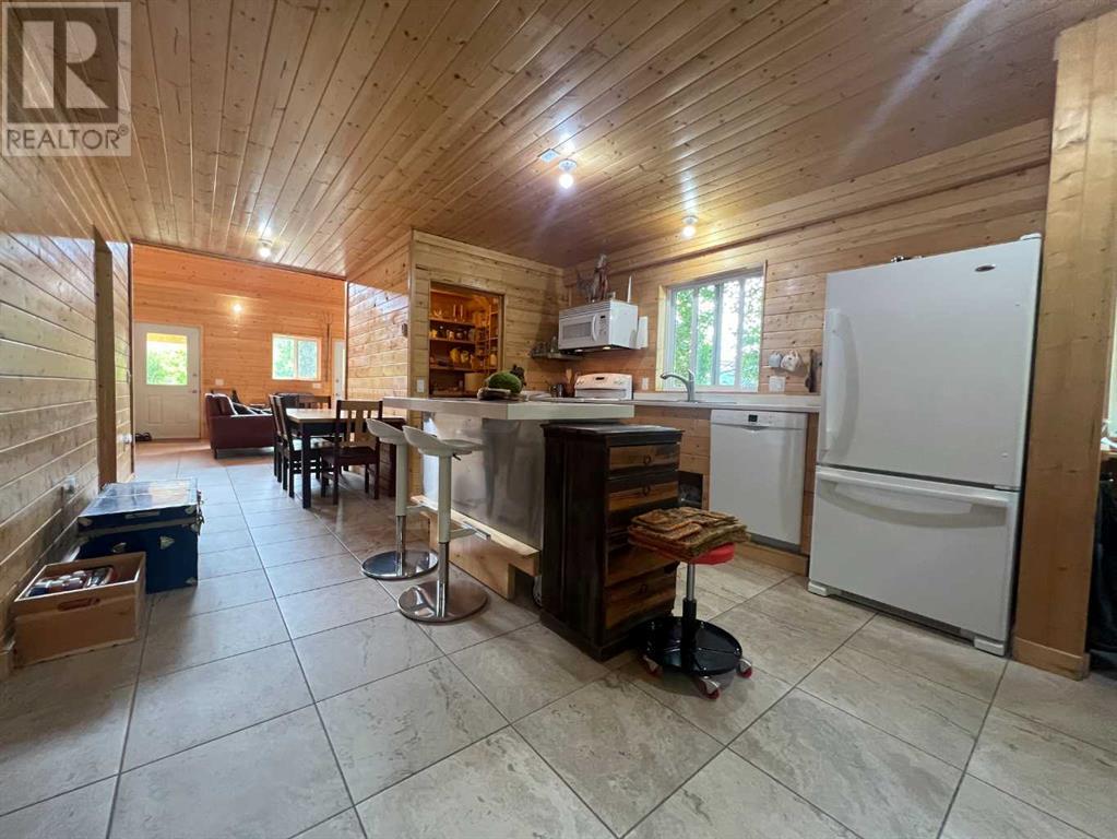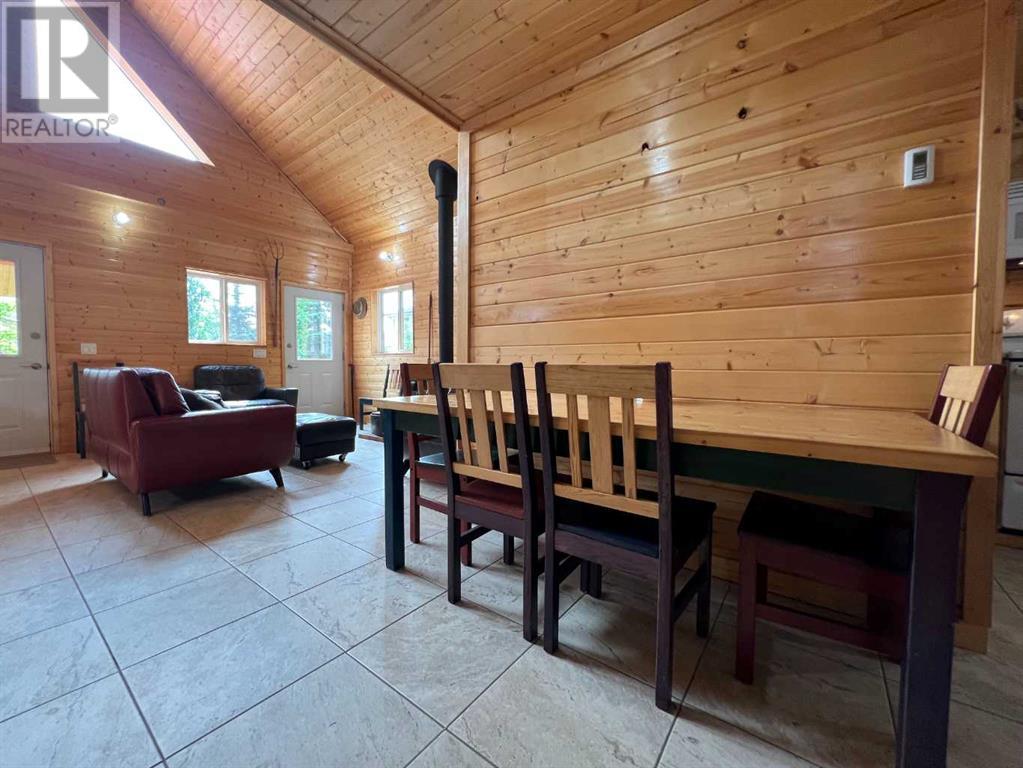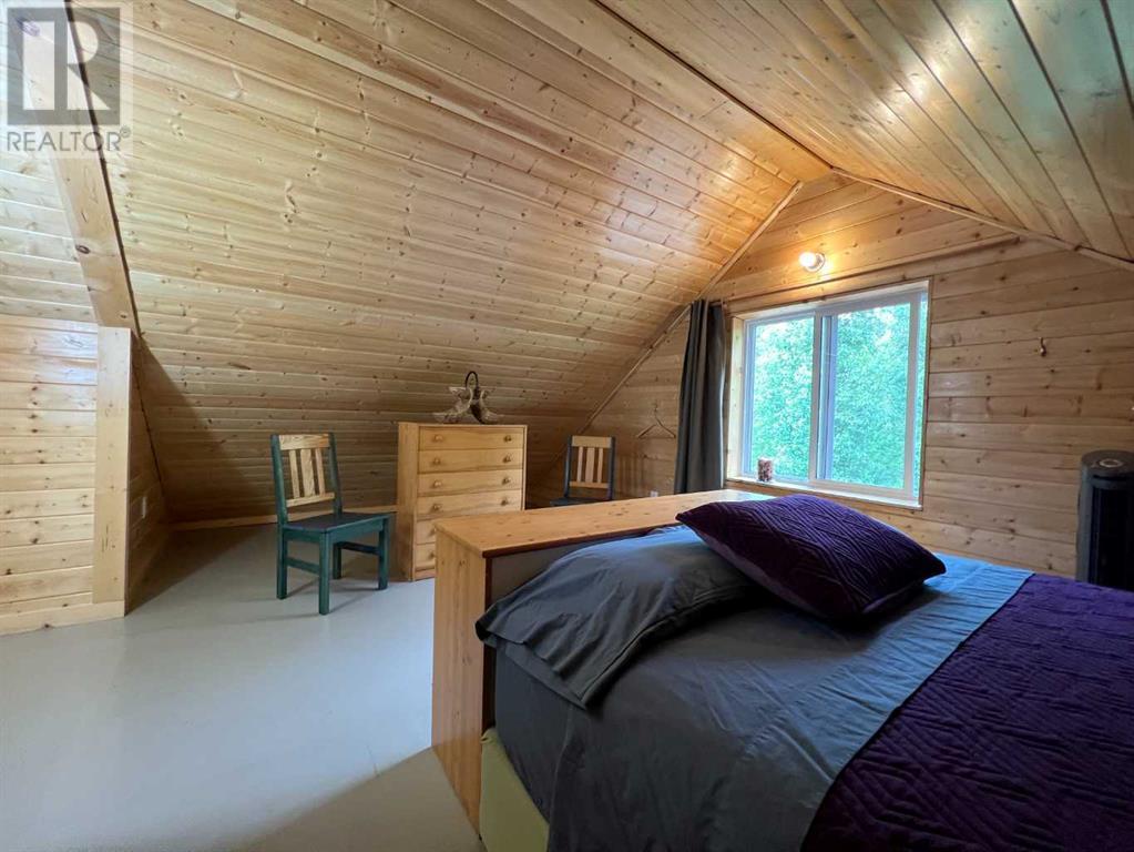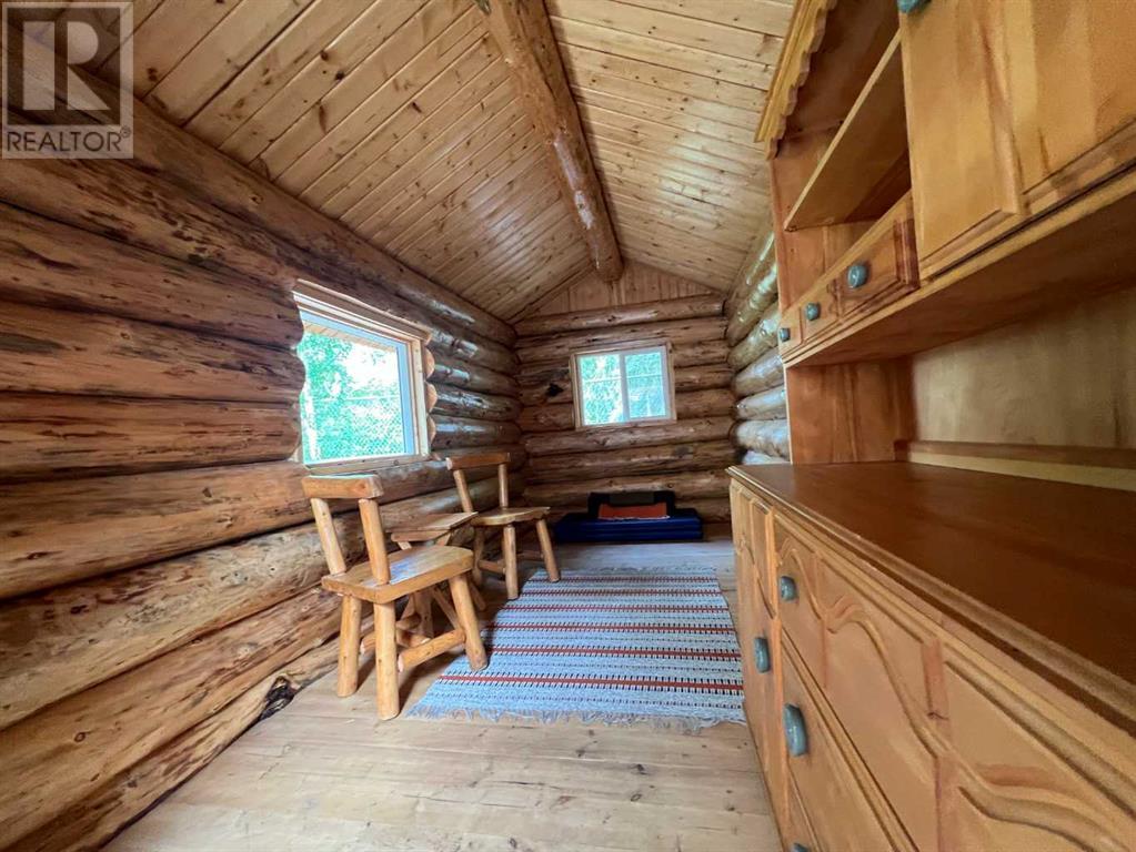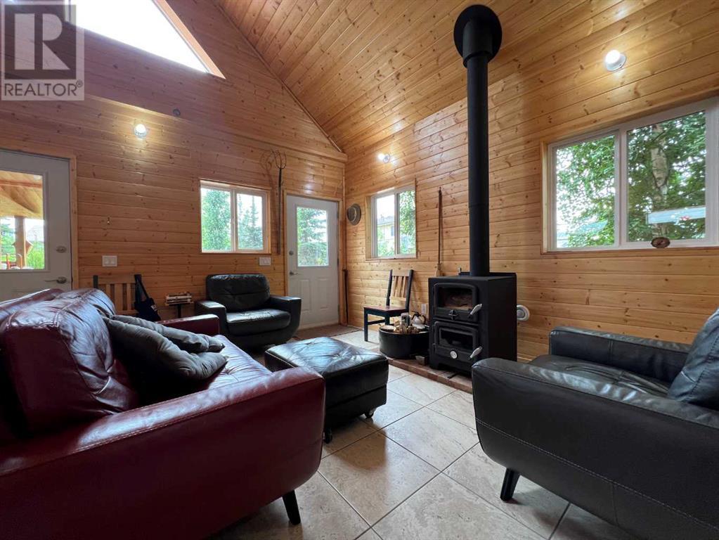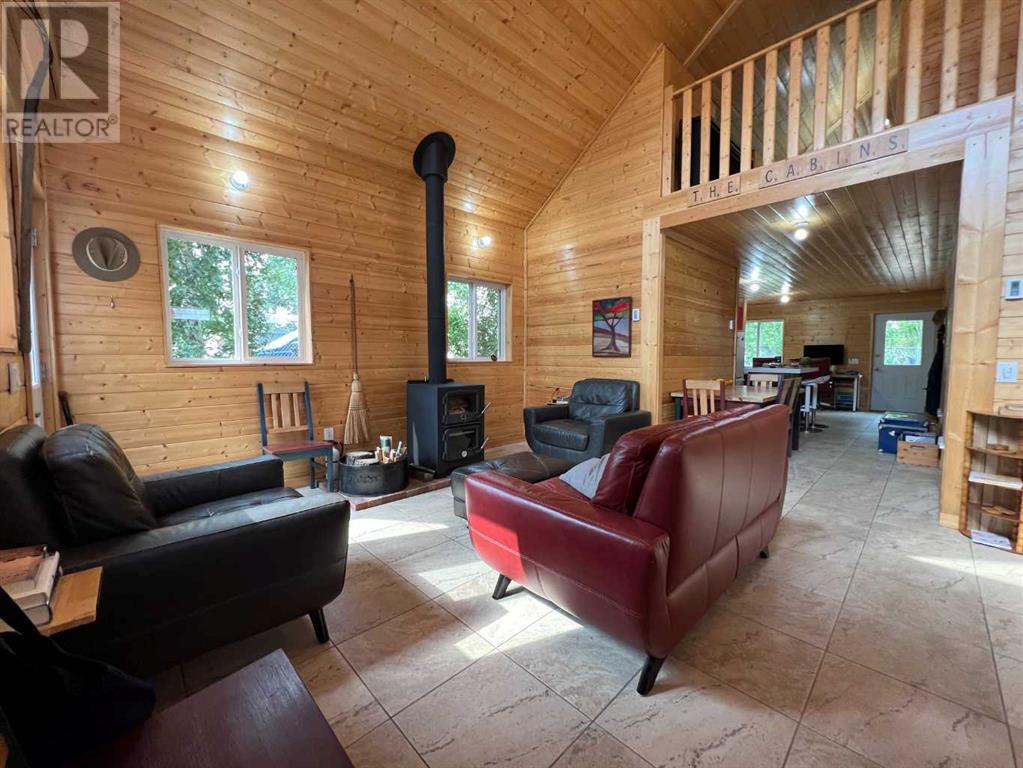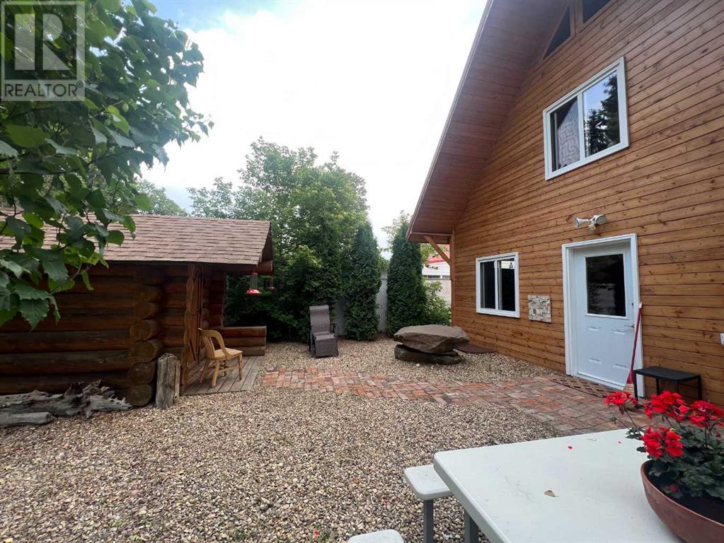 This lightly lived in, charming, one of a kind property has a prime location backing onto the park along the Battle River. The lot features hard-packed coarse sand with a layer of topsoil, providing a solid foundation. Surrounding the lot is a chain-link fence, 6 feet high at the back and sides, and 3 feet high at the front, in compliance with Ponoka Bylaws. Convenient access is available through lockable gates at the back and south side of the property.The front of the property boasts natural landscaping, including a large sandstone boulder, mature trees, and a privacy hedge along the front. There are also raised beds and a garden plot on the south side, with sandstone boulders adding a touch of character. A brick path connects the main dwelling to a log guest cabin/studio. Gravel covers the area from the gates to the dwellings and around the raised beds, and Parkland Pillars line the brick path.The main dwelling is a thoughtfully designed 24'x40' Knotty Pine Cabin with energy-efficient features. The steel-roofed cabin includes front and back roof extensions, three entry doors, and extra windows for ample natural light. The cabin also benefits from an automatic heat-exchange ventilation system, providing comfortable year-round living. Heating is provided by a silent and dust-free electric under-floor system with independent thermostats for five zones. A modern wood-burning stove with a baking oven adds coziness to the sitting area.The cabin's interior offers 2 bedrooms, and 2 full baths upon an open layout with a spacious level entrance, sitting area, studio, bathroom, bedroom, main floor laundry, modern kitchen, large pantry, and office/work space. The tile floors throughout the main floor offer easy cleaning and warm up well with the in-floor heat. The kitchen boasts beautiful quartz countertops and a moveable island for convenience. The loft serves as a master bedroom suite, complete with a full bathroom and ample storage. The entire cabin is illuminated wit h LED lighting, some with dimmer controls. Outdoor security is enhanced by motion-detecting lights over the exterior doors.A pine and steel-roofed carport, currently utilized as a wood and stone work shop, is attached to the front of the cabin. Additional shop benches and wood storage can be found on the north side of the cabin. Don't miss this opportunity to own a unique, energy efficient property with a well-designed cabin and beautiful surroundings. (id:22211)