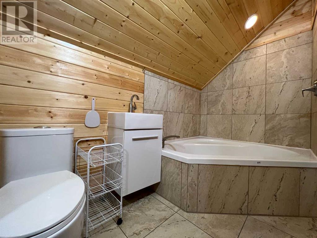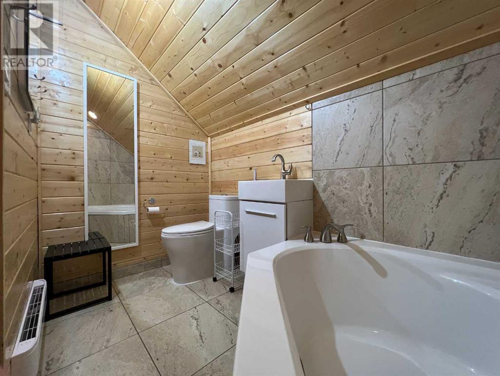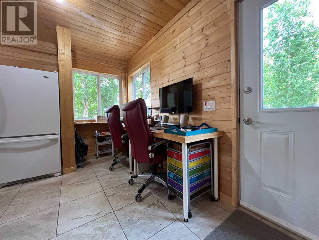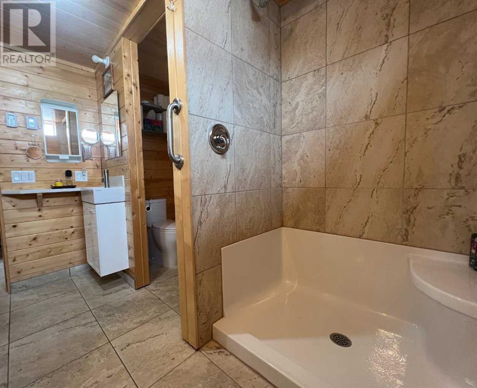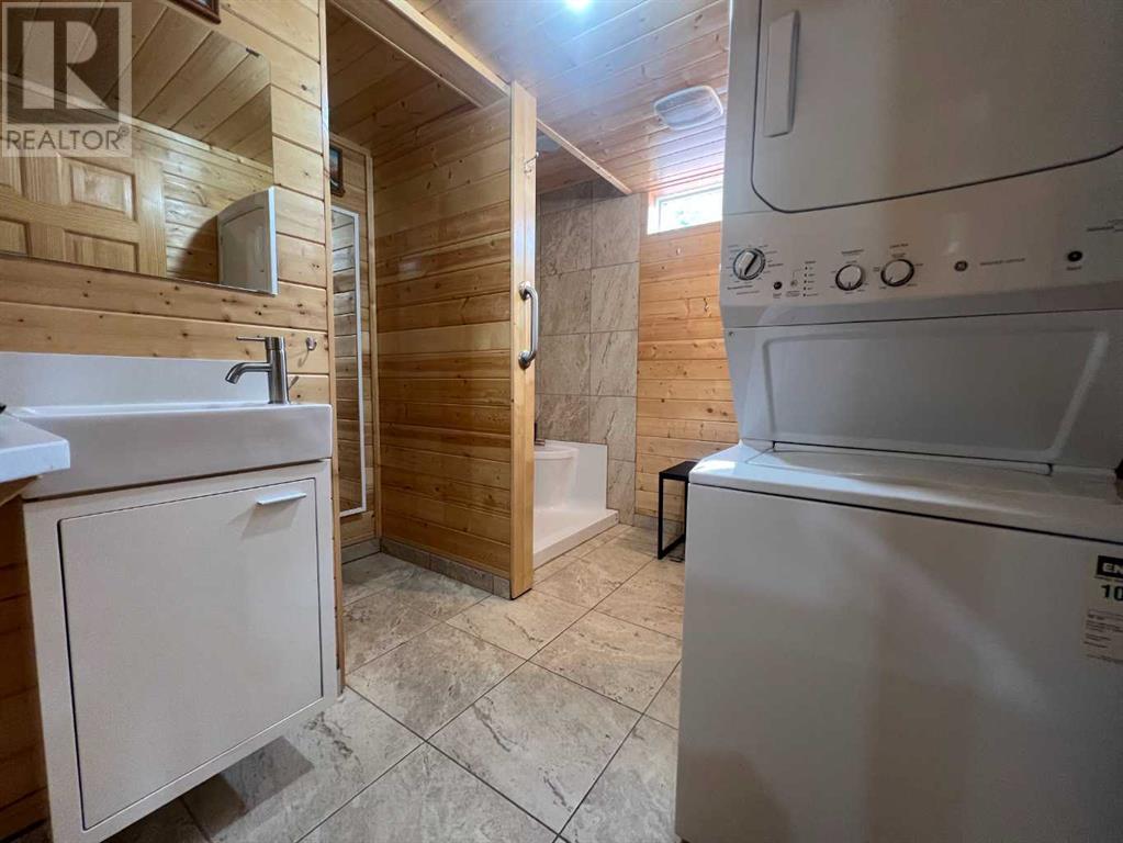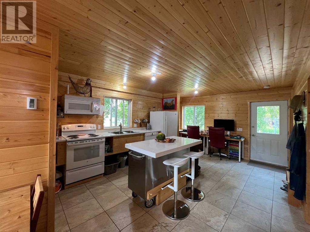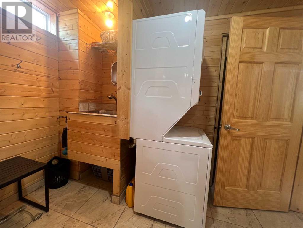 This lightly lived in, charming, one of a kind property has a prime location backing onto the park along the Battle River. The lot features hard-packed coarse sand with a layer of topsoil, providing a solid foundation. Surrounding the lot is a chain-link fence, 6 feet high at the back and sides, and 3 feet high at the front, in compliance with Ponoka Bylaws. Convenient access is available through lockable gates at the back and south side of the property.The front of the property boasts natural landscaping, including a large sandstone boulder, mature trees, and a privacy hedge along the front. There are also raised beds and a garden plot on the south side, with sandstone boulders adding a touch of character. A brick path connects the main dwelling to a log guest cabin/studio. Gravel covers the area from the gates to the dwellings and around the raised beds, and Parkland Pillars line the brick path.The main dwelling is a thoughtfully designed 24'x40' Knotty Pine Cabin with energy-efficient features. The steel-roofed cabin includes front and back roof extensions, three entry doors, and extra windows for ample natural light. The cabin also benefits from an automatic heat-exchange ventilation system, providing comfortable year-round living. Heating is provided by a silent and dust-free electric under-floor system with independent thermostats for five zones. A modern wood-burning stove with a baking oven adds coziness to the sitting area.The cabin's interior offers 2 bedrooms, and 2 full baths upon an open layout with a spacious level entrance, sitting area, studio, bathroom, bedroom, main floor laundry, modern kitchen, large pantry, and office/work space. The tile floors throughout the main floor offer easy cleaning and warm up well with the in-floor heat. The kitchen boasts beautiful quartz countertops and a moveable island for convenience. The loft serves as a master bedroom suite, complete with a full bathroom and ample storage. The entire cabin is illuminated wit h LED lighting, some with dimmer controls. Outdoor security is enhanced by motion-detecting lights over the exterior doors.A pine and steel-roofed carport, currently utilized as a wood and stone work shop, is attached to the front of the cabin. Additional shop benches and wood storage can be found on the north side of the cabin. Don't miss this opportunity to own a unique, energy efficient property with a well-designed cabin and beautiful surroundings. (id:22211)