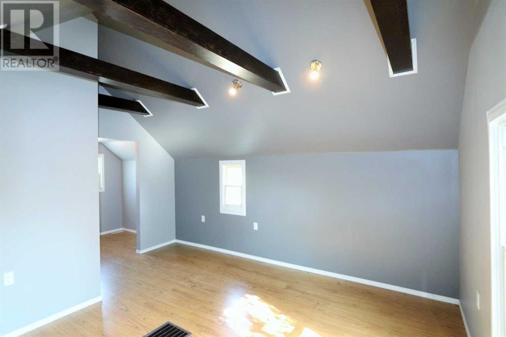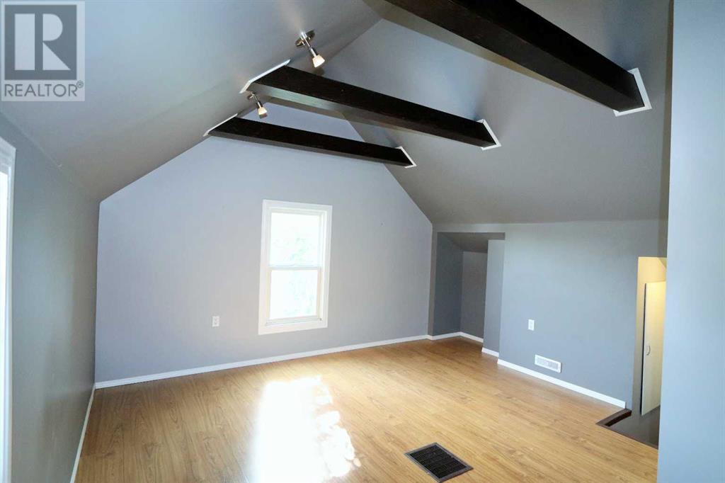 Ready for immediate possession. Upgraded one and half storey home with central location near schools, shopping, pool and arena. the main floor has 2 bedrooms, full bathroom and kitchen/dining area with exposed brick feature. The upper level has a large primary bedroom with exposed beams, walk-in closet and full ensuite bathroom. Some of the recent upgrades include new insulation and drywall in all bedrooms and living room, new flooring in living room, updated kitchen, new electrical panel, front and rear decks, painted interior and exterior, fenced rear yard and shingles replaced 3 years ago. Lots of room in the fenced rear yard with garden area. Lots of parking area in the front driveway. (id:22211)