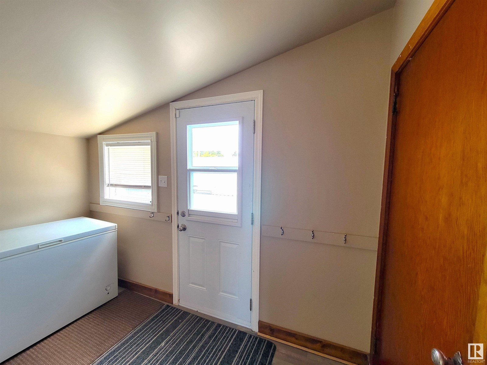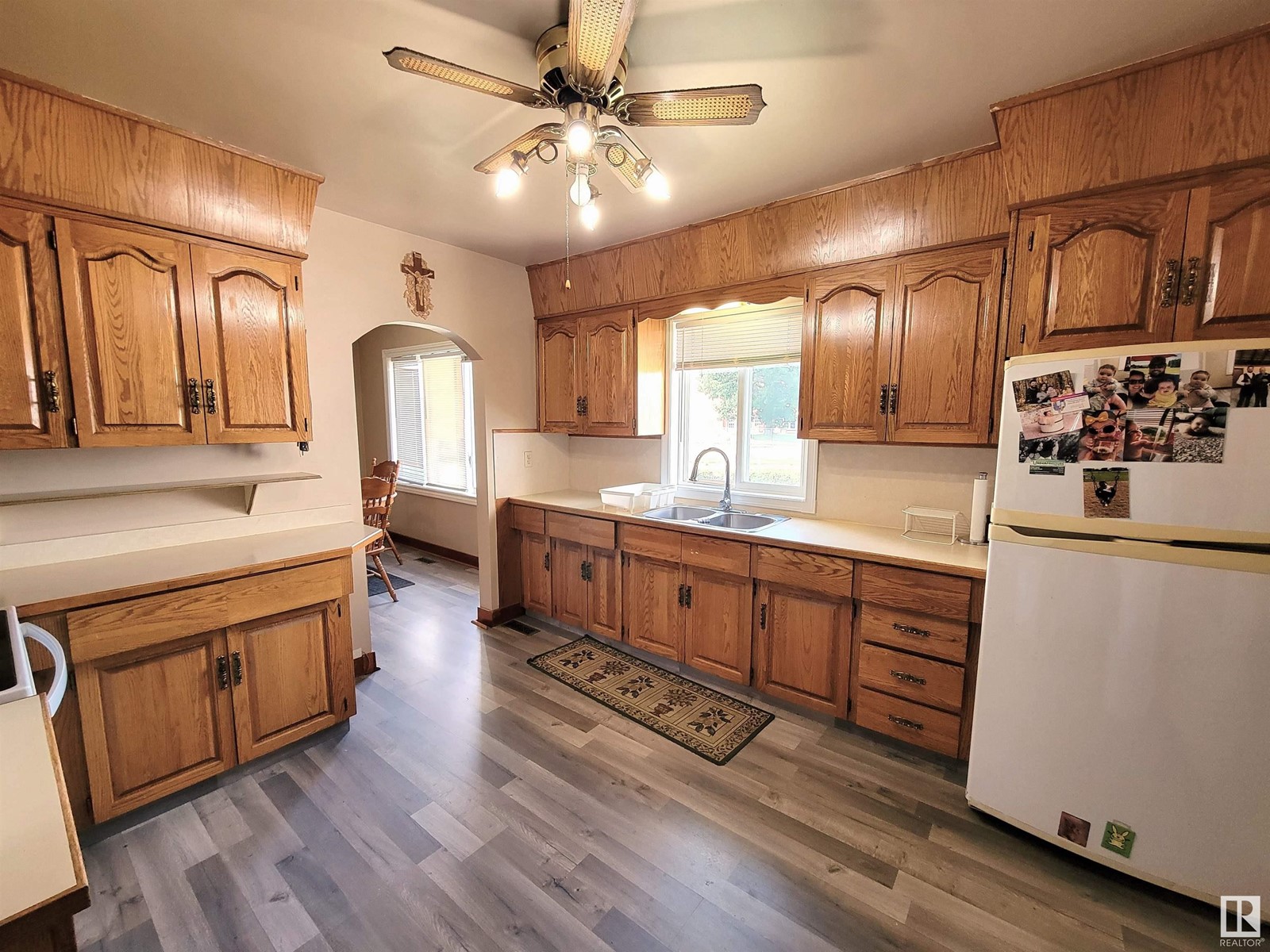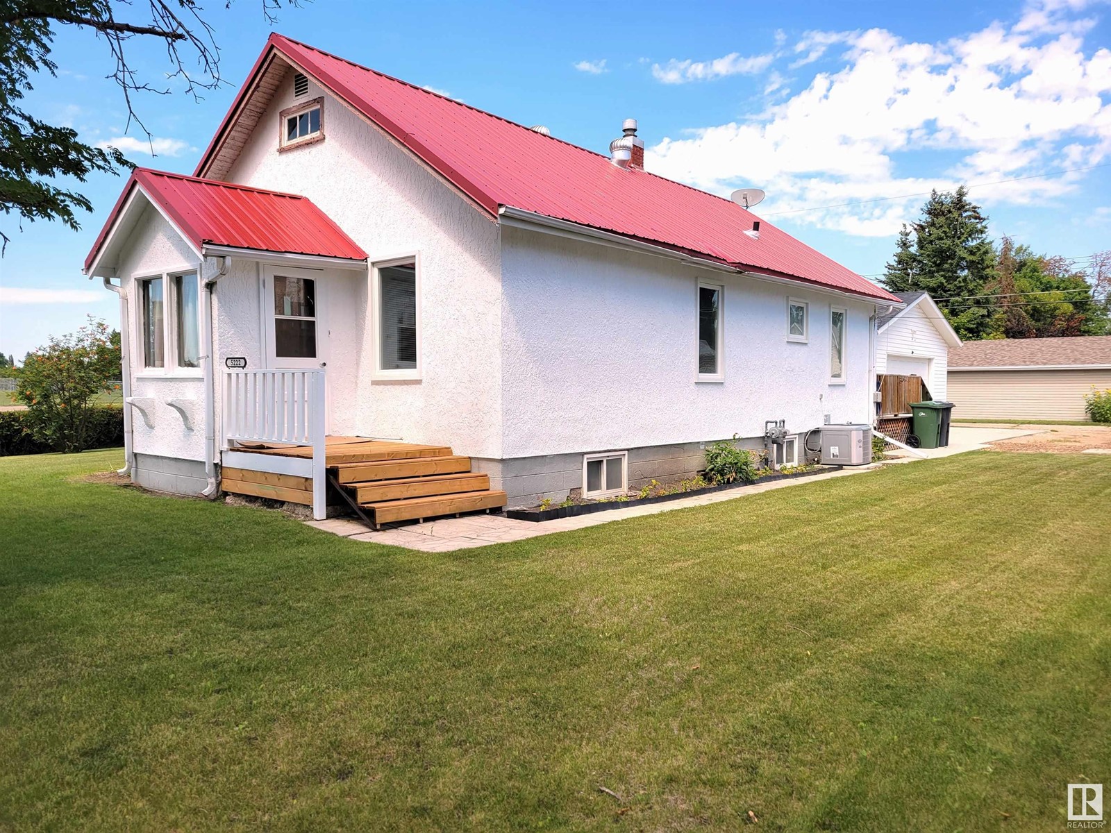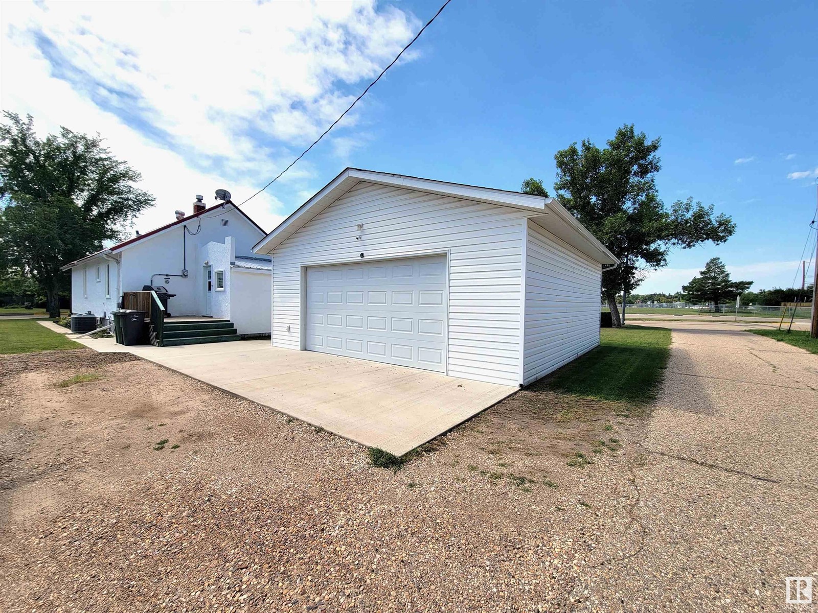 This cute as a button 980 sq ft character home with 4 bedrooms & 2 bathrooms is waiting for a decorators touch! Curved archways in between rooms adds the sweet touch that makes this home special. All new vinyl windows throughout, new roof, central Air Conditioning, new flooring, security system, newer furnace and hot water tank! 30'x11'Attached single garage plus a newly added detached garage 26 x 26 comes completed with insulated walls and work benches! New concrete pads are excellent for RV parking or extra vehicle parking! This home has been completely painted inside and out! Concrete foundation! The basement needs just a bit of finishing touches to make it a suite or an excellent man cave or teenager space! New front porch and back BBQing deck. This house is solid!! The lot is enormous and very private with open space on 3 sides! (id:22211)