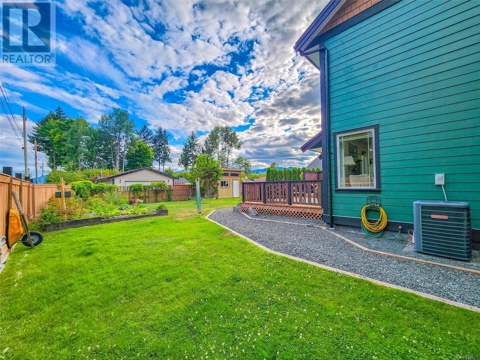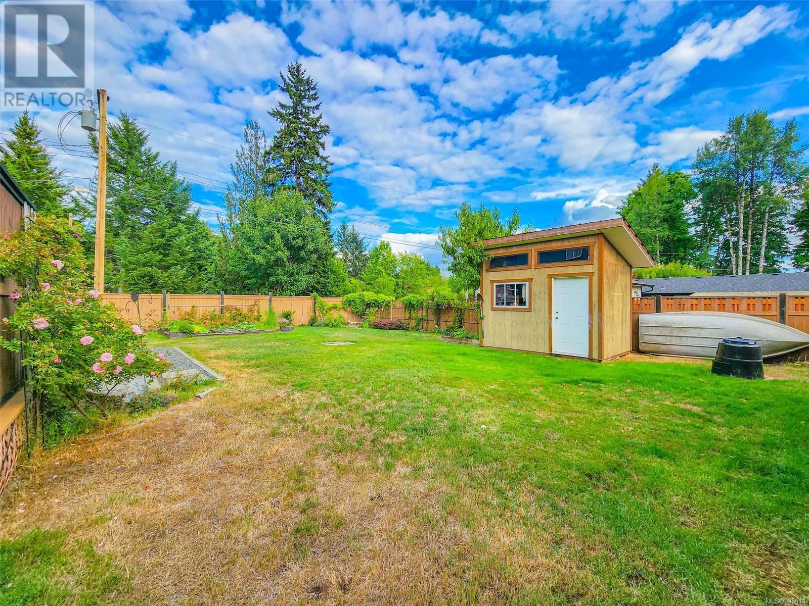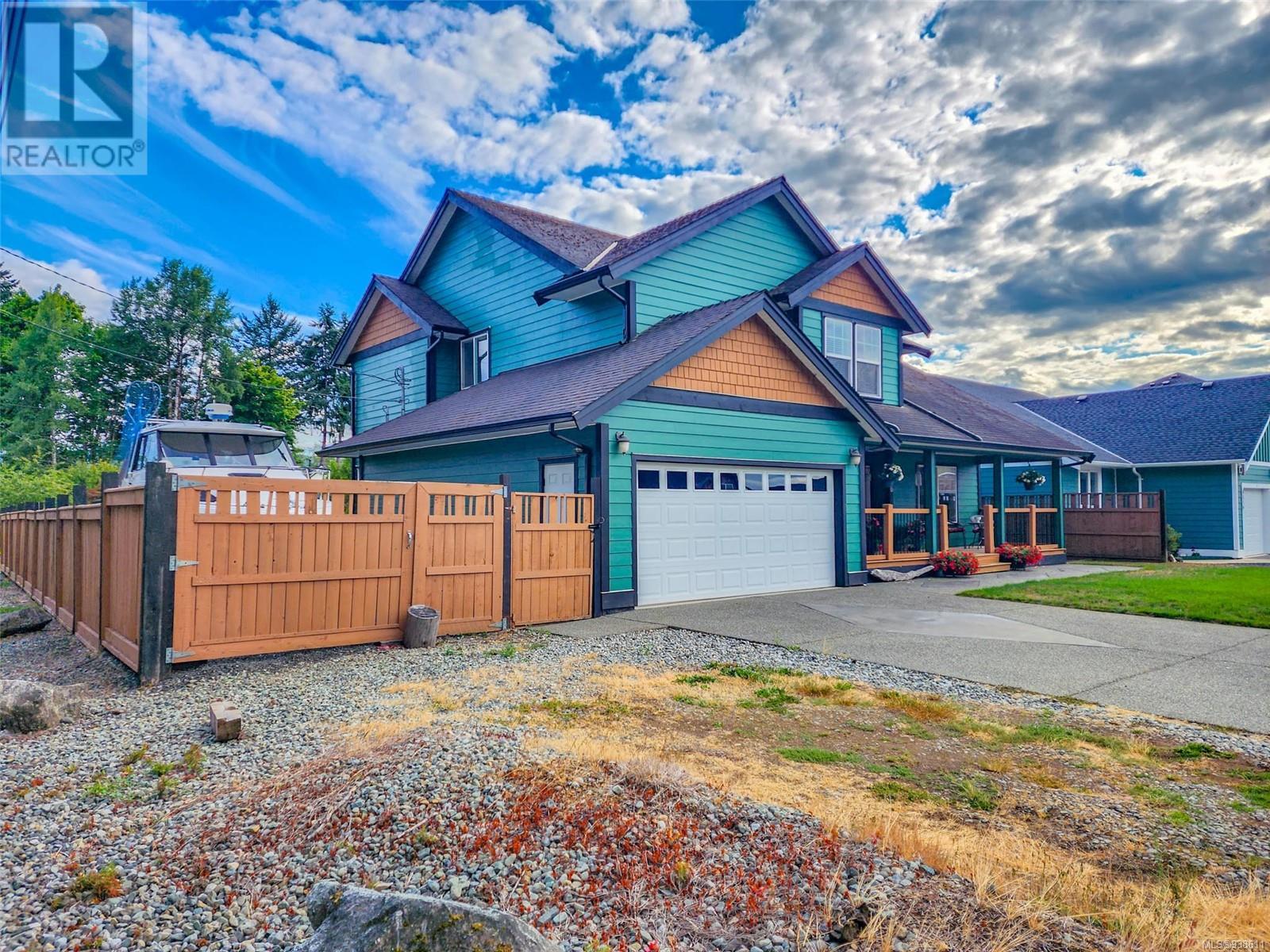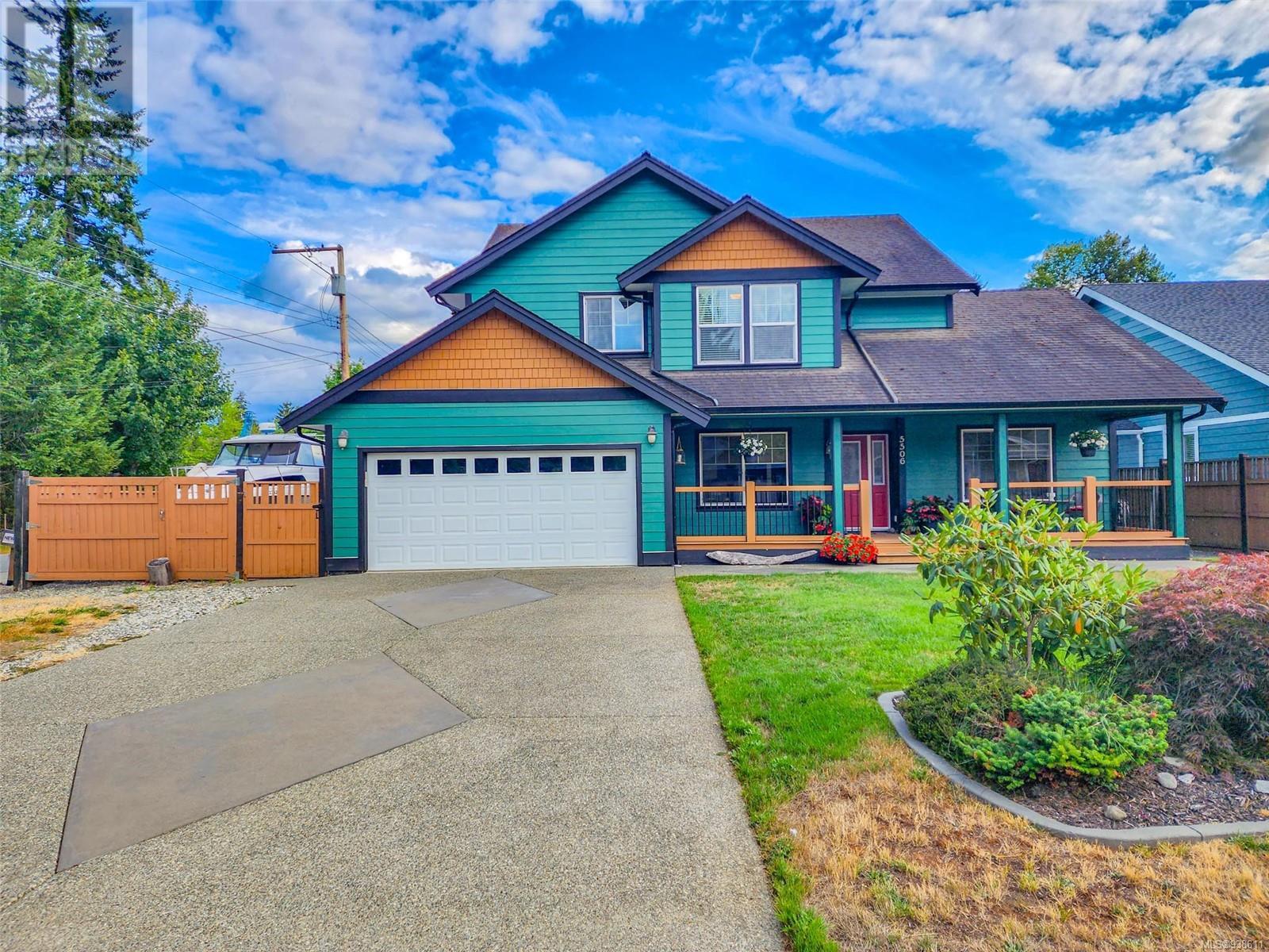 The wide front porch makes for a welcoming entry into this beautiful family home's impressive foyer, flanked by an office/den & the formal living/dining area. Quality and thought have gone into every room. The cozy family room sports a new granite-faced gas fireplace, just off the rich cherrywood & granite- topped kitchen with a breakfast bar with for five. From here, dine al fresco on the private & freshly painted 16 x 30 back deck with gas BBQ hookup, or step into the garden to harvest dinner. Ascend the sweeping staircase to the primary suite with a double vanity, soaker tub, custom tiled shower, and a walk-in closet. There are 3 more bedrooms & a full bath on this upper level. Easy living with low maintenance & freshly painted hardi-plank siding, fully fenced yard with 30+ feet of RV parking, double garage with workspace, a sweet 8 x 12 potting shed & an in ground sprinkler system. This jewel is located close to Clutesi Haven Marina in an attractive neighborhood. (id:22211)