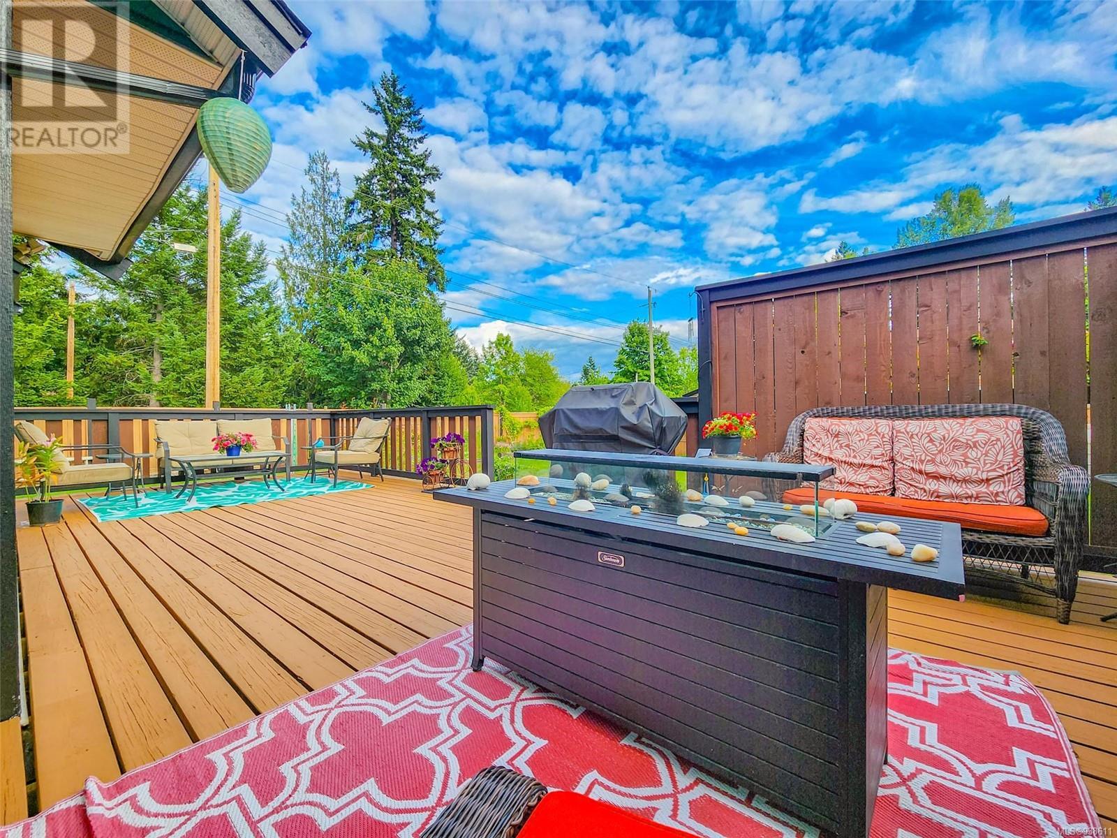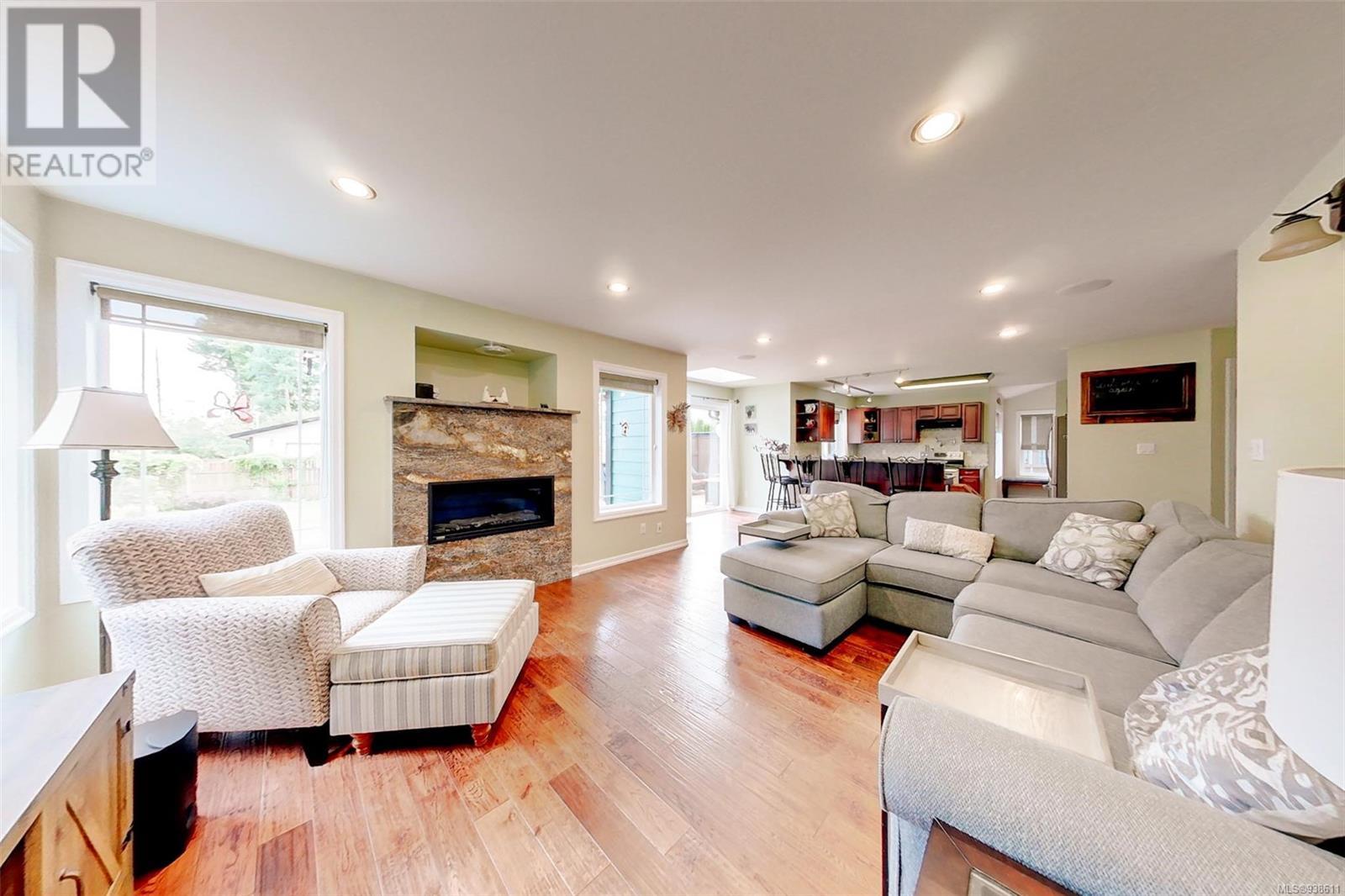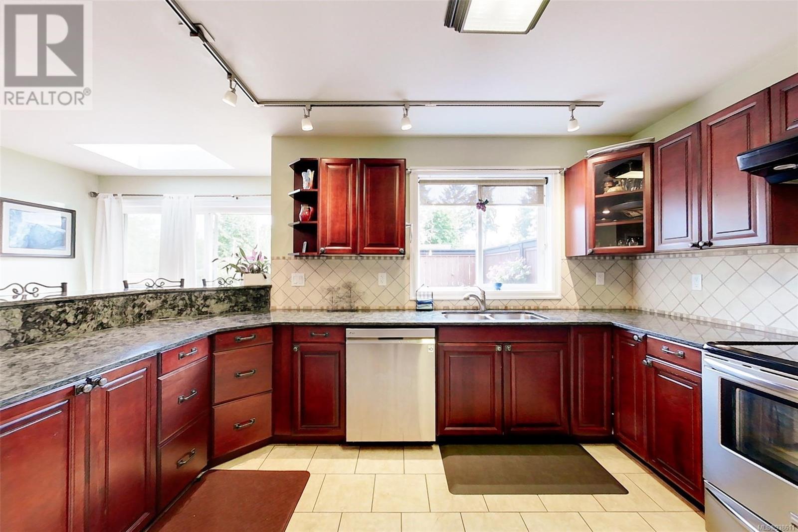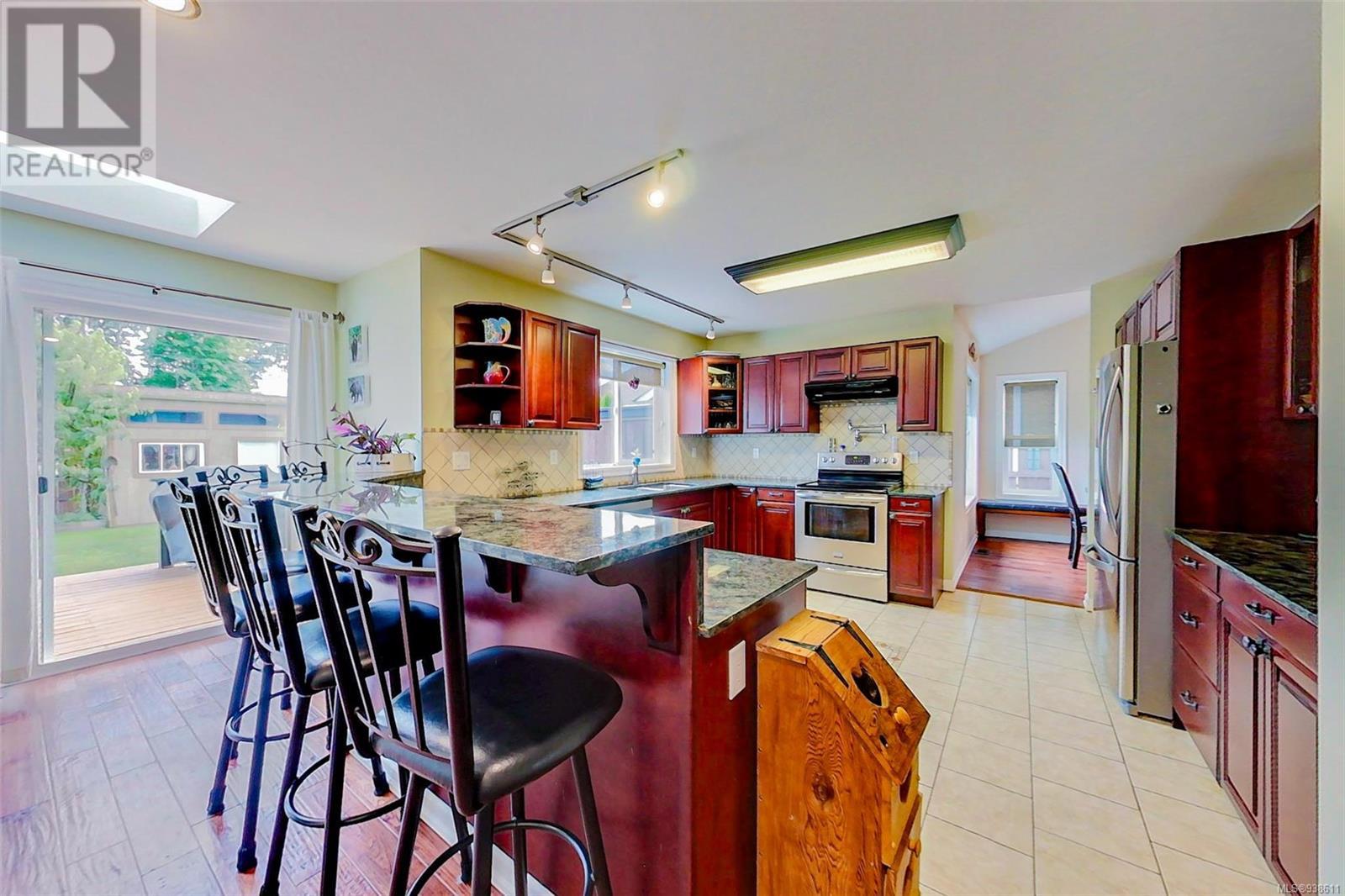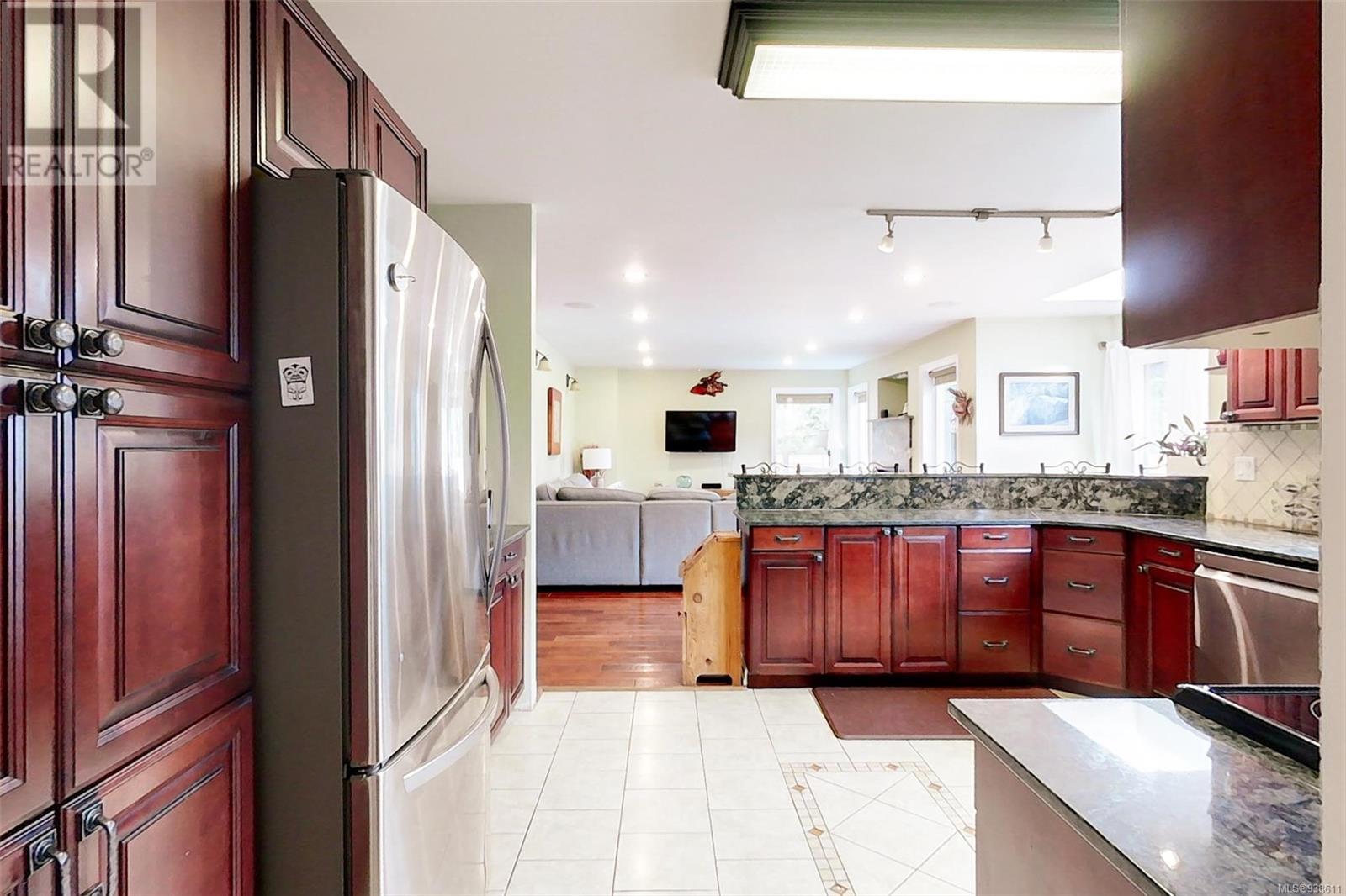 The wide front porch makes for a welcoming entry into this beautiful family home's impressive foyer, flanked by an office/den & the formal living/dining area. Quality and thought have gone into every room. The cozy family room sports a new granite-faced gas fireplace, just off the rich cherrywood & granite- topped kitchen with a breakfast bar with for five. From here, dine al fresco on the private & freshly painted 16 x 30 back deck with gas BBQ hookup, or step into the garden to harvest dinner. Ascend the sweeping staircase to the primary suite with a double vanity, soaker tub, custom tiled shower, and a walk-in closet. There are 3 more bedrooms & a full bath on this upper level. Easy living with low maintenance & freshly painted hardi-plank siding, fully fenced yard with 30+ feet of RV parking, double garage with workspace, a sweet 8 x 12 potting shed & an in ground sprinkler system. This jewel is located close to Clutesi Haven Marina in an attractive neighborhood. (id:22211)
