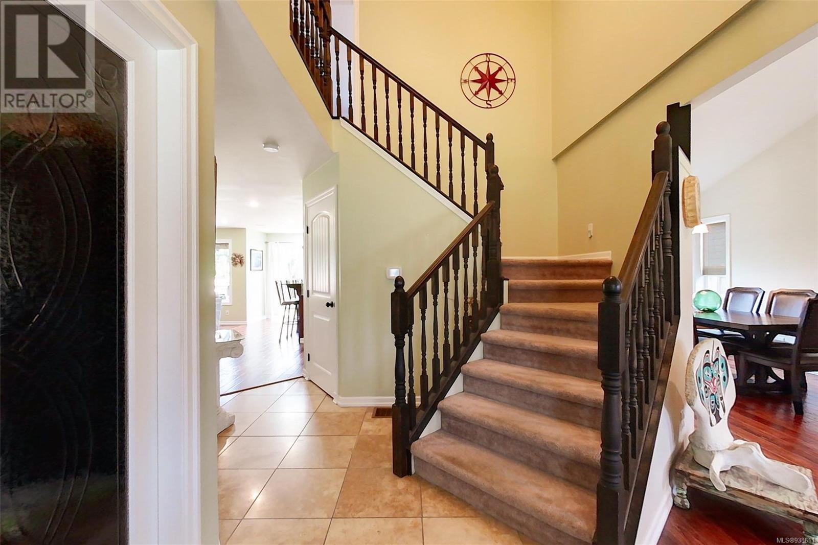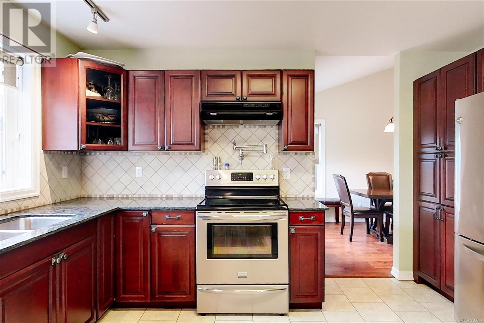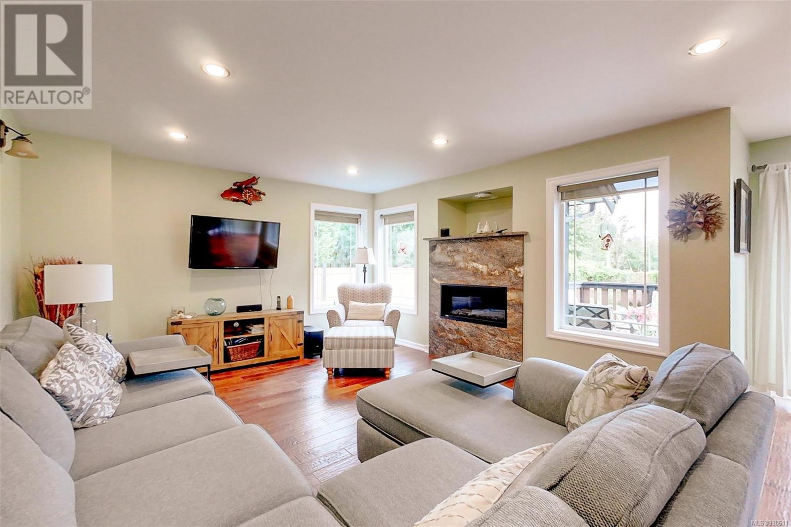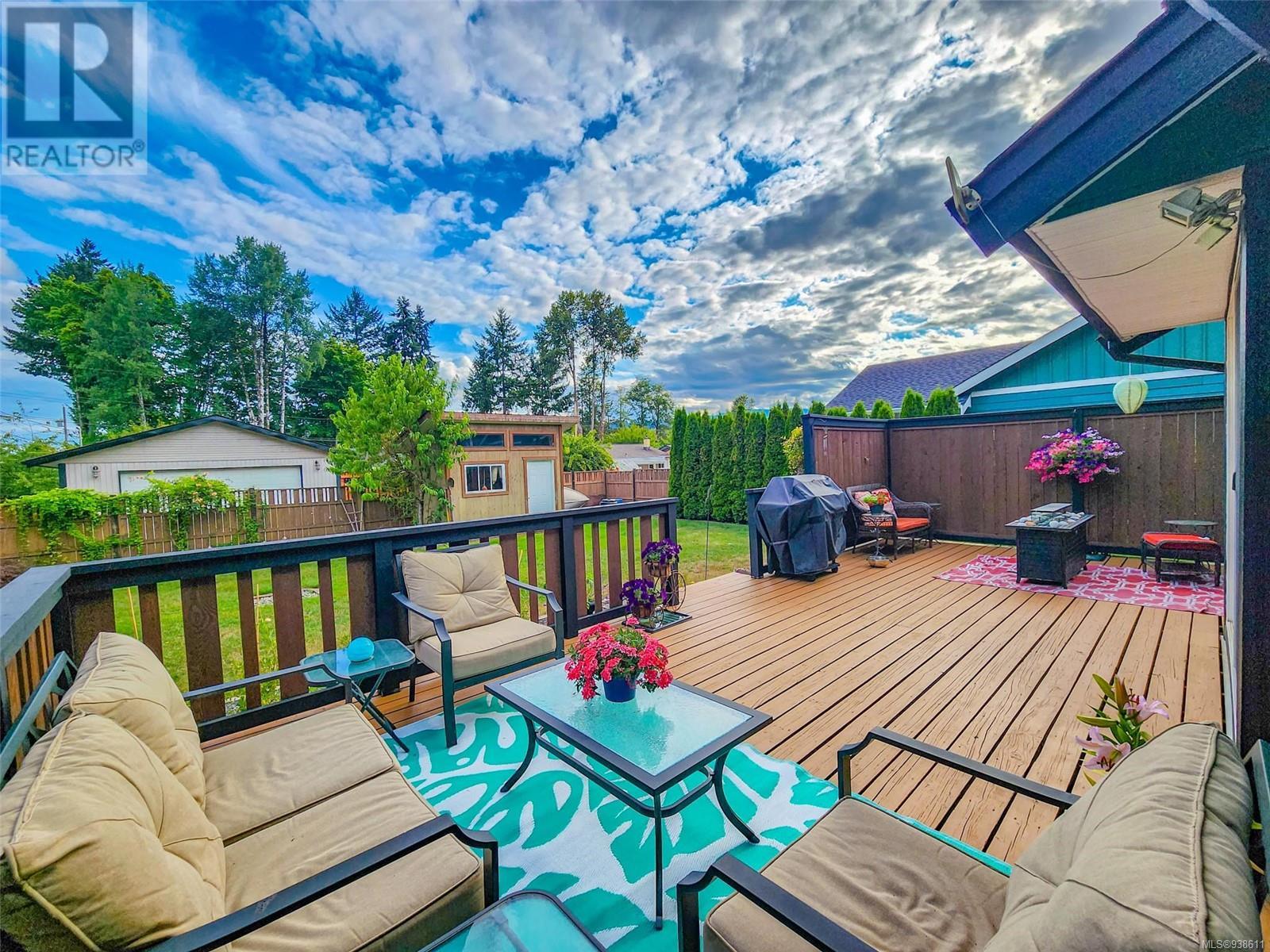 The wide front porch makes for a welcoming entry into this beautiful family home's impressive foyer, flanked by an office/den & the formal living/dining area. Quality and thought have gone into every room. The cozy family room sports a new granite-faced gas fireplace, just off the rich cherrywood & granite- topped kitchen with a breakfast bar with for five. From here, dine al fresco on the private & freshly painted 16 x 30 back deck with gas BBQ hookup, or step into the garden to harvest dinner. Ascend the sweeping staircase to the primary suite with a double vanity, soaker tub, custom tiled shower, and a walk-in closet. There are 3 more bedrooms & a full bath on this upper level. Easy living with low maintenance & freshly painted hardi-plank siding, fully fenced yard with 30+ feet of RV parking, double garage with workspace, a sweet 8 x 12 potting shed & an in ground sprinkler system. This jewel is located close to Clutesi Haven Marina in an attractive neighborhood. (id:22211)