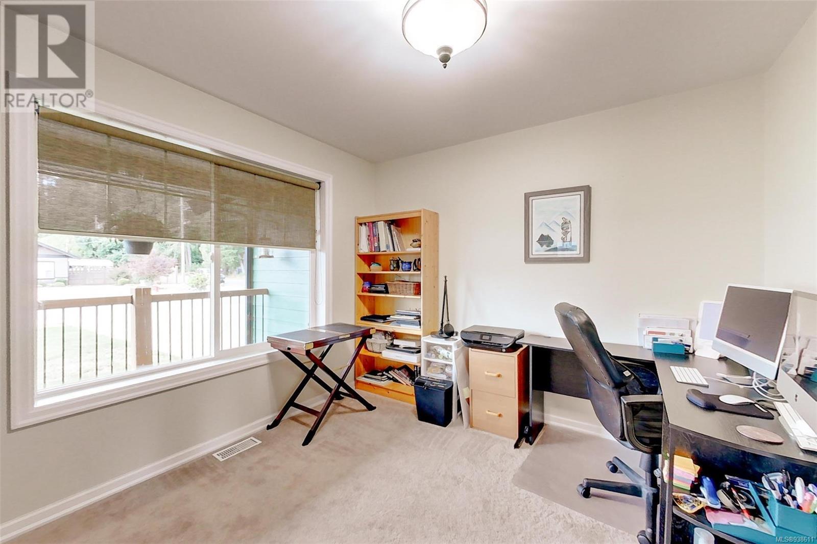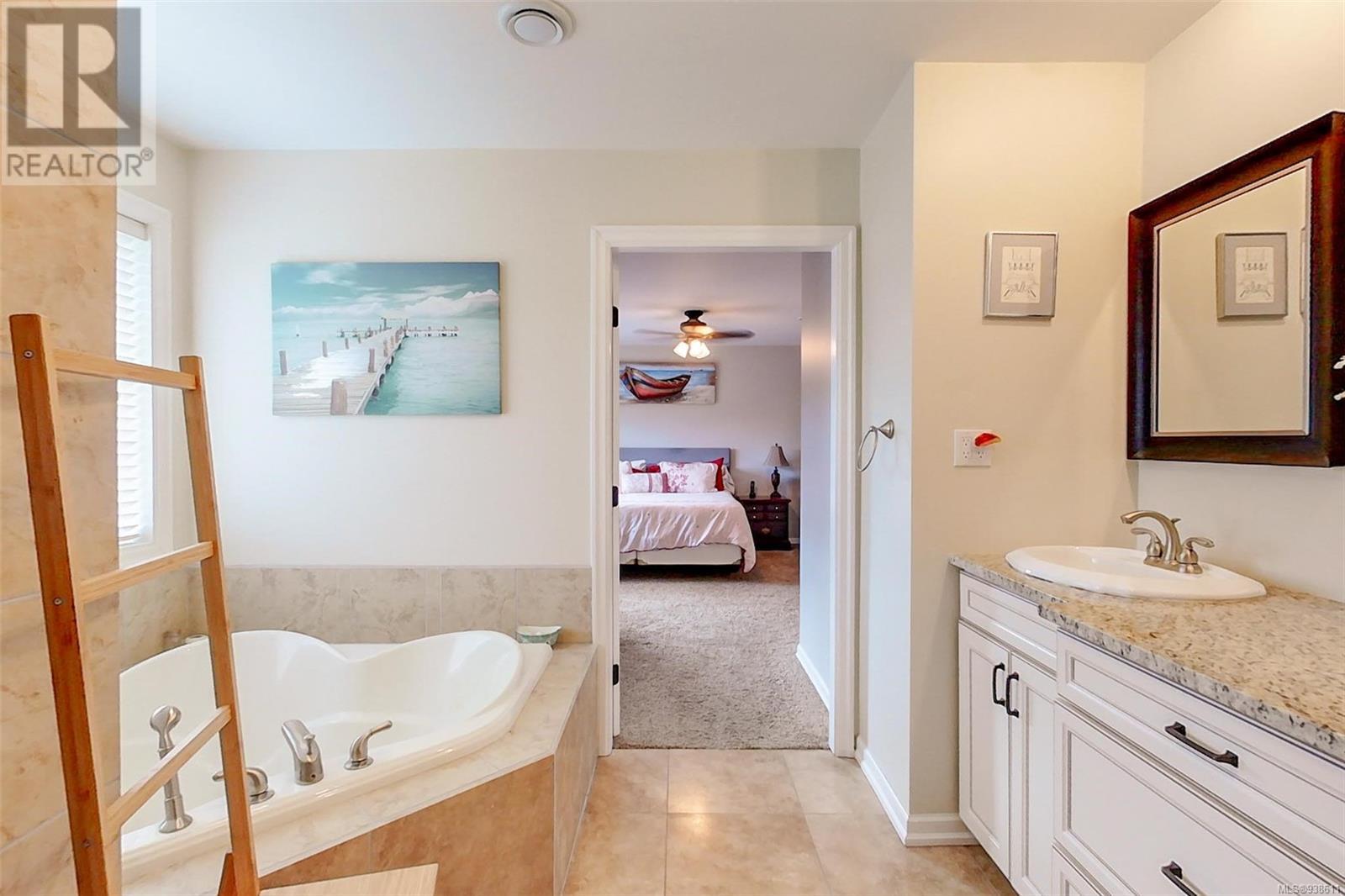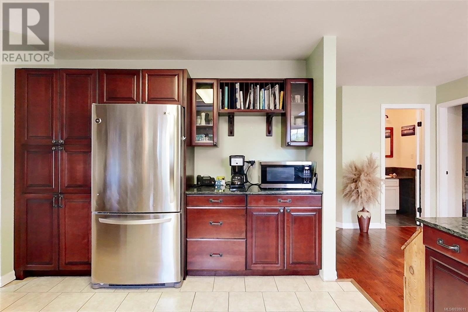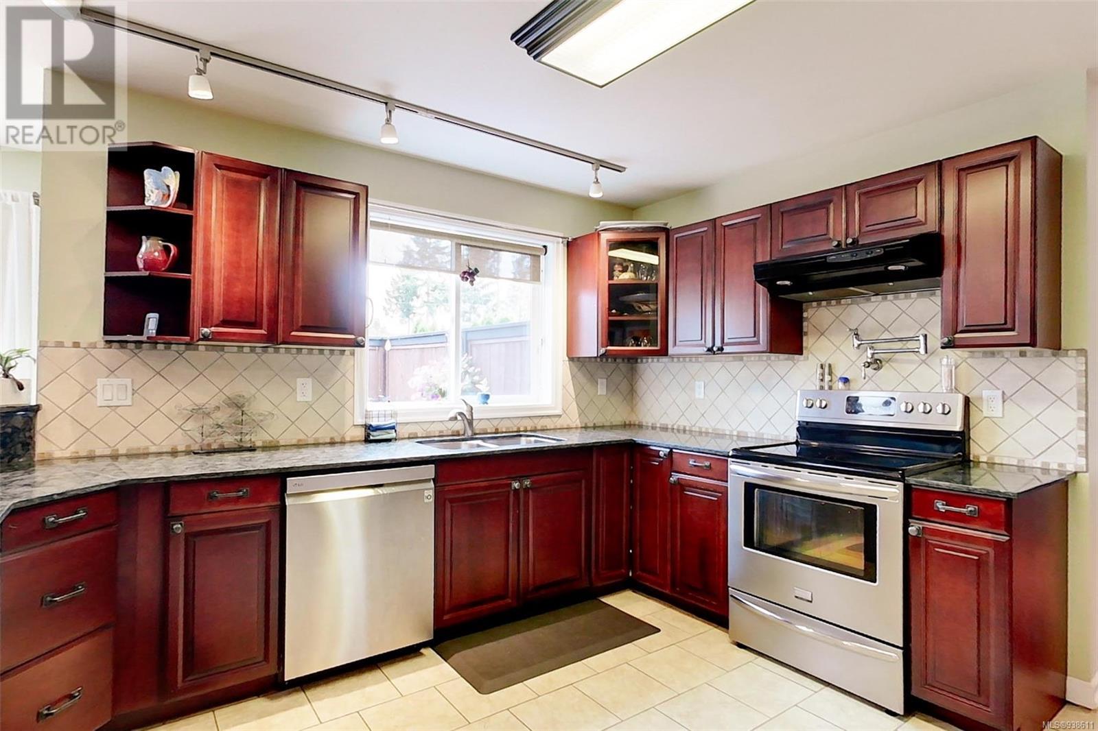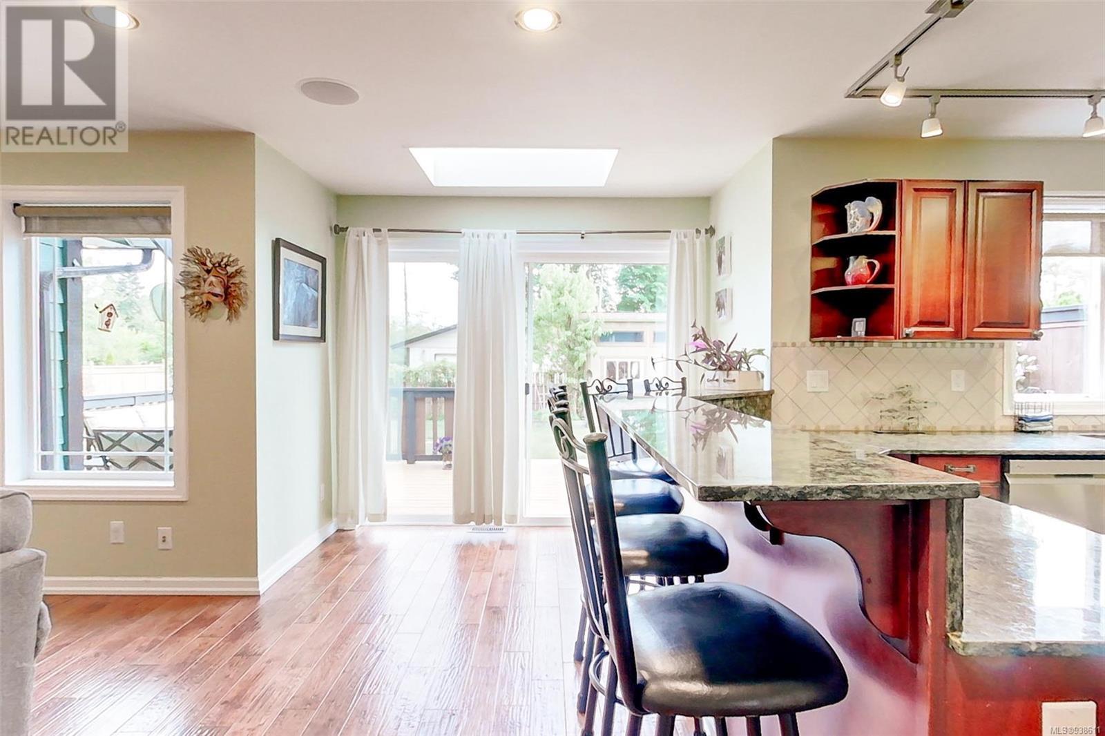 The wide front porch makes for a welcoming entry into this beautiful family home's impressive foyer, flanked by an office/den & the formal living/dining area. Quality and thought have gone into every room. The cozy family room sports a new granite-faced gas fireplace, just off the rich cherrywood & granite- topped kitchen with a breakfast bar with for five. From here, dine al fresco on the private & freshly painted 16 x 30 back deck with gas BBQ hookup, or step into the garden to harvest dinner. Ascend the sweeping staircase to the primary suite with a double vanity, soaker tub, custom tiled shower, and a walk-in closet. There are 3 more bedrooms & a full bath on this upper level. Easy living with low maintenance & freshly painted hardi-plank siding, fully fenced yard with 30+ feet of RV parking, double garage with workspace, a sweet 8 x 12 potting shed & an in ground sprinkler system. This jewel is located close to Clutesi Haven Marina in an attractive neighborhood. (id:22211)