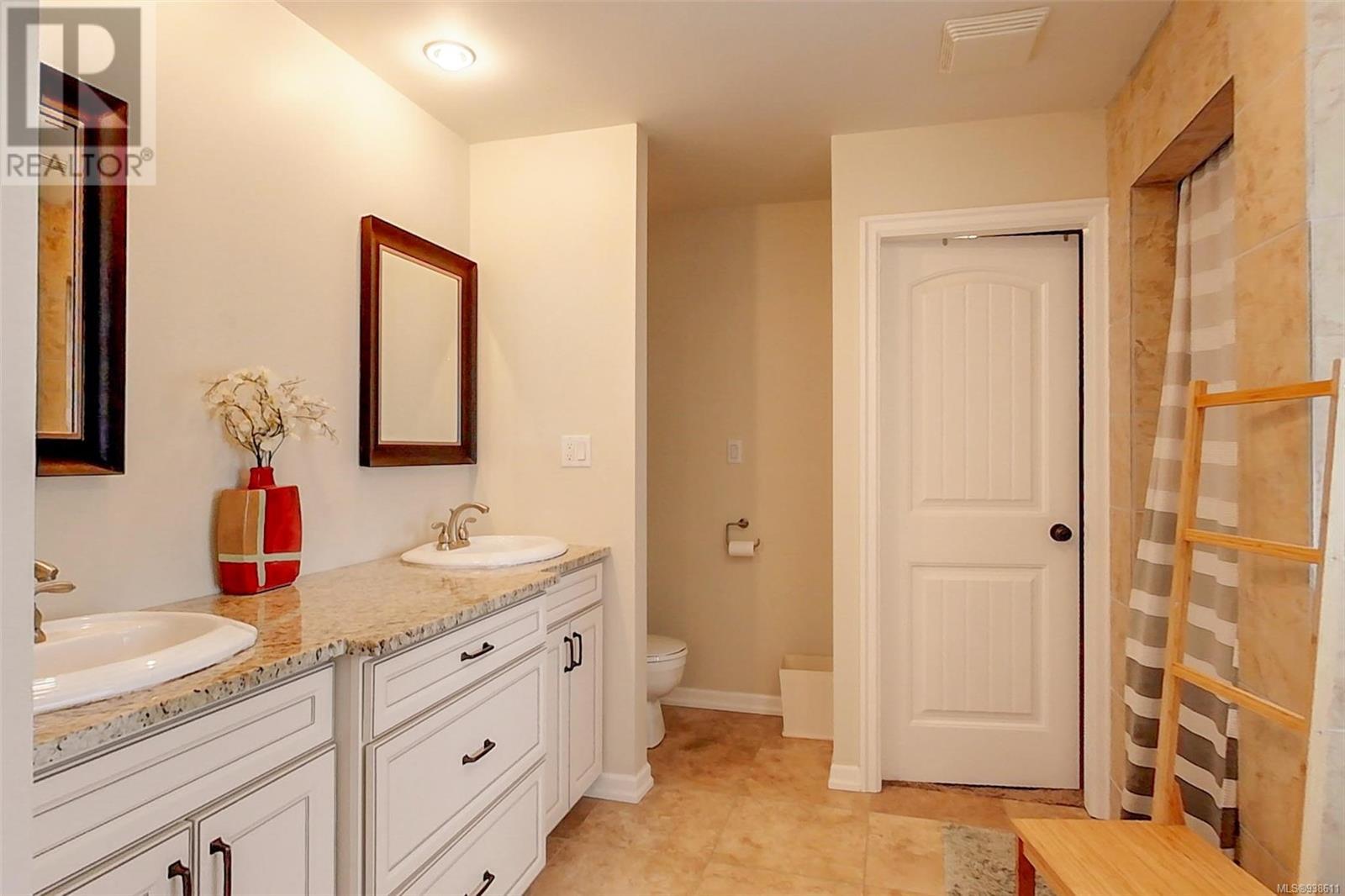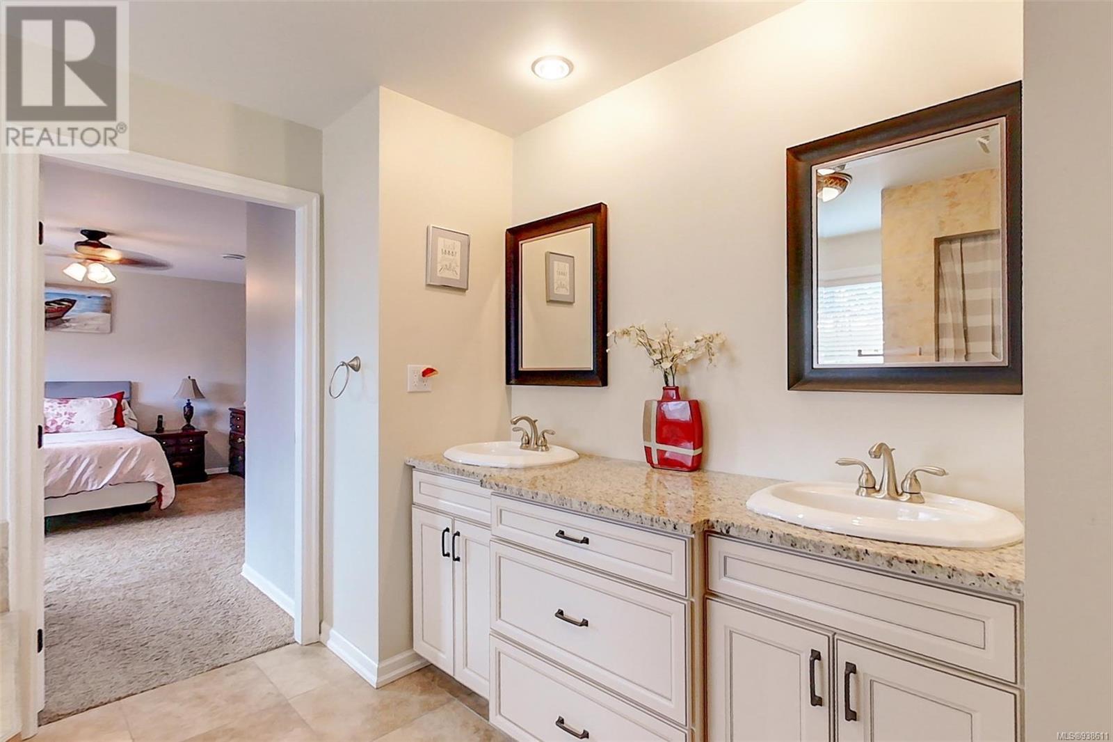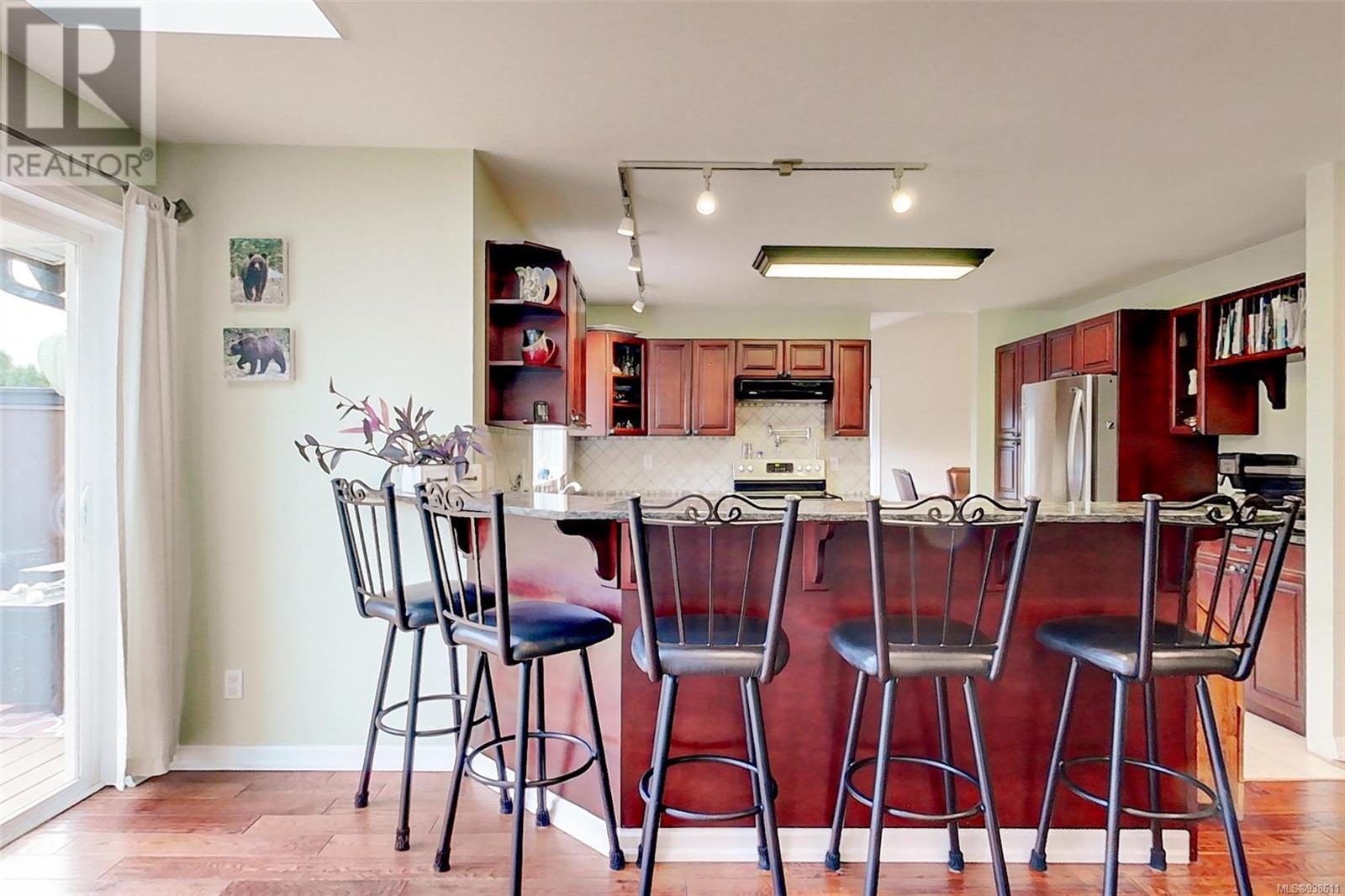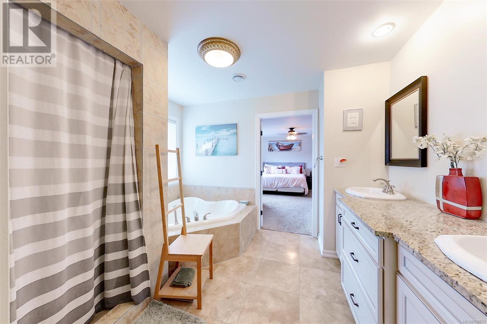 The wide front porch makes for a welcoming entry into this beautiful family home's impressive foyer, flanked by an office/den & the formal living/dining area. Quality and thought have gone into every room. The cozy family room sports a new granite-faced gas fireplace, just off the rich cherrywood & granite- topped kitchen with a breakfast bar with for five. From here, dine al fresco on the private & freshly painted 16 x 30 back deck with gas BBQ hookup, or step into the garden to harvest dinner. Ascend the sweeping staircase to the primary suite with a double vanity, soaker tub, custom tiled shower, and a walk-in closet. There are 3 more bedrooms & a full bath on this upper level. Easy living with low maintenance & freshly painted hardi-plank siding, fully fenced yard with 30+ feet of RV parking, double garage with workspace, a sweet 8 x 12 potting shed & an in ground sprinkler system. This jewel is located close to Clutesi Haven Marina in an attractive neighborhood. (id:22211)