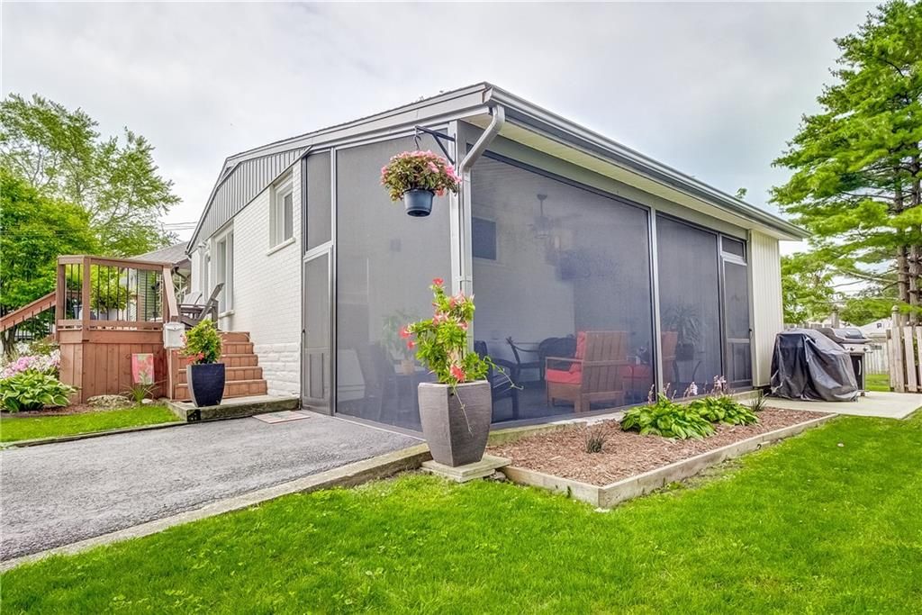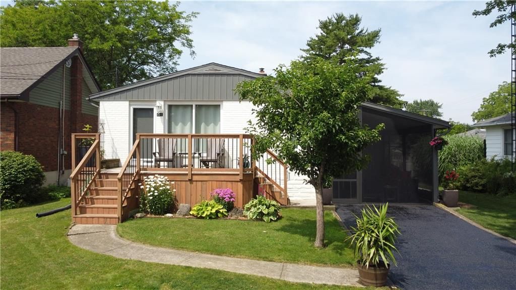 Updated three bedroom brick bungalow in Port Colborne's Sugarloaf District complete with two full bathrooms, and a full height lower level that will amaze you. The main floor provides three bedrooms with large windows, a 4pc bathroom(2019), kitchen with stainless steel appliances as well as a breakfast nook and an open and bright dinette/living room. Downstairs is an entertainer's delight, with a massive rec room/family room(2018), a 3pc bathroom(2019) and a large laundry room. Plenty of storage with multiple closets on both floors. Outside is sure to impress as well, with an approximately 250sqft Sunroom/Lanai(2021) that features a gas hook up for a heater and ceiling fan. There is also a large front porch(2018) as well as a huge rear deck overlooking the large, fully fenced yard. Everything has been thought of here! The basement is roughed in for a second kitchen on the west wall. Other updates include : exterior painting(2023), central air (2022), and roof shingles (2019).Pot Lights and ceiling fans installed in 2017, as well as the hot water heater was installed in 2023 but is a rental.