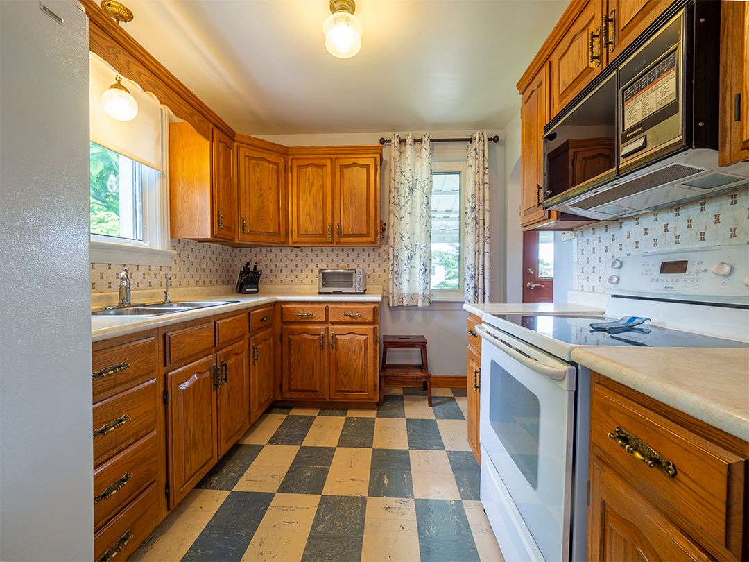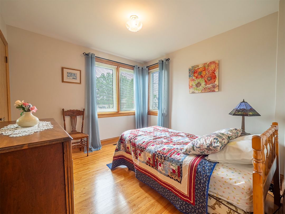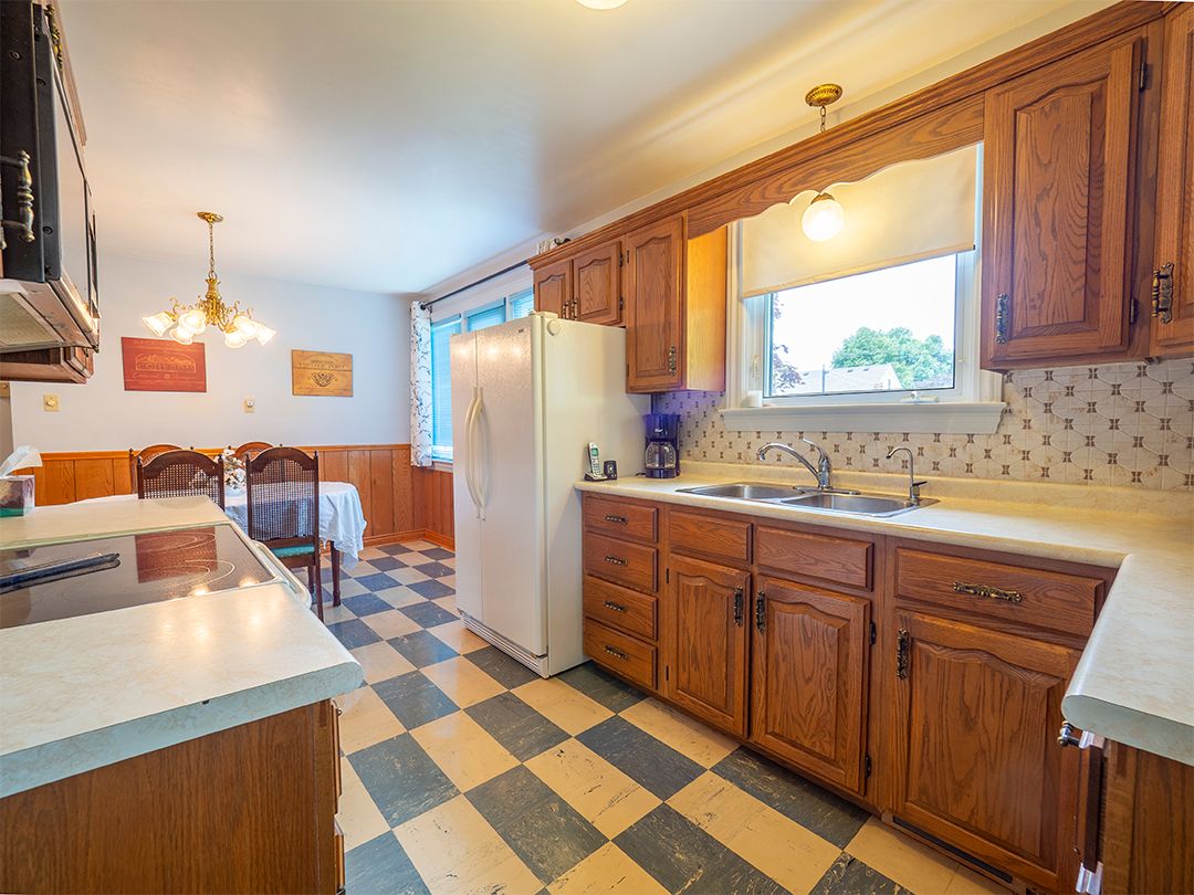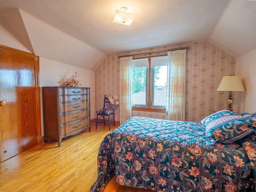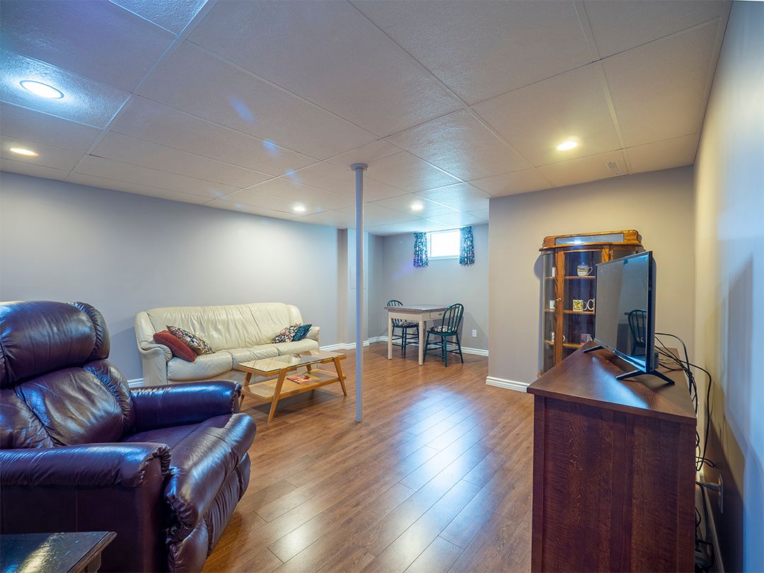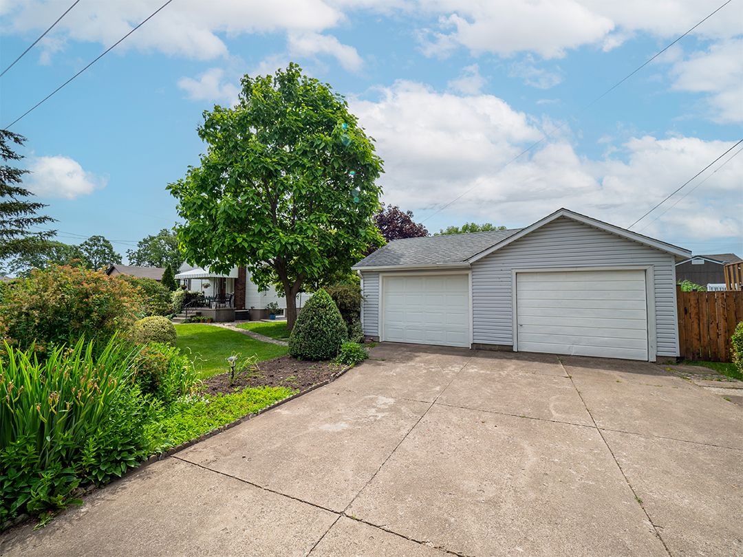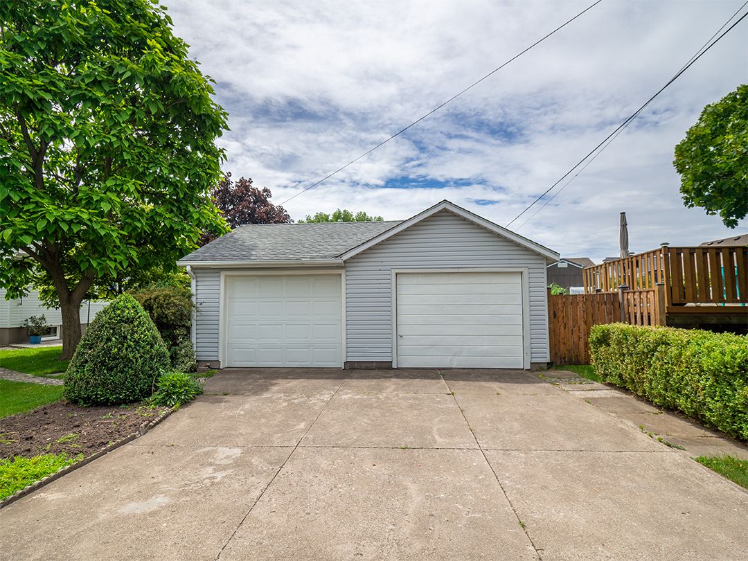 Nestled on a landscaped, 66' x 116' lot, this immaculate 1.5 storey home exudes pride of ownership. Spacious, one-owner 1,257 square foot home. 4 bdrms, (2 on the 1st flr, 2 upstairs), & 2 full baths. Gleaming hardwood floors. Arched doorways add character and charm. Welcoming eat-in kitchen with a walkout to a covered porch. Beautiful yard with flagstone walkways & patio. Fully finished basement w large recroom, a summer kitchen combined with an organized laundry room, workshop & lots of storage. A double garage has a concrete floor and driveway. This home has undergone numerous updates throughout the years, ensuring peace of mind for its new owners. This move-in ready home is ideally located in a family neighbourhood, close to amenities, the Vale Health & Wellness Centre, which offers soccer and baseball fields, a walking track, a health club, and an arena. Lakeshore Catholic High School is also right around the corner. Immediate possession available.Seller states updates as follows: garage roof shingles 2014 ; house roof shingles 2015. Upstairs bath reno-ed 2016, mainflr bedrm flrs redone 2016, replacement windows, eavestroughs 2012, exterior doors 2013, vinyl siding 2013, fence 2020.