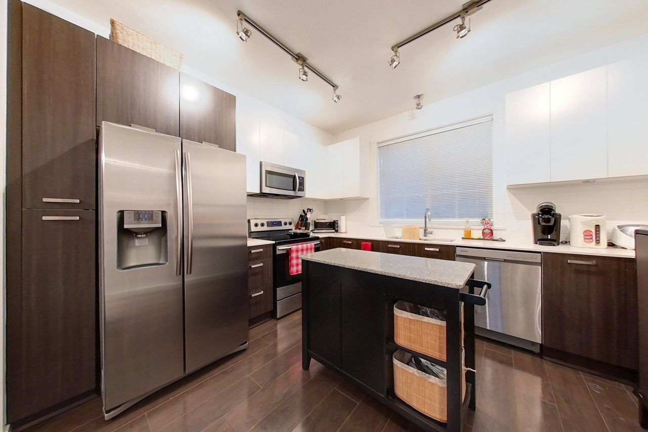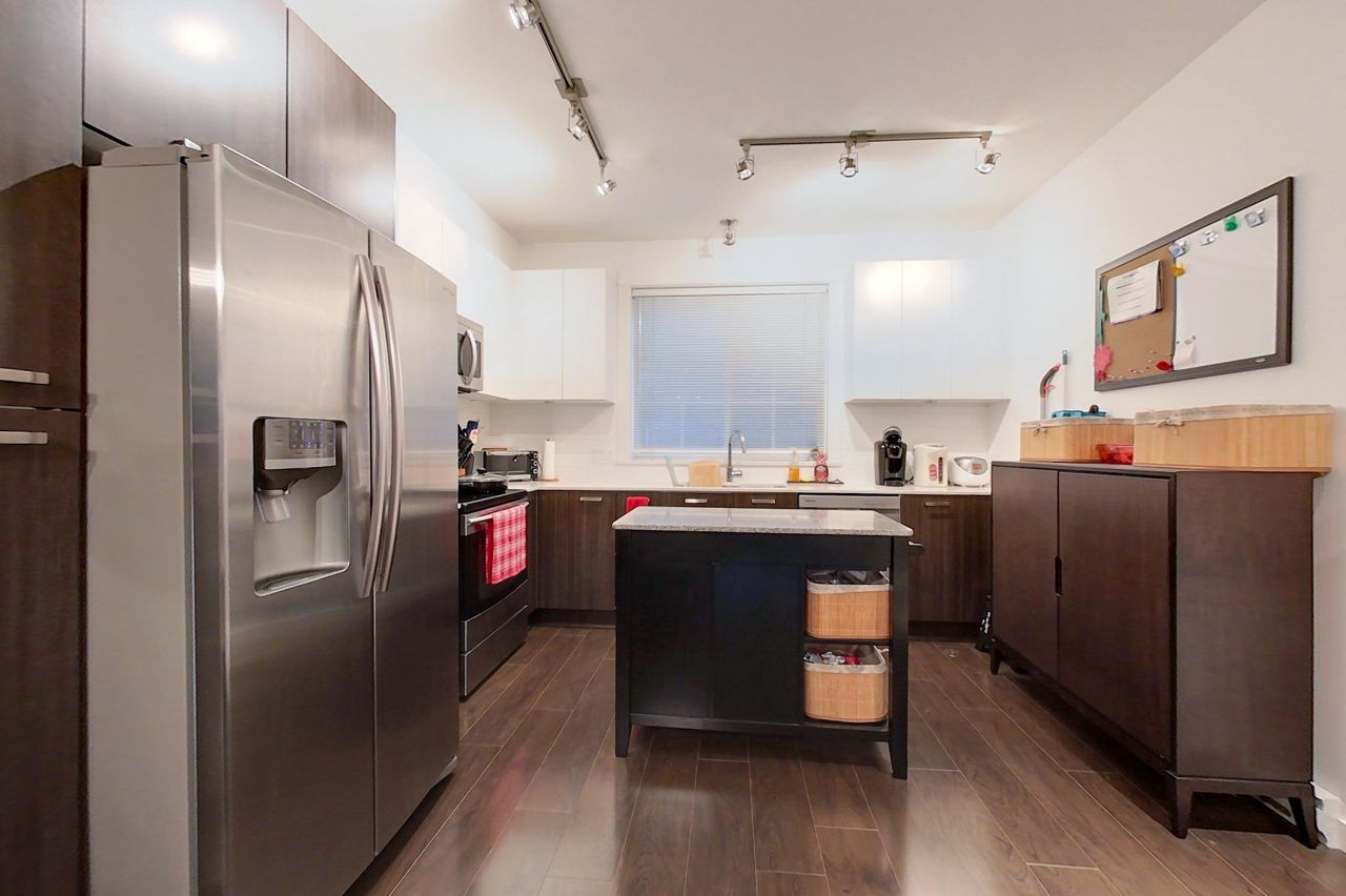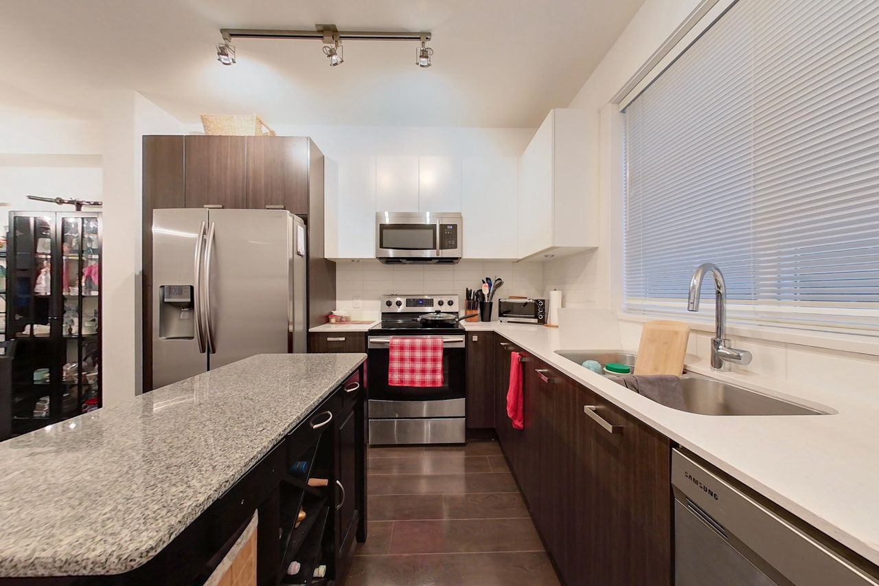 DOMINION by MOSAIC. Two Bedrooms PLUS Den. Georgian inspired Rowhomes with modern interiors. Steps from Fremont Village, the riverside Traboulay Trail, transit & highway access. This F Plan has 9' ceilings on the main & an open-concept living space that opens to a full width balcony. its L-shaped kitchen has plenty of cabinet & counter space, a pantry & window over the sink. Find two roomy bedrooms upstairs with great closet and linen space, semi-ensuite with double sinks and a deep soaker tub. Use the den as office, guest, play or flex space. Let visitors use the ground-level bathroom with shower.Great unit won't last.