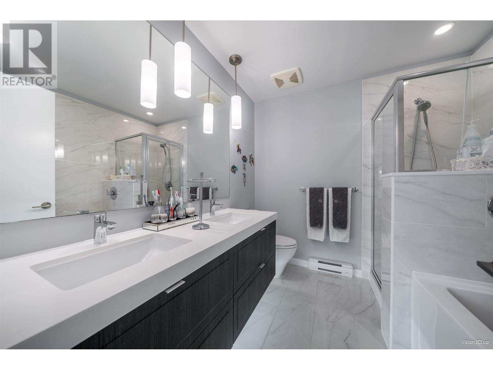 Immaculate Show Home! Unique 4 Bdrm / 3.5 bth END unit with 9 ft. ceiling, open concept main level, Custom paint thru-out, Large open kitchen with SS appliances and ceiling height kitchen cabinets, spacious Dining Room plus eating area, all on the main level. Upstairs features 3 BDRMS/ 2 Full baths, Spacious Primary bedroom with Luxury 5pcs enuite, side by side washer & dryer with linen shelves. 4th bedroom/ office /guest room is below with a full bath ensuite. 4 parking in total, 2 Car Garage & 2 on driveway. Amazing clubhouse has a basketball court, indoor children's playroom, gym, meeting room, party room, outdoor pool & a community garden. Easy access to the Bus to Coquitlam Centre, POCO Trail, Walmart, Costco. Easy to show. (id:22211)