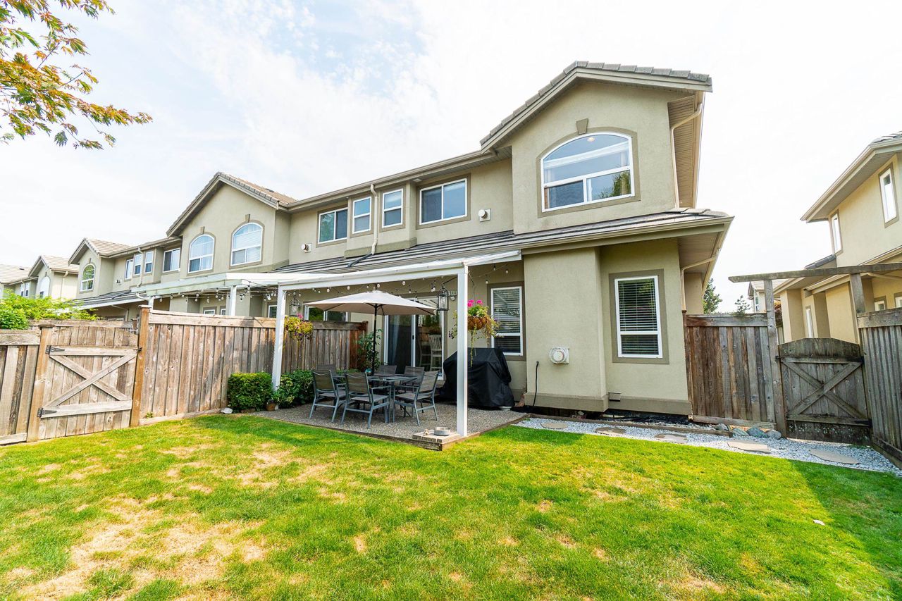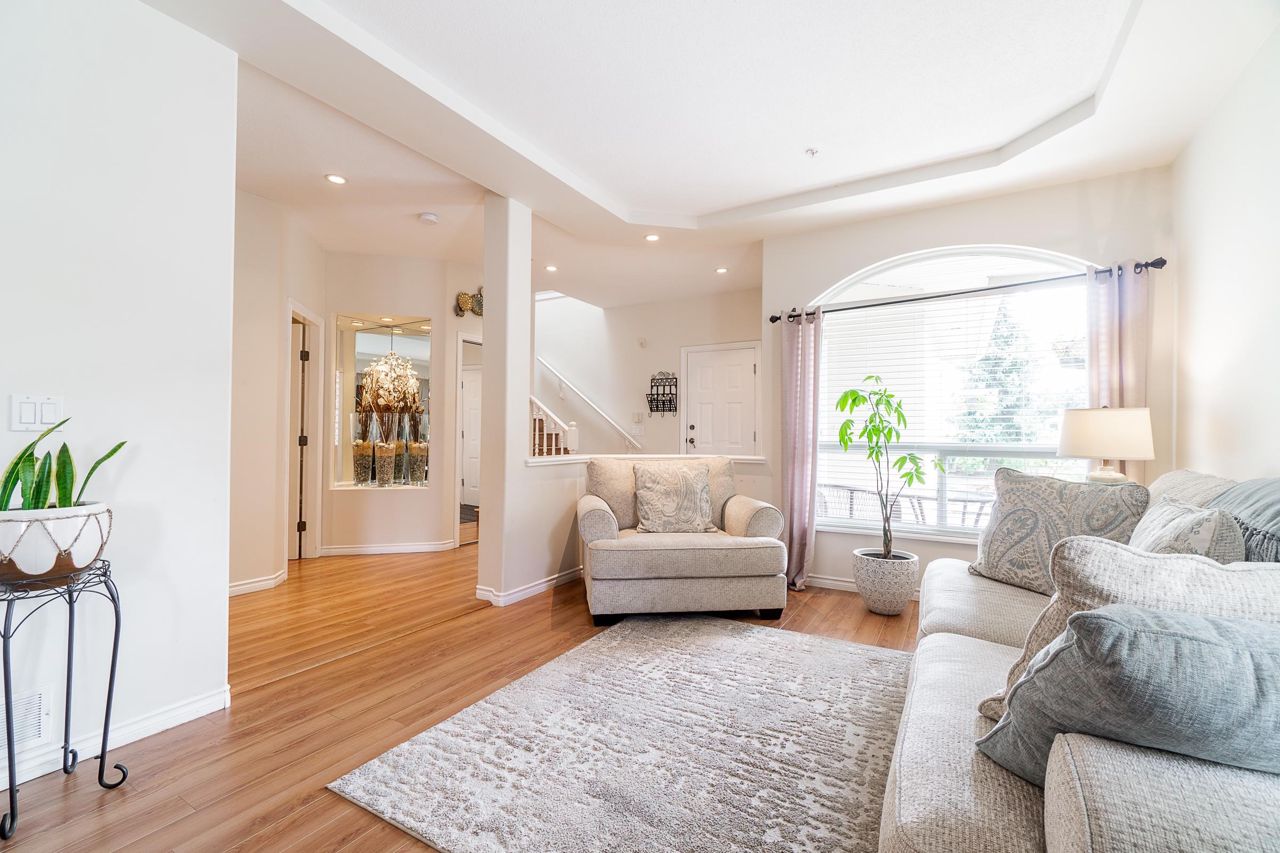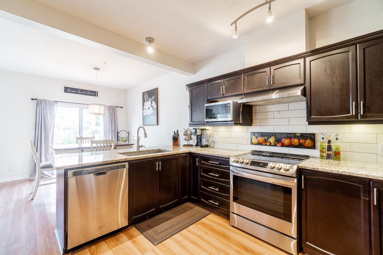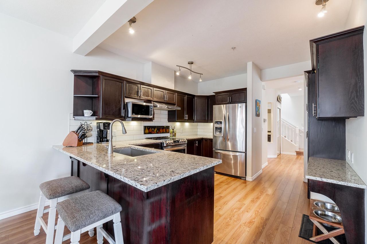 RARELY AVAILABLE PARKSIDE PLACE END UNIT. Your new home awaits with this elegant executive duplex-style 2-level townhome with a 2-car garage. This stunning 3-bed, 3-bath, 2081 SF townhome boasts 9' ceilings on the main floor, a fantastic layout, and features beautiful upgrades including quartz countertops and laminate flooring. Enjoy one of the largest fenced backyards in a tranquil setting. The spacious kitchen with an eating area and adjoining family room leads to your private outdoor oasis. The primary bedroom is a true retreat with a gas fireplace, room for a seating area, plus a spa-like bathroom. Additional highlights include a 928sqft 6' crawl space for storage. Perfectly situated near shopping (Costco), schools, parks, and Blakeburn Lagoons. Experience pride of ownership firsthand!