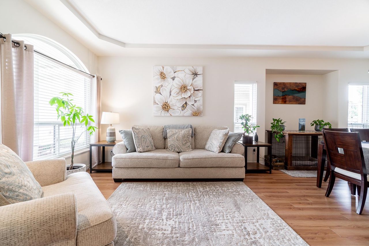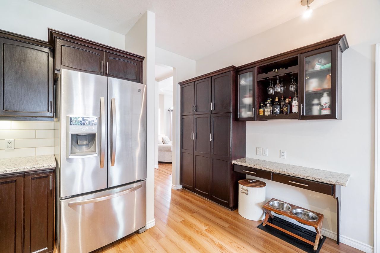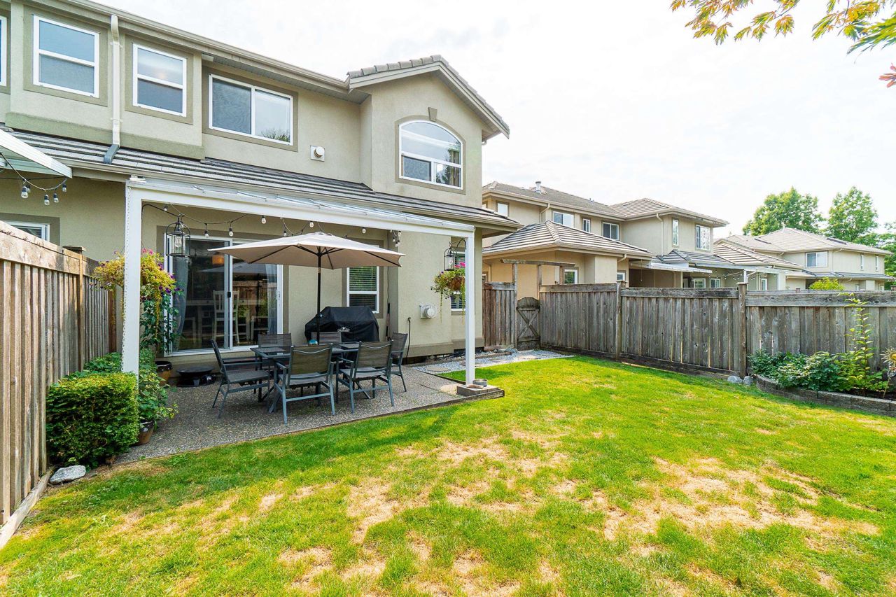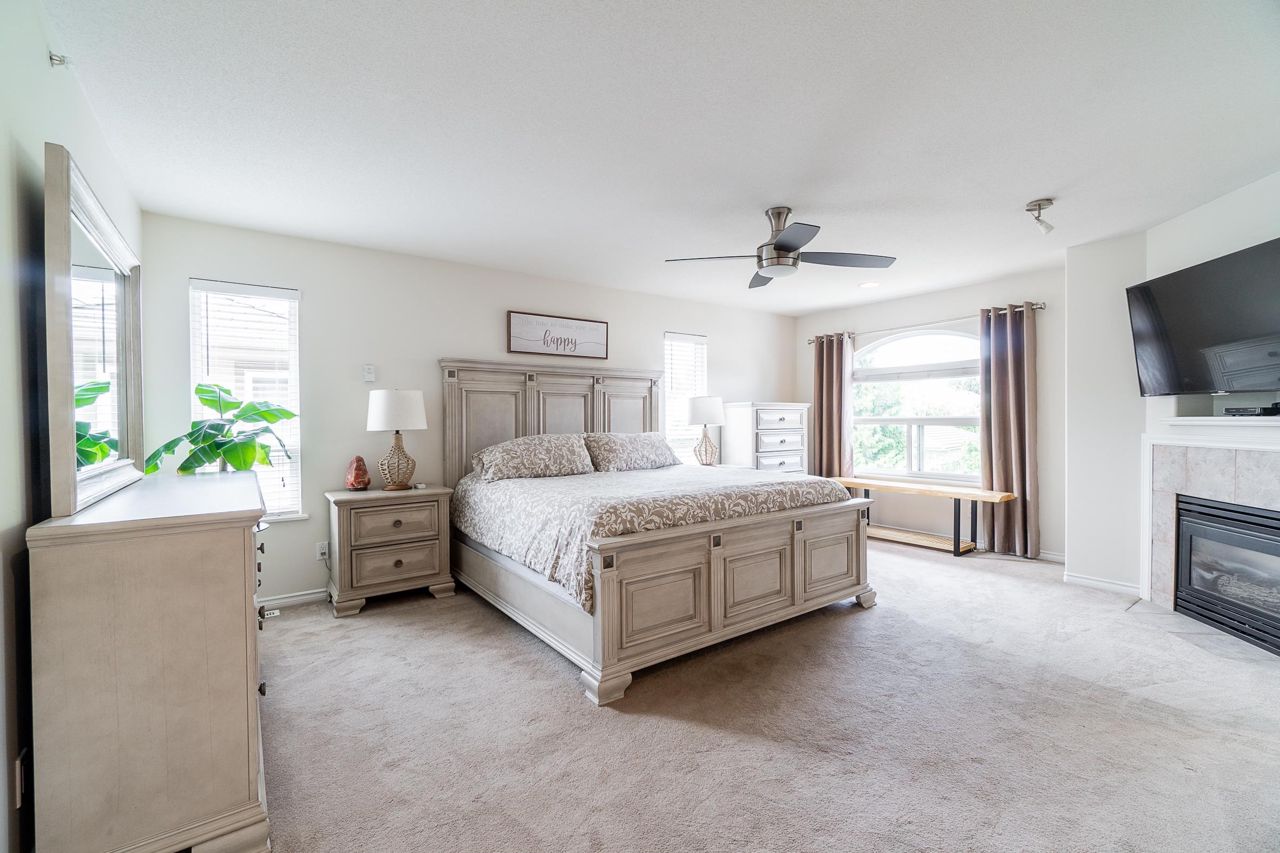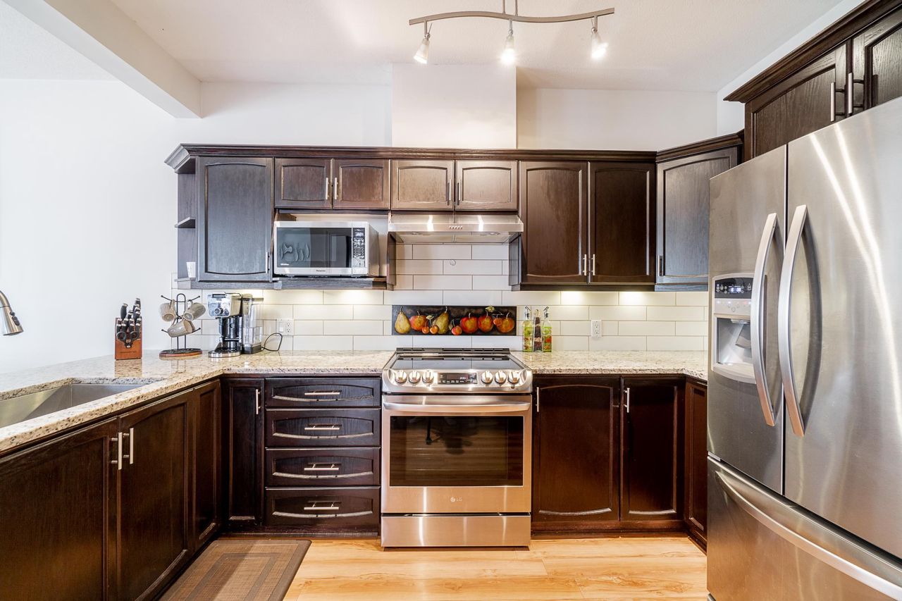 RARELY AVAILABLE PARKSIDE PLACE END UNIT. Your new home awaits with this elegant executive duplex-style 2-level townhome with a 2-car garage. This stunning 3-bed, 3-bath, 2081 SF townhome boasts 9' ceilings on the main floor, a fantastic layout, and features beautiful upgrades including quartz countertops and laminate flooring. Enjoy one of the largest fenced backyards in a tranquil setting. The spacious kitchen with an eating area and adjoining family room leads to your private outdoor oasis. The primary bedroom is a true retreat with a gas fireplace, room for a seating area, plus a spa-like bathroom. Additional highlights include a 928sqft 6' crawl space for storage. Perfectly situated near shopping (Costco), schools, parks, and Blakeburn Lagoons. Experience pride of ownership firsthand!