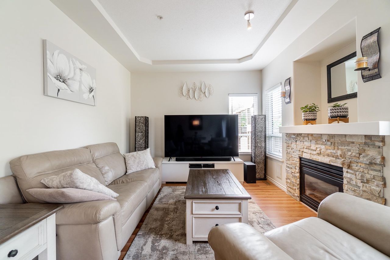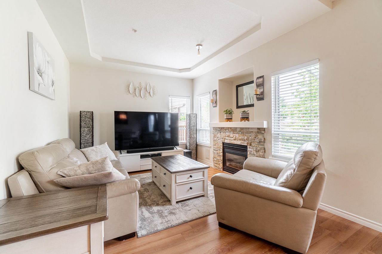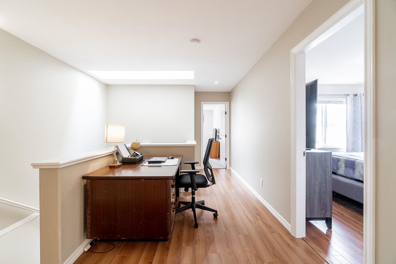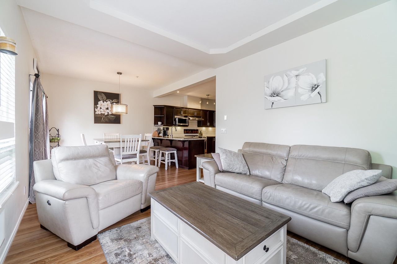 RARELY AVAILABLE PARKSIDE PLACE END UNIT. Your new home awaits with this elegant executive duplex-style 2-level townhome with a 2-car garage. This stunning 3-bed, 3-bath, 2081 SF townhome boasts 9' ceilings on the main floor, a fantastic layout, and features beautiful upgrades including quartz countertops and laminate flooring. Enjoy one of the largest fenced backyards in a tranquil setting. The spacious kitchen with an eating area and adjoining family room leads to your private outdoor oasis. The primary bedroom is a true retreat with a gas fireplace, room for a seating area, plus a spa-like bathroom. Additional highlights include a 928sqft 6' crawl space for storage. Perfectly situated near shopping (Costco), schools, parks, and Blakeburn Lagoons. Experience pride of ownership firsthand!
