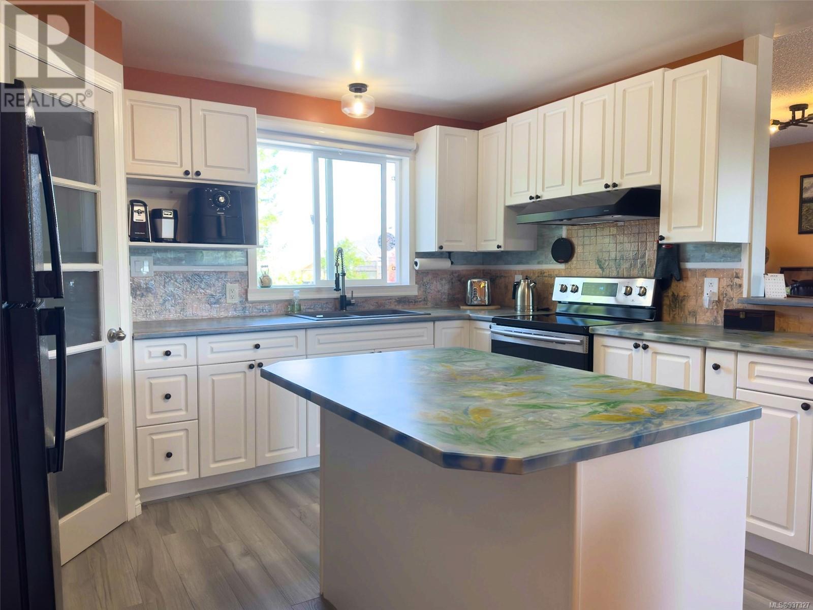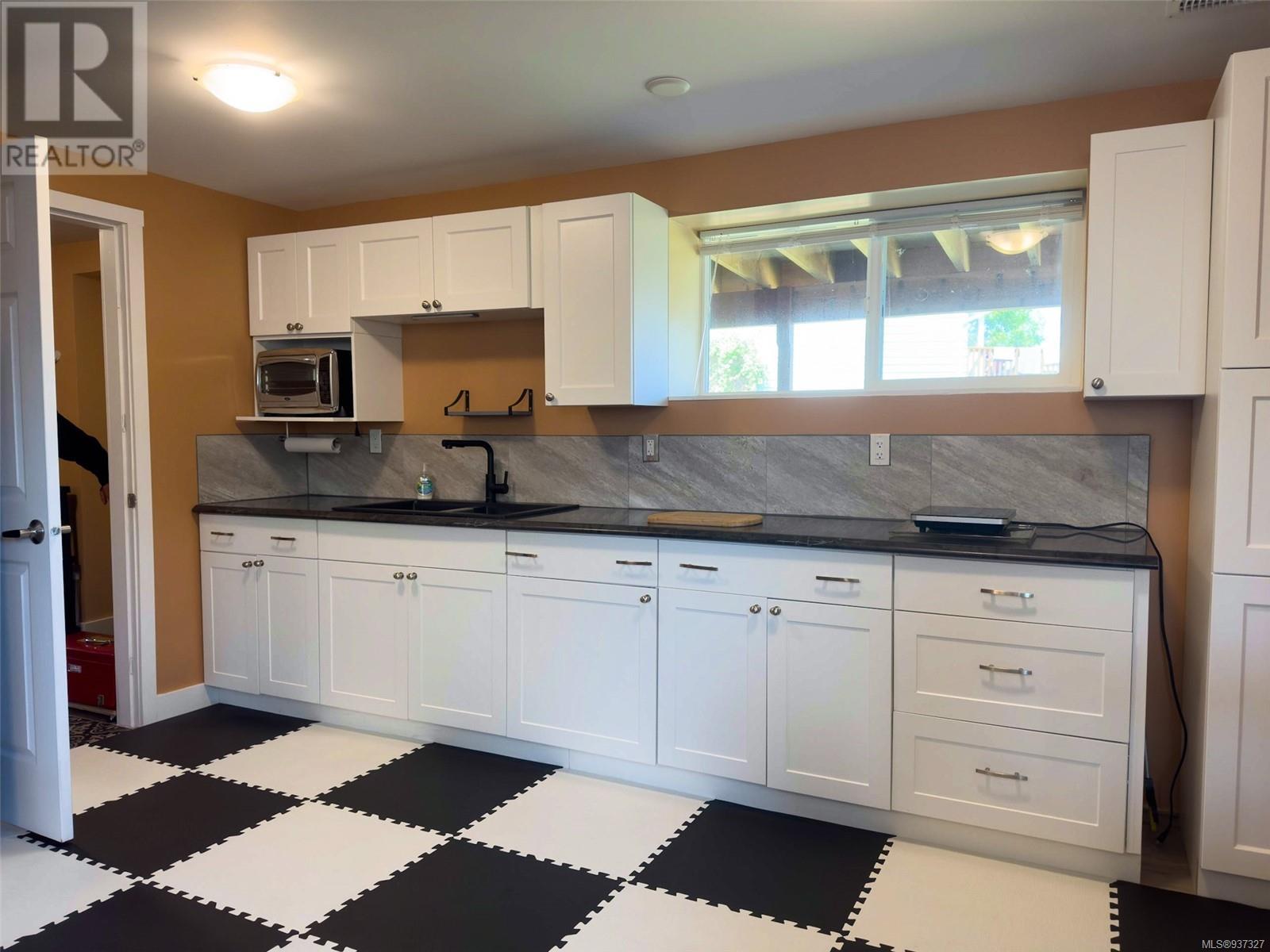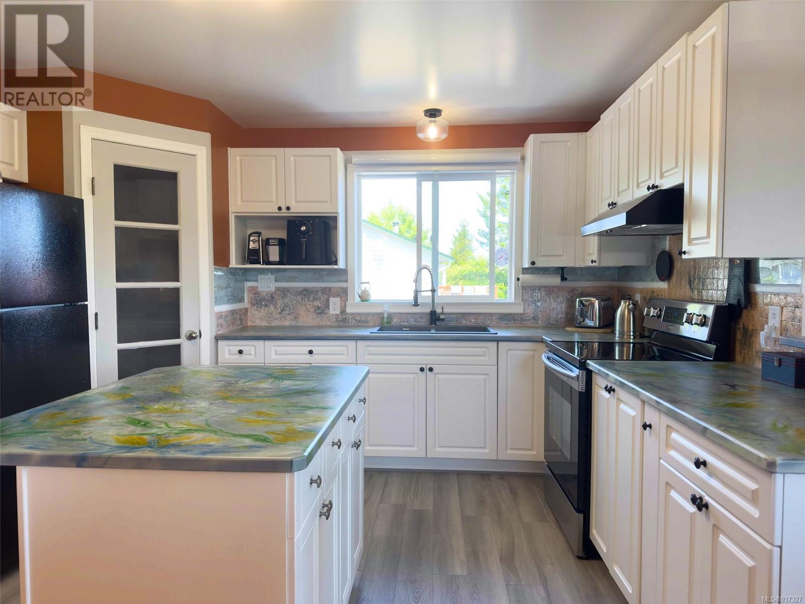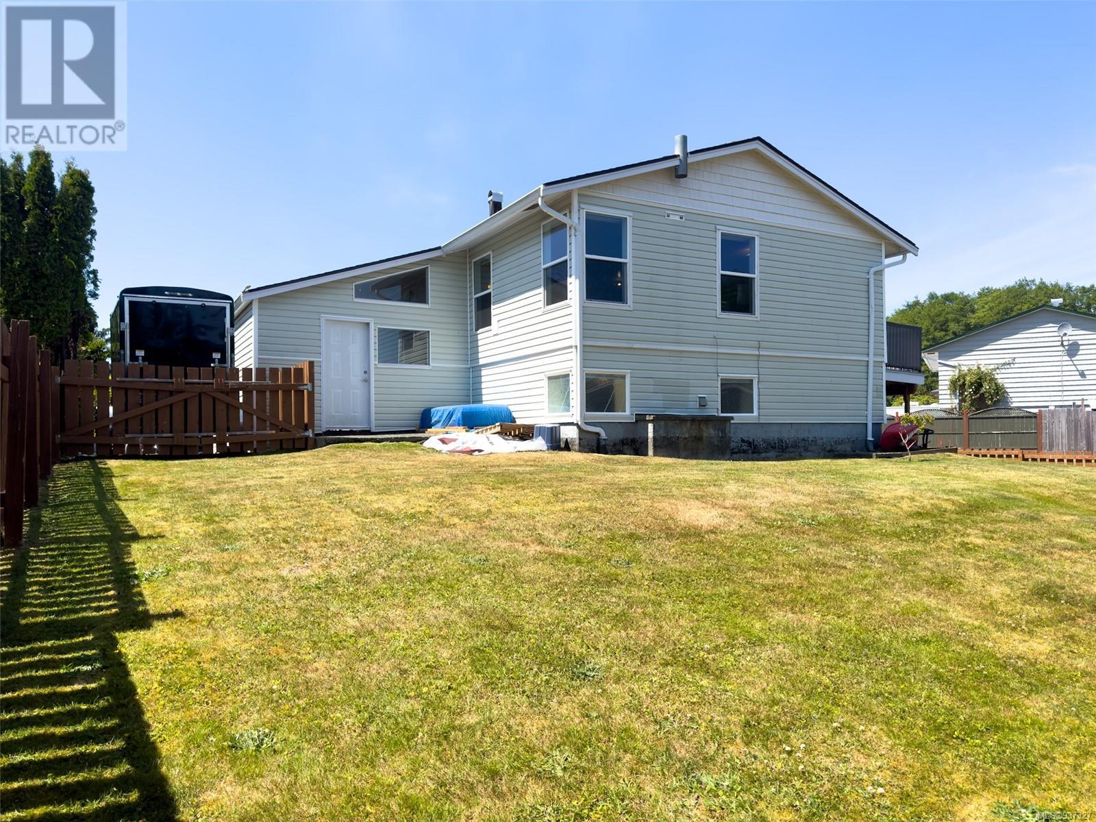 Move in ready 4 bedroom 2 bath home in the heart of Port Hardy, just a quick walk to the ocean. This home has seen recent updates including new paint throughout, new toilets, mirrors & faucets, some light fixtures & new flooring in the bedrooms & kitchen upstairs, entrance way & both bathrooms. The main level features a bright kitchen with white cabinetry & epoxy countertop & backsplash & new window overlooking the yard. The living room & dining area boasts hardwood floors & access to your expansive deck. Down the hall you'll find 3 bedrooms, including the primary & updated full bathroom. The lower level features an in-law suite with spacious kitchenette & bright living room. Across the hall is the laundry space with extra storage & sink, updated 3 piece bathroom & a large bedroom with ample closet space. Potential for a separate entrance exists with some work to the deck above. Outside offers a fully fenced yard, carport for storage & additional parking for your trailer or boat (size dependent). Call your agent to view this fantastic Port Hardy property. (id:22211)