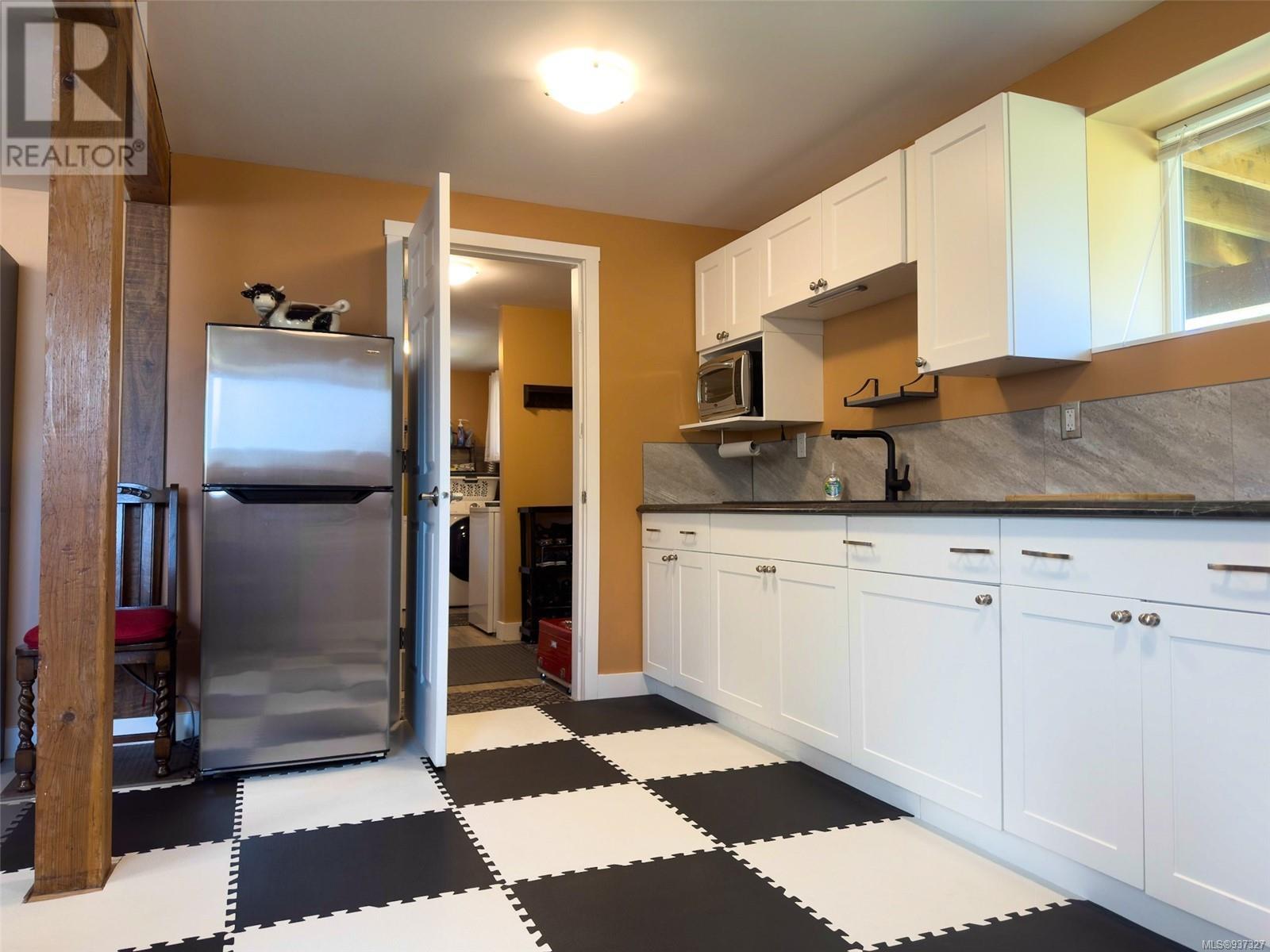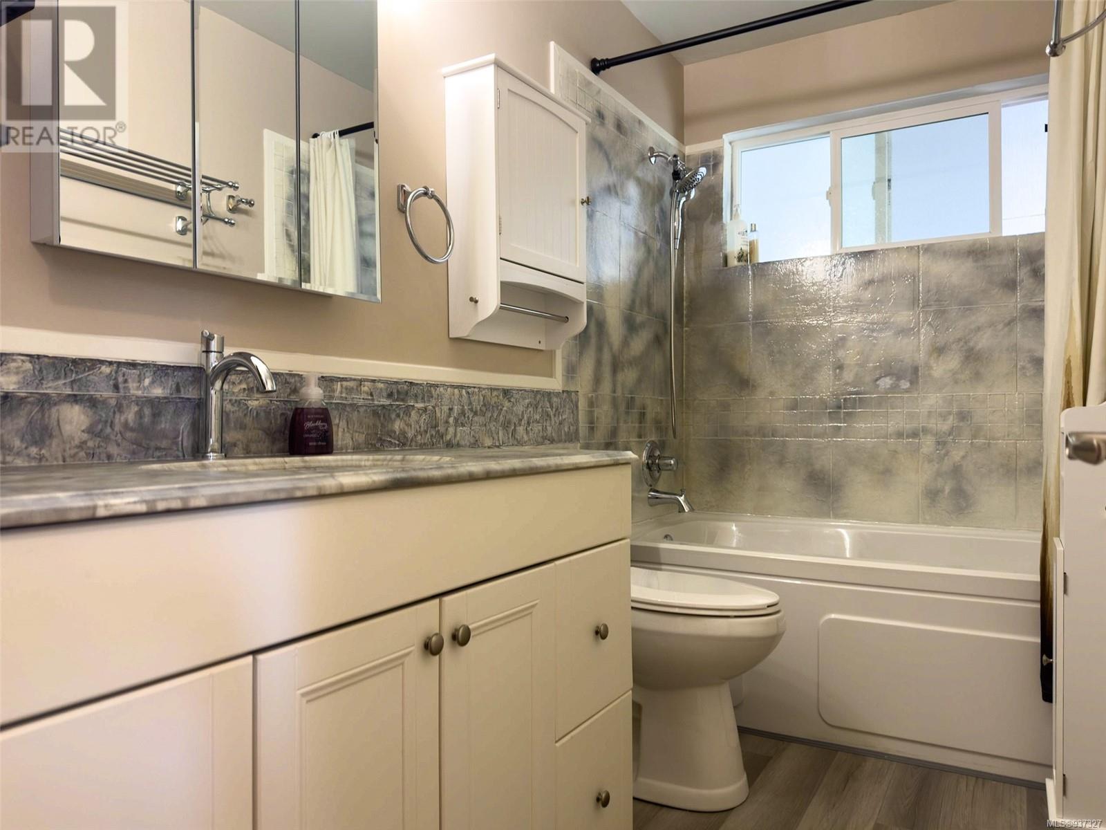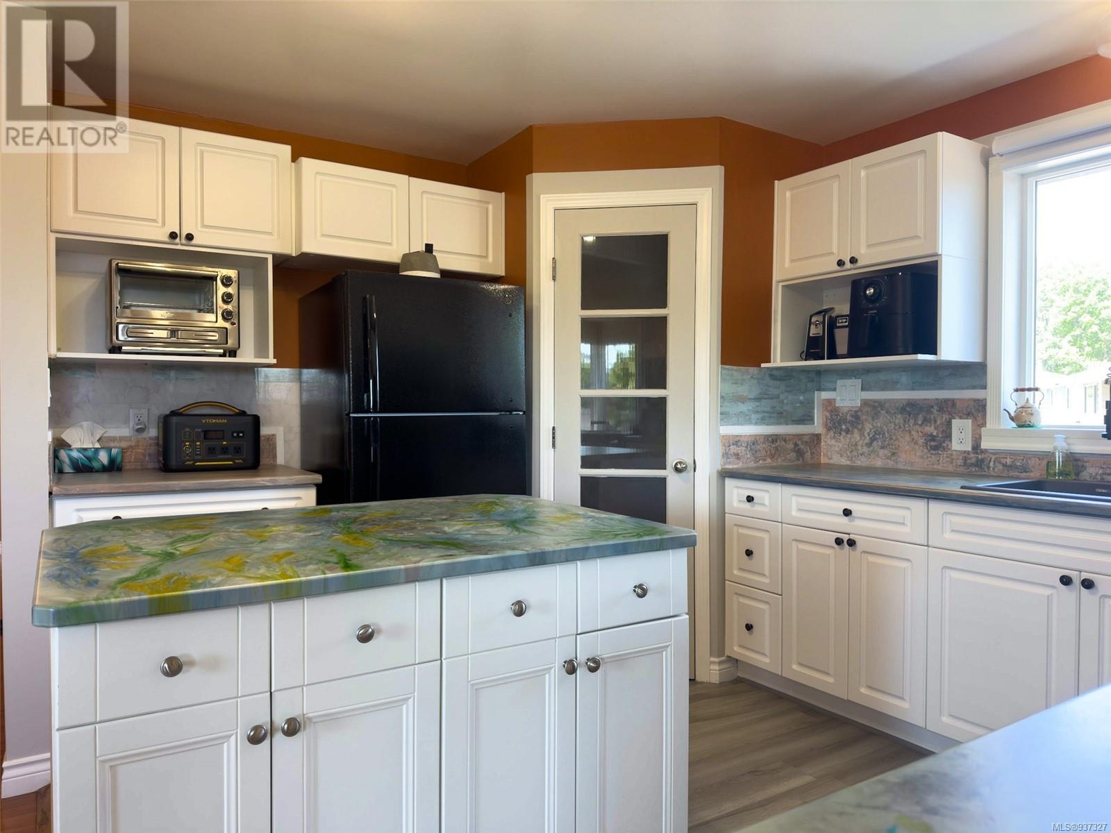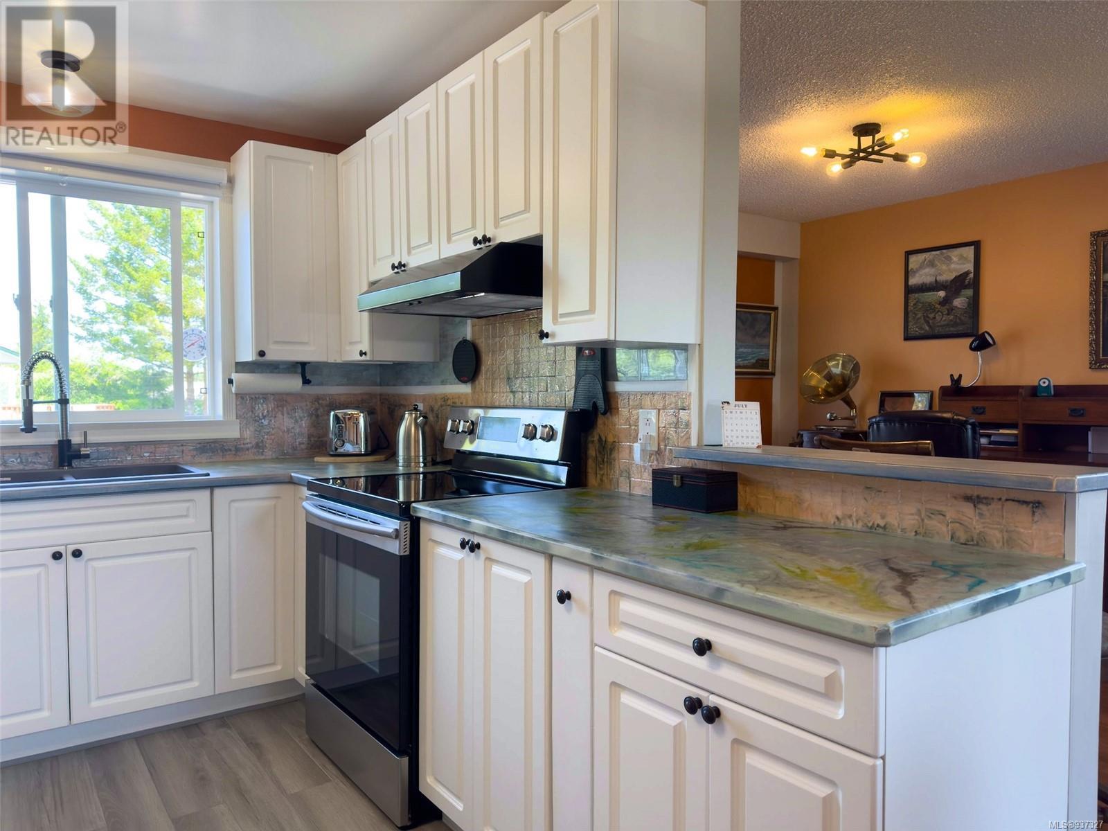 Move in ready 4 bedroom 2 bath home in the heart of Port Hardy, just a quick walk to the ocean. This home has seen recent updates including new paint throughout, new toilets, mirrors & faucets, some light fixtures & new flooring in the bedrooms & kitchen upstairs, entrance way & both bathrooms. The main level features a bright kitchen with white cabinetry & epoxy countertop & backsplash & new window overlooking the yard. The living room & dining area boasts hardwood floors & access to your expansive deck. Down the hall you'll find 3 bedrooms, including the primary & updated full bathroom. The lower level features an in-law suite with spacious kitchenette & bright living room. Across the hall is the laundry space with extra storage & sink, updated 3 piece bathroom & a large bedroom with ample closet space. Potential for a separate entrance exists with some work to the deck above. Outside offers a fully fenced yard, carport for storage & additional parking for your trailer or boat (size dependent). Call your agent to view this fantastic Port Hardy property. (id:22211)