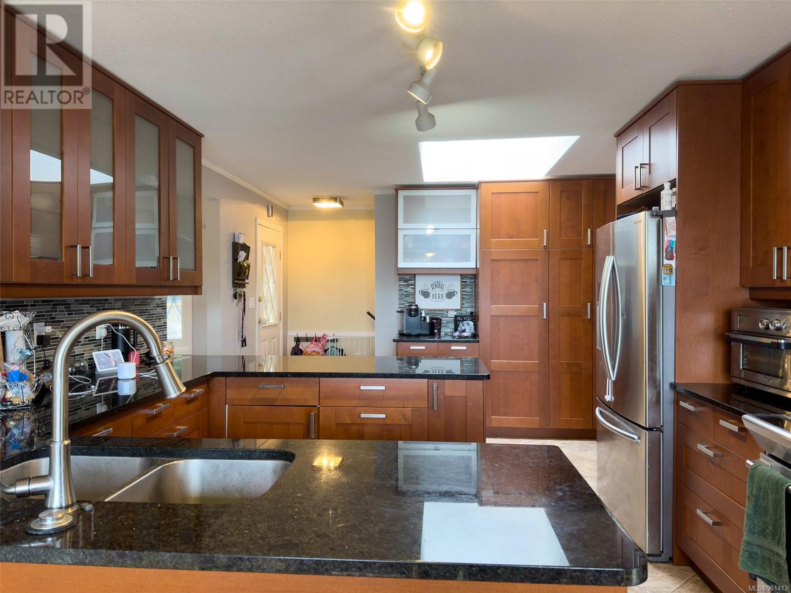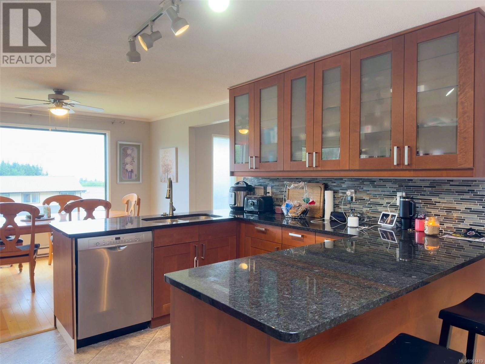Spacious family home on a desirable street in Port Hardy! This home offers 4 bedrooms, 3 bathrooms & loads of space throughout. The main level features a stunning kitchen with ample storage space with cabinets to the ceiling & gorgeous granite counters. The kitchen is open to the dining area with large windows, giving tons of light. Off the kitchen is a family room & access to a private front deck with distant ocean & mountain views. On the other side of the kitchen you'll find the living room with built ins & pellet stove. Down the hall is the full bathroom & 3 good sized bedrooms, including the primary complete with 2 piece ensuite. Downstairs has suite potential with separate entrance through the carport, a huge living space, spacious bedroom with large closet & full ensuite bathroom. Laundry is conveniently located at the bottom of the stairs & access to a massive storage area under the main level. Outside you will enjoy a newer deck, private yard and loads of parking! Call today! (id:22211)