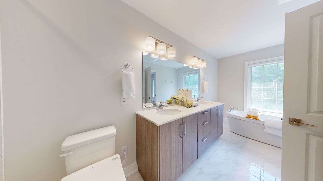 Open Concept modern Floor Plan W/9 Ft Ceilings on Main floor. A Bright, White Kitchen with Quartz Countertops w/ Walk-Out To courtyard. Cozy up in the living room W/ Gas Fireplace. Upstairs Features 3 Large Bedrooms, Including the Primary Bedroom W/ A Magazine-Worthy 5-Piece Ensuite W/ A Large, Frameless Shower w/ bench and freestanding Soaker Tub, Bidet insert & Double Vanity.