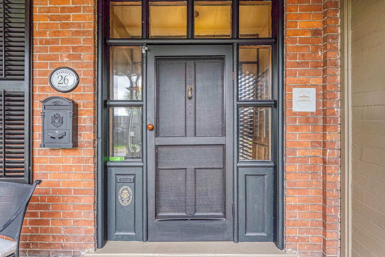 Welcome to Barrett's Terrace ca. 1860. This beautifully restored & updated heritage home boasts original features including roof-top lantern to light the original staircase, original lyre decorated front porch and Crenilated brickwork at front top Paraphet. This 3 bedroom, 2.5 bath property offers a large square sitting room with period mantle and newer gas fireplace, separate dining room, new eat-in kitchen with stone counters and stainless steel appliances and main floor powder room. The upper level boasts a spacious primary suite with 4 piece bath, two additional bedrooms and 3 piece bath while the lower level offers a new media room, office, laundry room and workshop. The lavish gardens on the front and back of the home highlight the new rear deck which leads to the garage and parking pergola located off the rear lane. Walkable to the majority of amenities, Historic Downtown Port Hope and the river this property is one not to be missed!