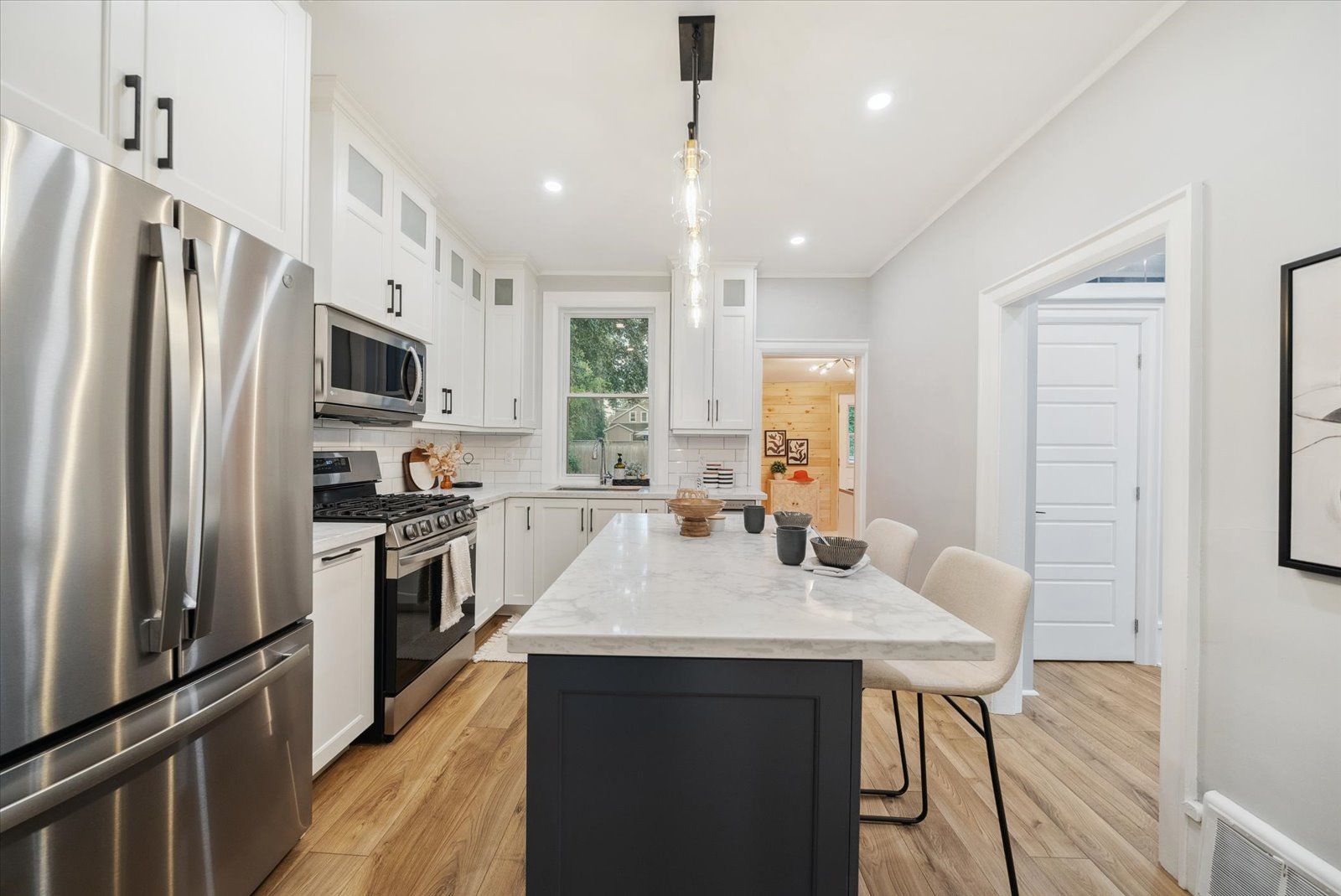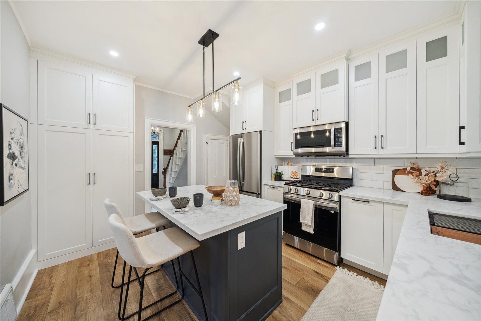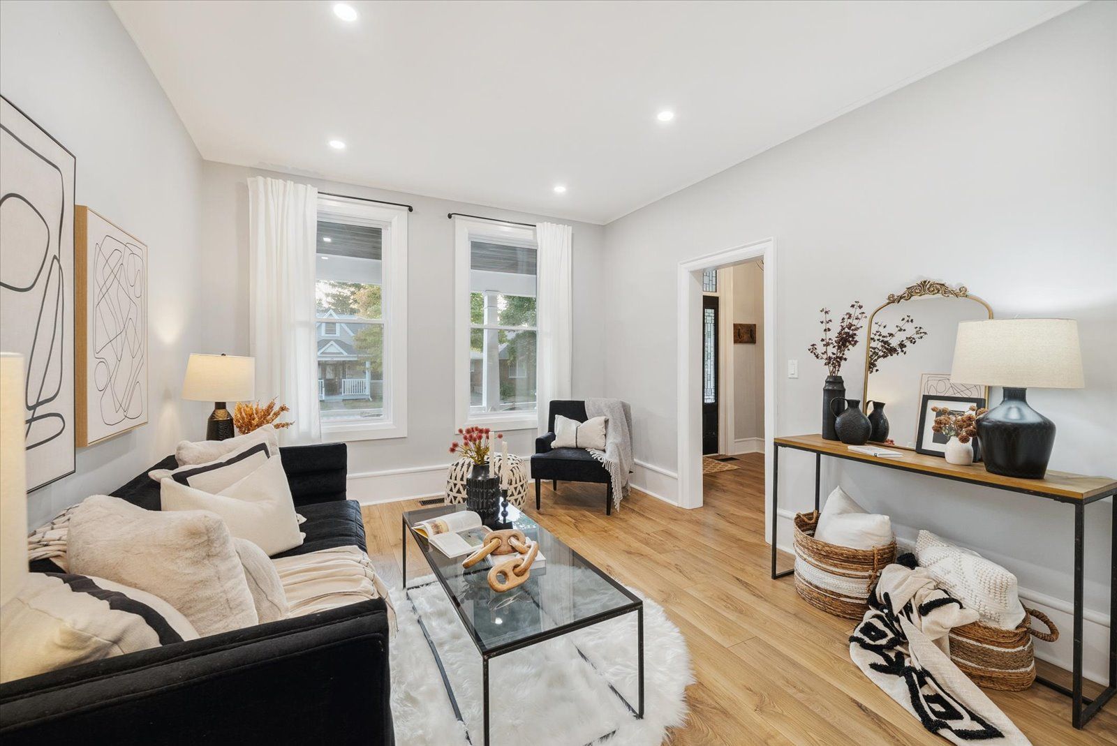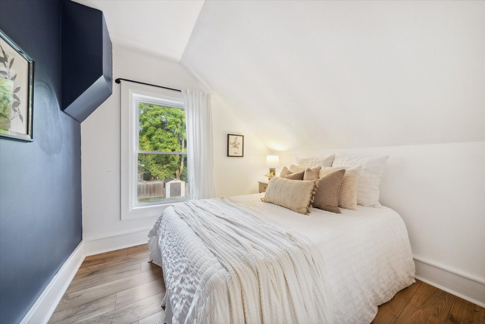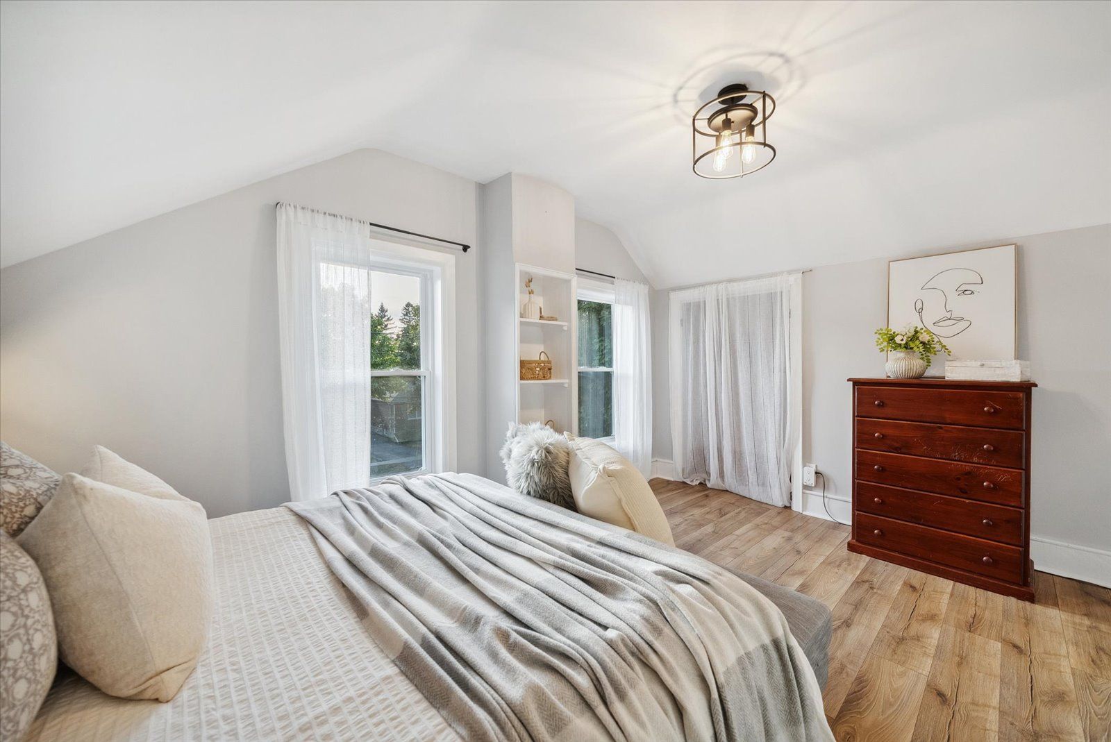 Pristine Condition, Turnkey Home With Large Lot Located On A Quiet Street! A must see exquisite home with loads of historical charm & character! Recent renovations are sure to impress boasting high ceilings, custom kitchen, breakfast bar, quartz countertops, pot lights on main floor, luxury vinyl flooring, new windows, new vinyl siding, main floor mudroom/laundry room, newly paved driveway, furnace & ac, the list goes on! Escape to the backyard and enjoy the extra large lot which is surrounded by mature trees offering a beautiful escape and creative opportunity!