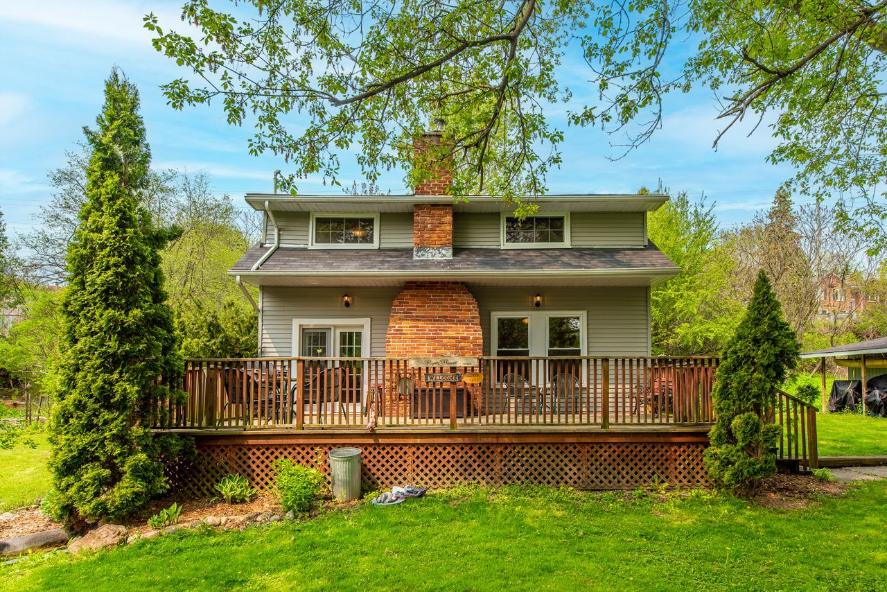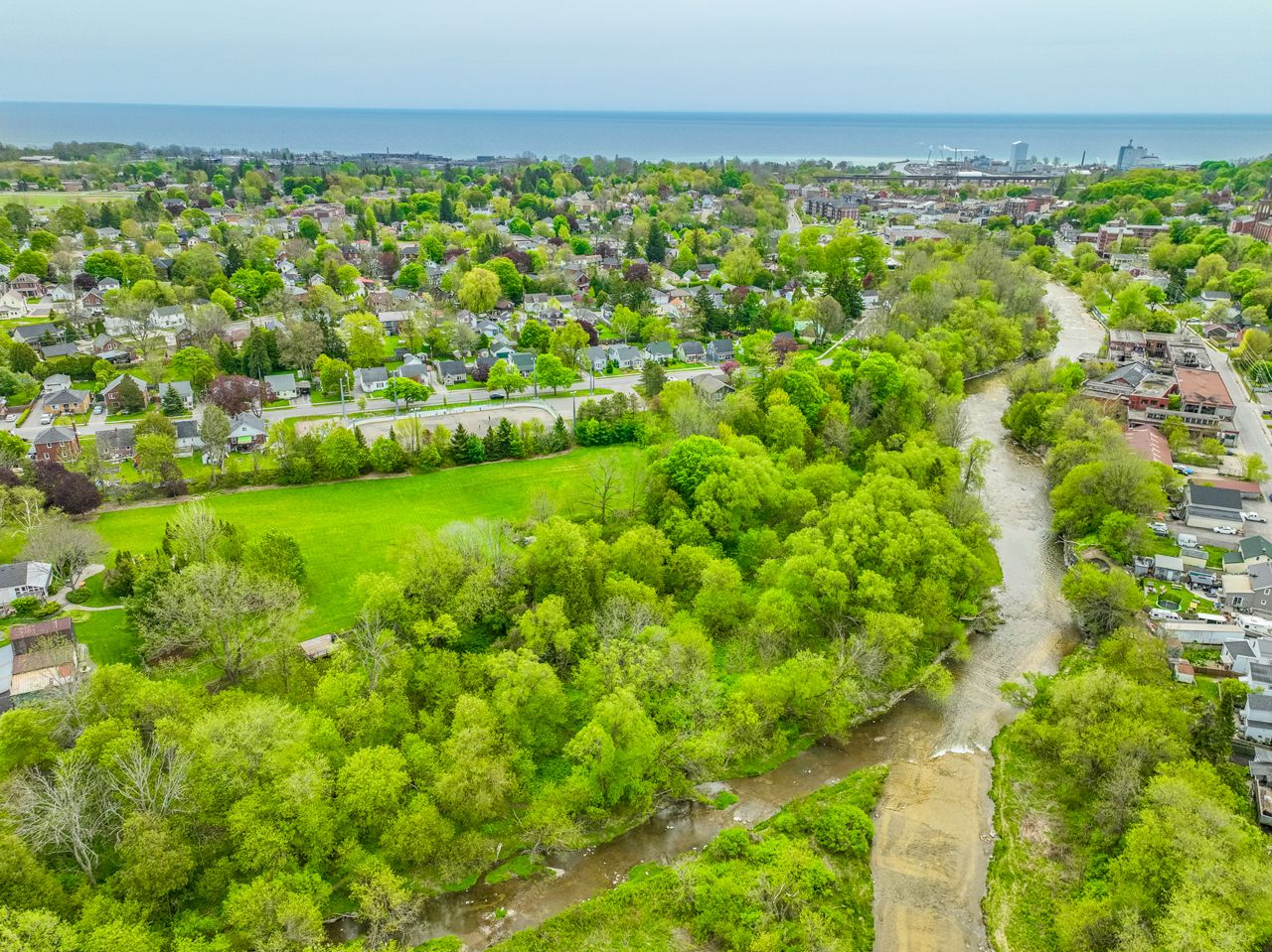 This 3-bedroom 2 bath home boasts one of the best locations in Port Hope! Situated in a park, steps from the Ganaraska river, surrounded by mature trees & gardens, on a no exit road, feel as if you are living in the country while conveniently situated in the middle of town. Built in 1850, this home has an upgraded electrical panel along with a new kitchen, vinyl windows, hardwood floors in the living areas & retro black & white tiles in the kitchens & bathrooms. Currently set up as 2 separate units this home is perfect for investors, multi-generational families or owners looking for extra income but can covert back to a single family home by unlocking 1 door. The main floor has a bright, airy, open concept studio vibe with an abundance of large windows. The large front deck overlooking the yard & park offers peace, tranquility & no neighbouring houses. The 2nd unit, with a ground level entry & main floor kitchen features 3 generous sized 2nd floor rooms that can be used in many ways.Conveniently located minutes from 401 & Port Hope’s historic downtown. Easy 1-hr commute to Toronto (also accessible by via rail). Basement has a poured concrete floor creating an abundance of storage space along with space for a work area.