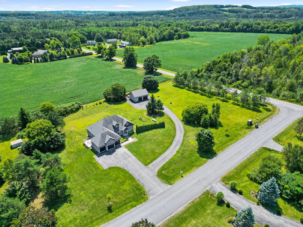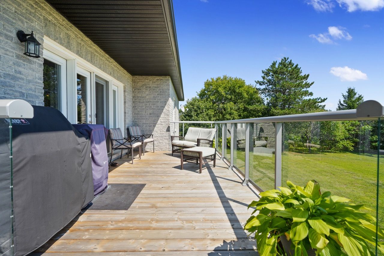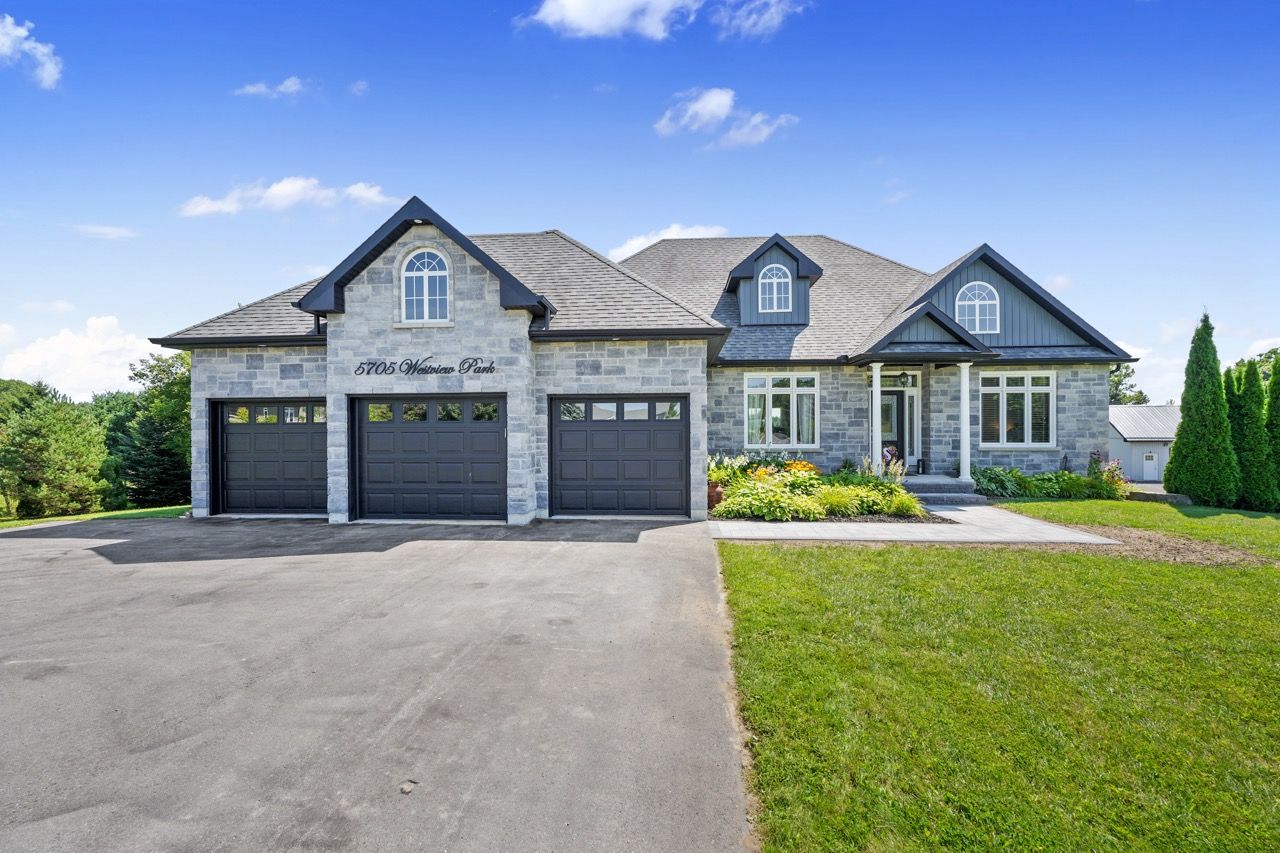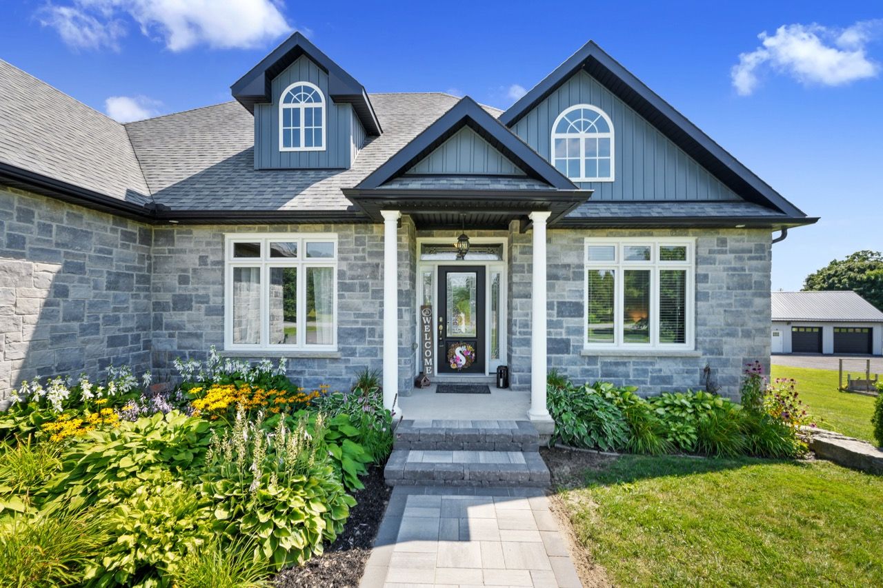 Nestled on a private 2-acre estate on the outskirts of Port Hope in a family-friendly area, this exquisite executive-style bungalow defines luxury living. An open floor plan features wood flooring, cathedral ceiling, & recessed lighting, centred around a stone-clad corner fireplace. French doors open onto a back deck, extending the living space & offering breathtaking views. The kitchen features dual peninsulas, one w/ a convenient breakfast bar, cherry cabinetry, contemporary countertops, built-in S/S appliances, and a wine fridge. An informal breakfast area adjoins, connecting to the M/F laundry. The primary bedroom is a serene sanctuary w/ walk-in closet & ensuite. 2 additional bedrooms share a full bath, perfect for family or guests. L/L is an entertainer's dream space w/ sprawling Rec & games room, complete w/ wet bar featuring a live edge wood bar top. A sunny guest bedroom adorned w/ an electric fireplace & mantle offers a cozy retreat.Outside deck w/ glass surround, meticulously landscaped & mature trees. With an attached 3-bay garage & detached two-bay workshop. Savour peaceful country living while being mere minutes from in-town amenities & easy access to the 401.