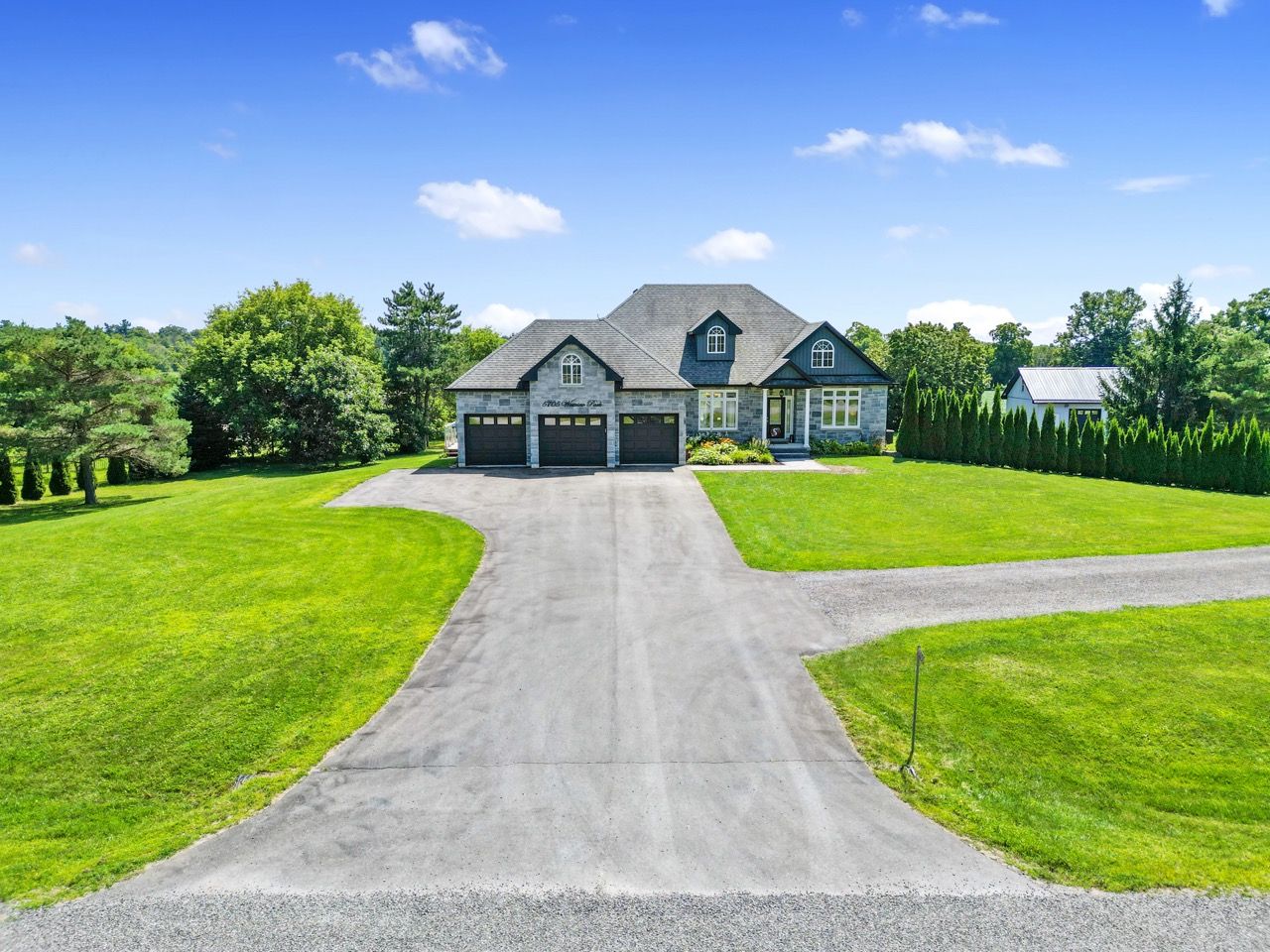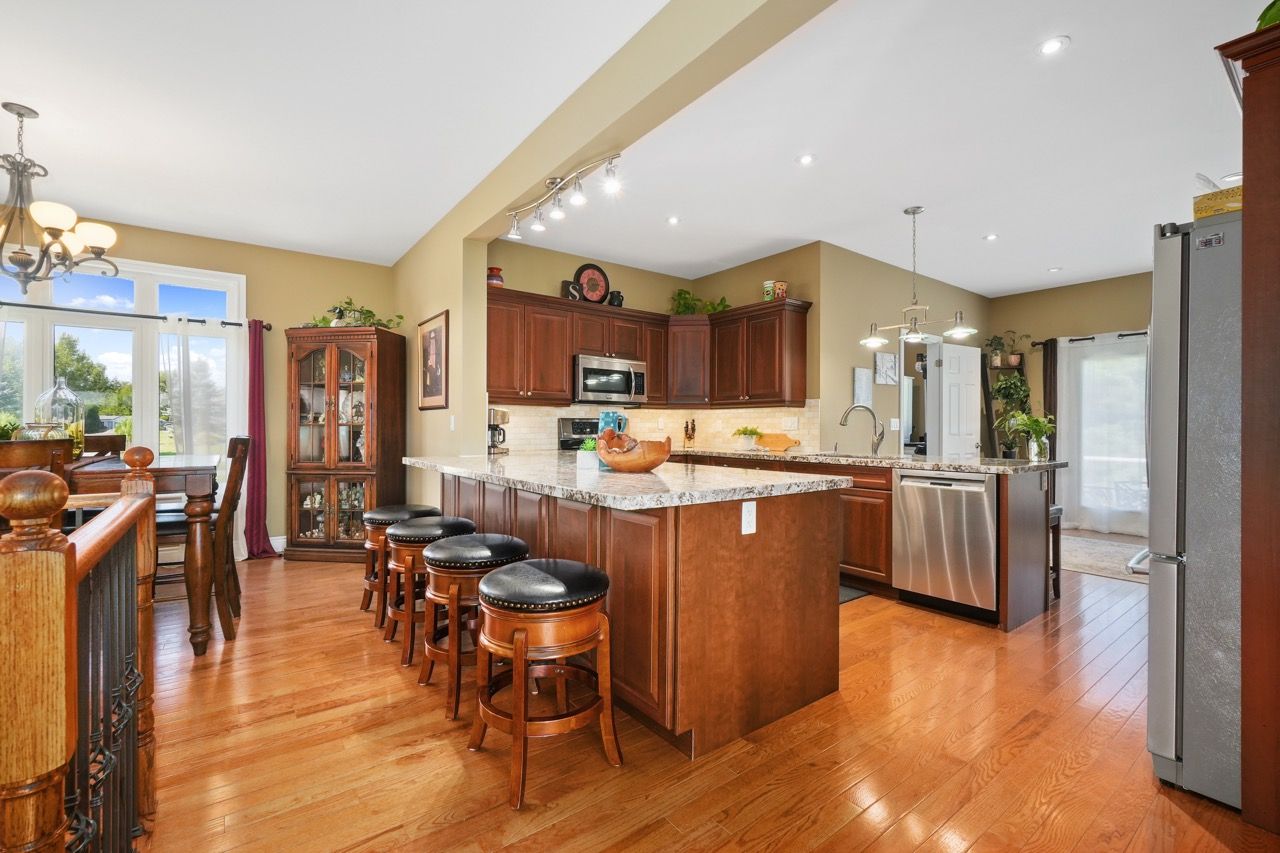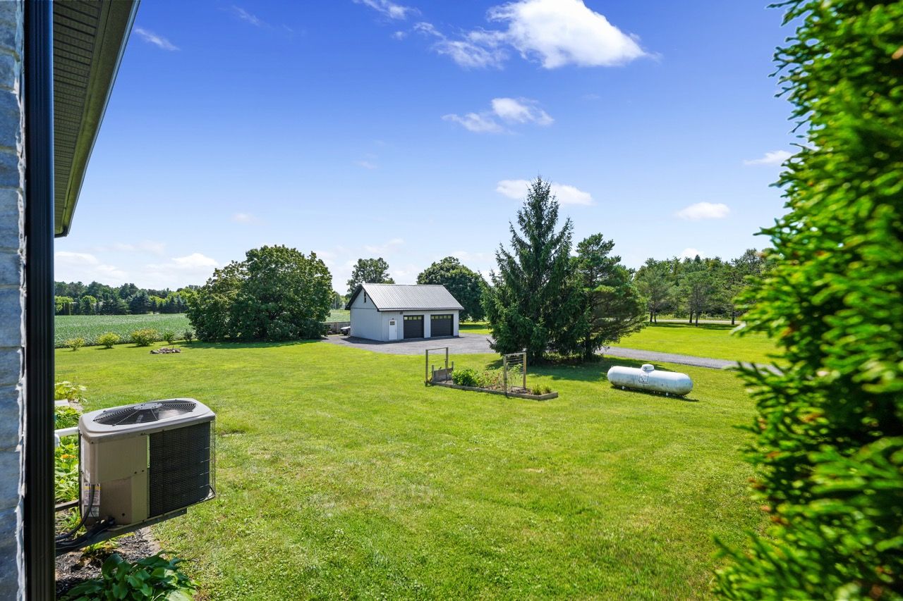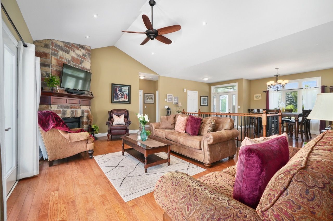 Nestled on a private 2-acre estate on the outskirts of Port Hope in a family-friendly area, this exquisite executive-style bungalow defines luxury living. An open floor plan features wood flooring, cathedral ceiling, & recessed lighting, centred around a stone-clad corner fireplace. French doors open onto a back deck, extending the living space & offering breathtaking views. The kitchen features dual peninsulas, one w/ a convenient breakfast bar, cherry cabinetry, contemporary countertops, built-in S/S appliances, and a wine fridge. An informal breakfast area adjoins, connecting to the M/F laundry. The primary bedroom is a serene sanctuary w/ walk-in closet & ensuite. 2 additional bedrooms share a full bath, perfect for family or guests. L/L is an entertainer's dream space w/ sprawling Rec & games room, complete w/ wet bar featuring a live edge wood bar top. A sunny guest bedroom adorned w/ an electric fireplace & mantle offers a cozy retreat.Outside deck w/ glass surround, meticulously landscaped & mature trees. With an attached 3-bay garage & detached two-bay workshop. Savour peaceful country living while being mere minutes from in-town amenities & easy access to the 401.