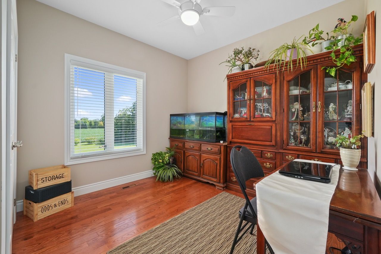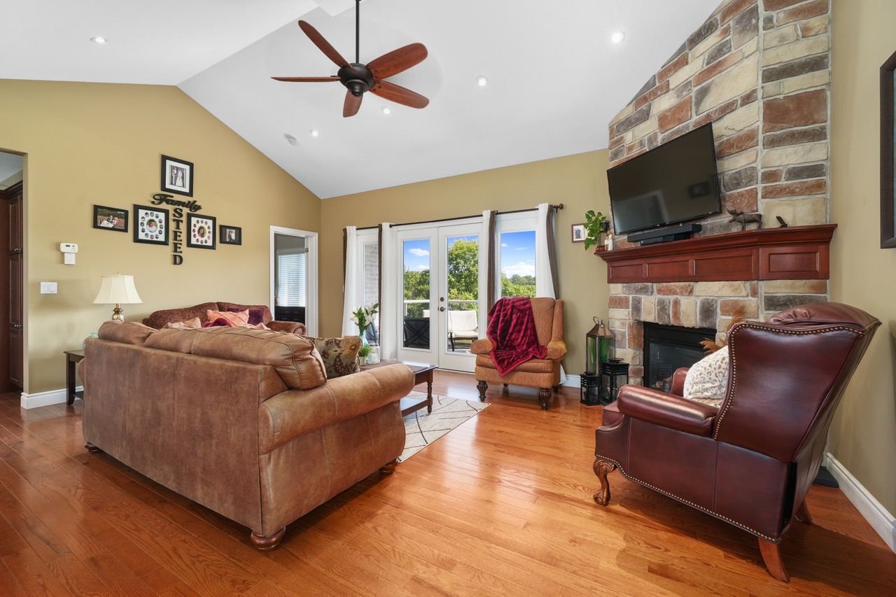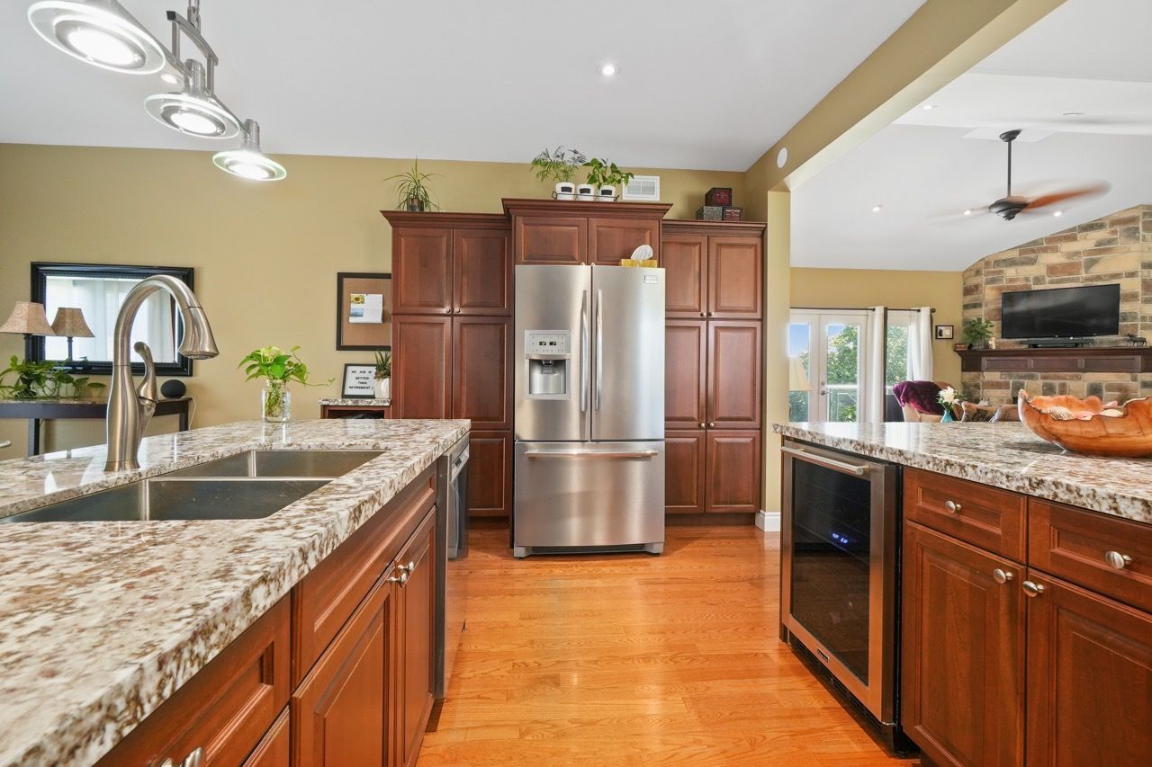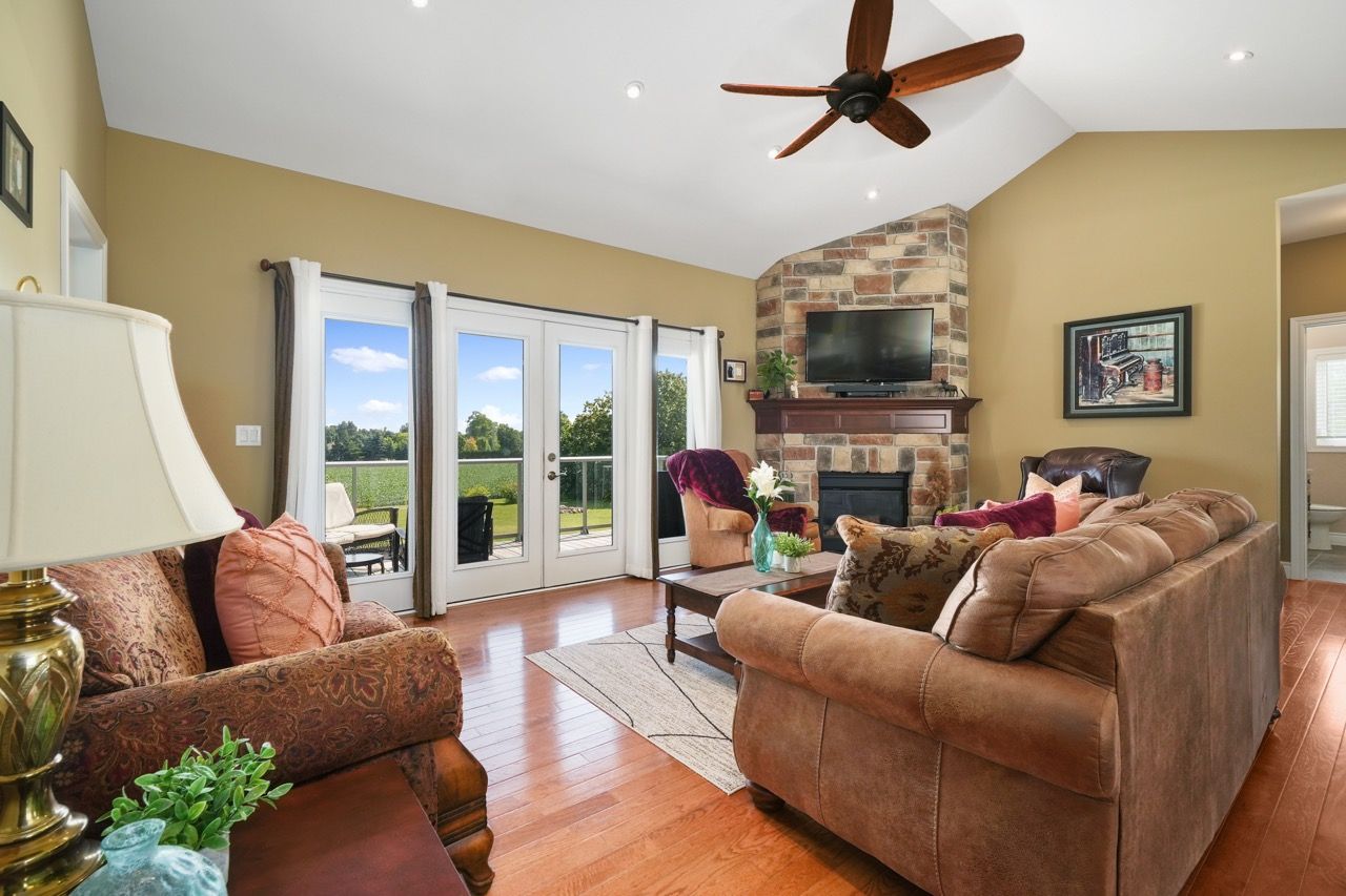 Nestled on a private 2-acre estate on the outskirts of Port Hope in a family-friendly area, this exquisite executive-style bungalow defines luxury living. An open floor plan features wood flooring, cathedral ceiling, & recessed lighting, centred around a stone-clad corner fireplace. French doors open onto a back deck, extending the living space & offering breathtaking views. The kitchen features dual peninsulas, one w/ a convenient breakfast bar, cherry cabinetry, contemporary countertops, built-in S/S appliances, and a wine fridge. An informal breakfast area adjoins, connecting to the M/F laundry. The primary bedroom is a serene sanctuary w/ walk-in closet & ensuite. 2 additional bedrooms share a full bath, perfect for family or guests. L/L is an entertainer's dream space w/ sprawling Rec & games room, complete w/ wet bar featuring a live edge wood bar top. A sunny guest bedroom adorned w/ an electric fireplace & mantle offers a cozy retreat.Outside deck w/ glass surround, meticulously landscaped & mature trees. With an attached 3-bay garage & detached two-bay workshop. Savour peaceful country living while being mere minutes from in-town amenities & easy access to the 401.