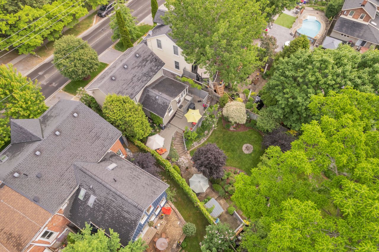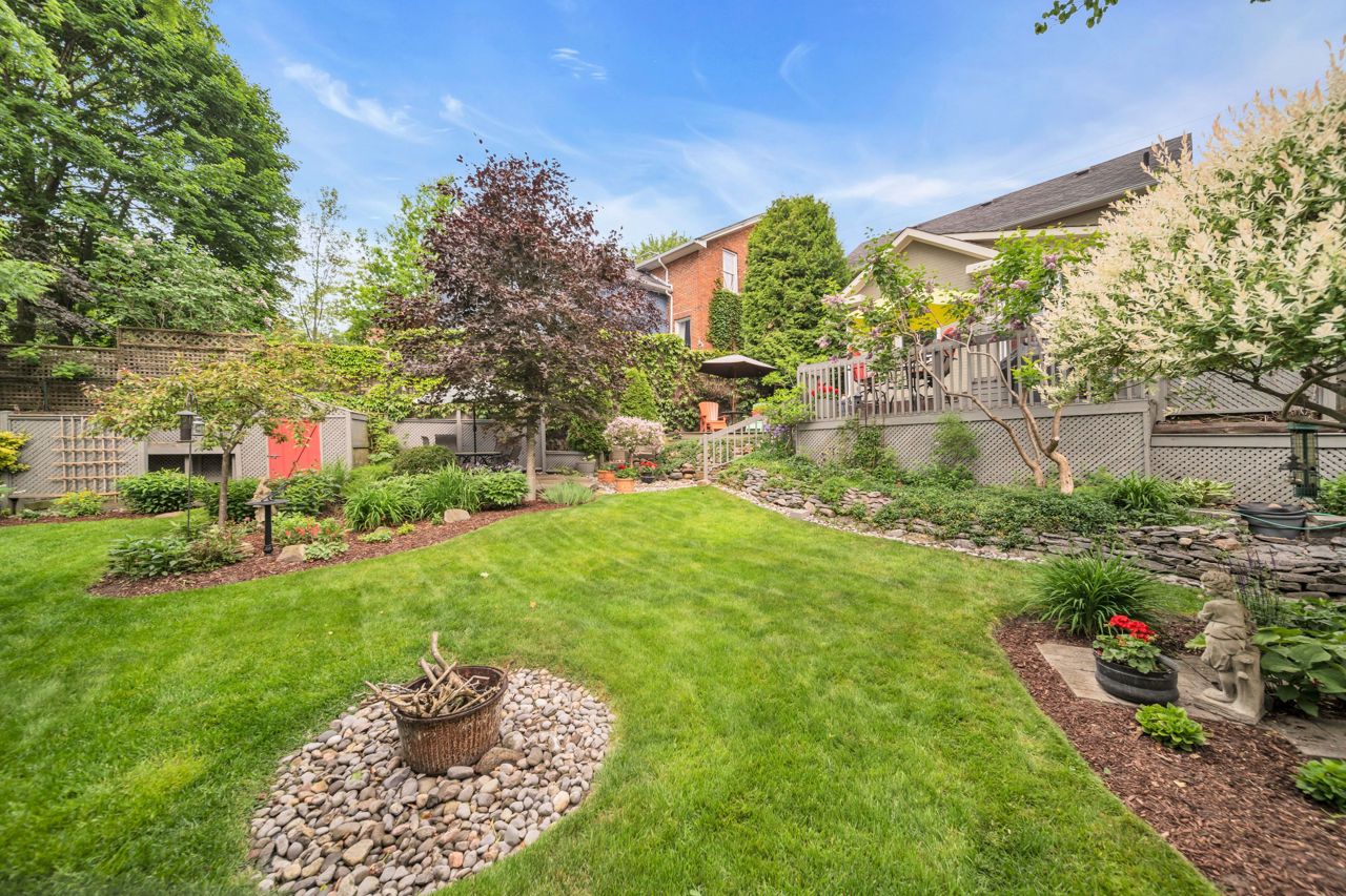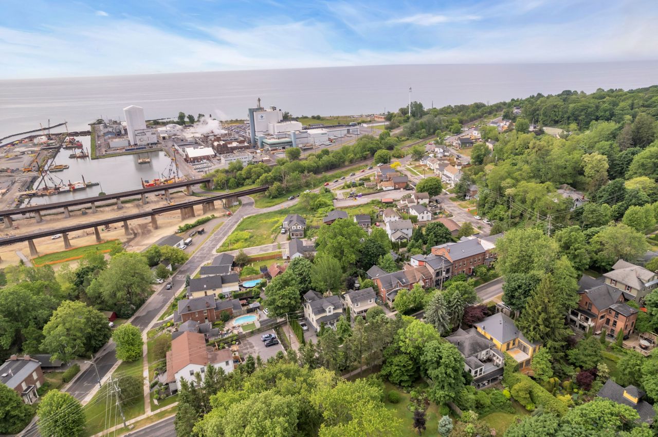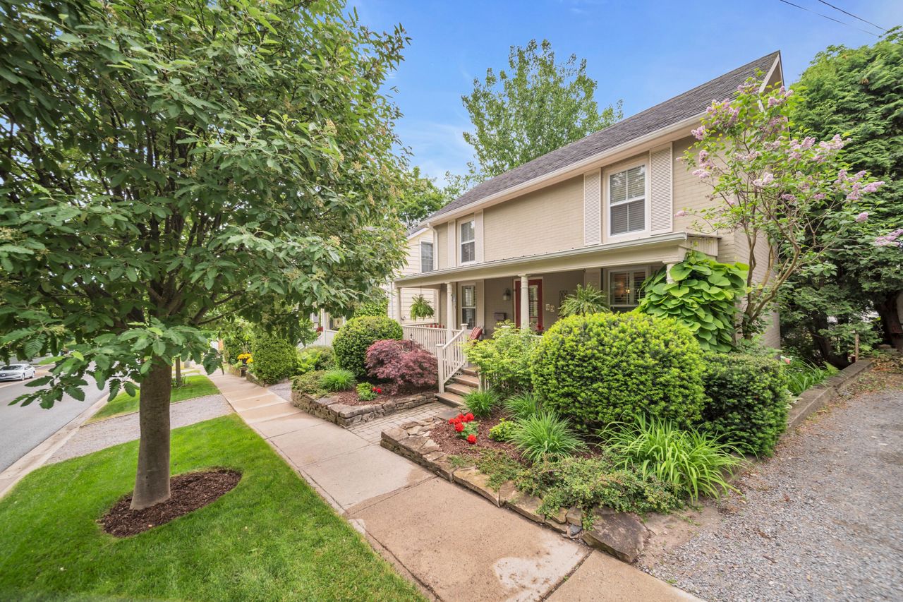 A very special listing & opportunity to purchase this 1897 post & beam, brick, century 2 storey home. A home with 2 BR's, 1 1/2 bathrooms that radiates charm & personality. Enjoy afternoon refreshments on the inviting front veranda. Features include a formal DR with free-standing gas fireplace, formal LR, & a bright kitchen that features a gas range, beamed ceiling, eating area, California shutters & a view that includes a private garden oasis & Lake Ontario. 2nd level includes 2 BR's with cedar lined closets & 3-piece bath. Lower level features a "pass through" 2 piece bath, utility/workshop area & finished room with cork flooring which is currently an office, but could be a 3rd bedroom or TV room. There is a crawl space, great storage area under the kitchen addition. The back terraced deck & fenced landscaped yard are breathtaking with perennials in full bloom!Garden shed & 3 rain barrels.