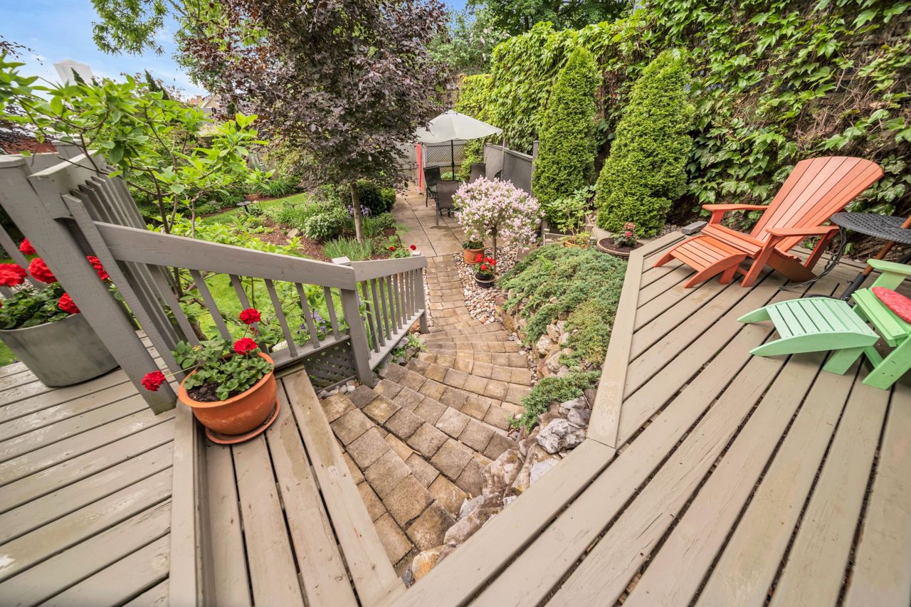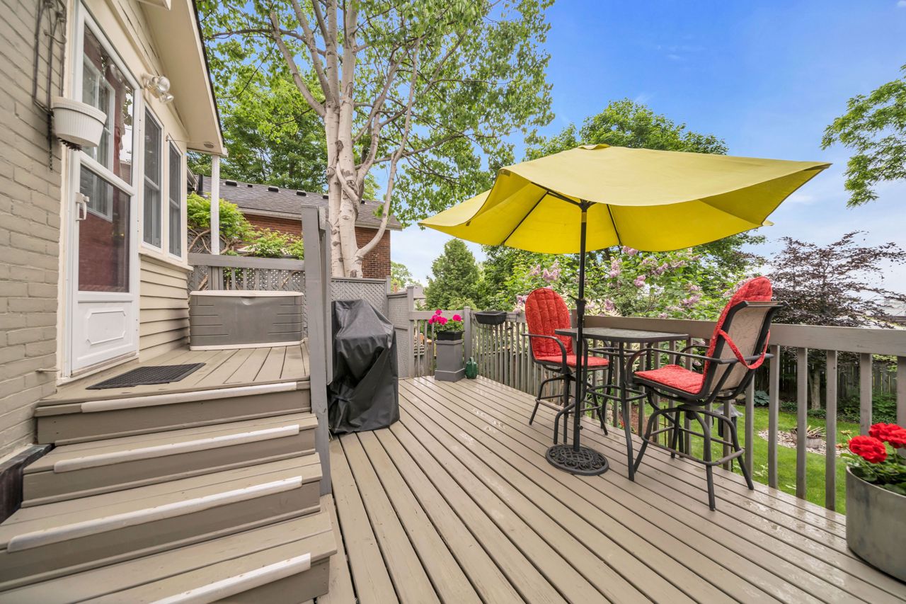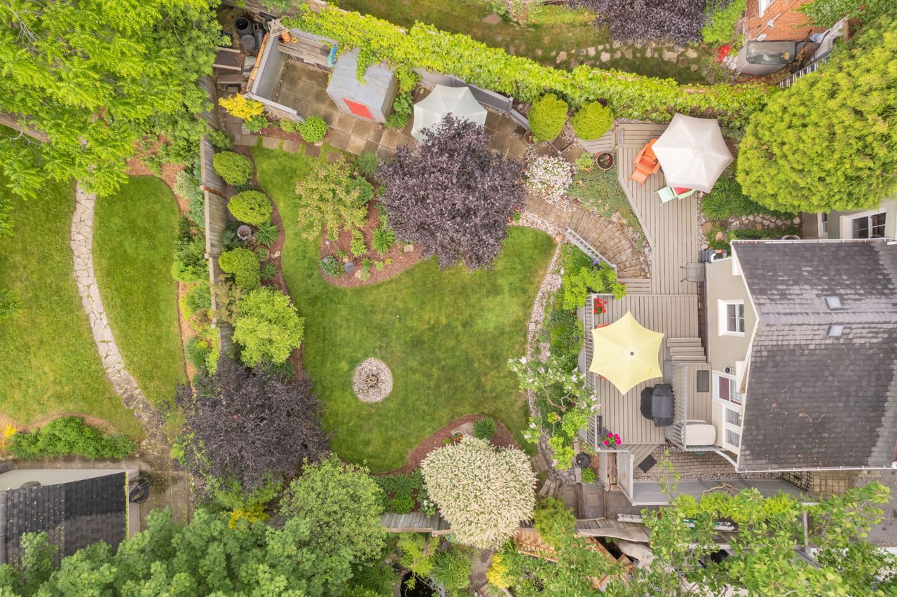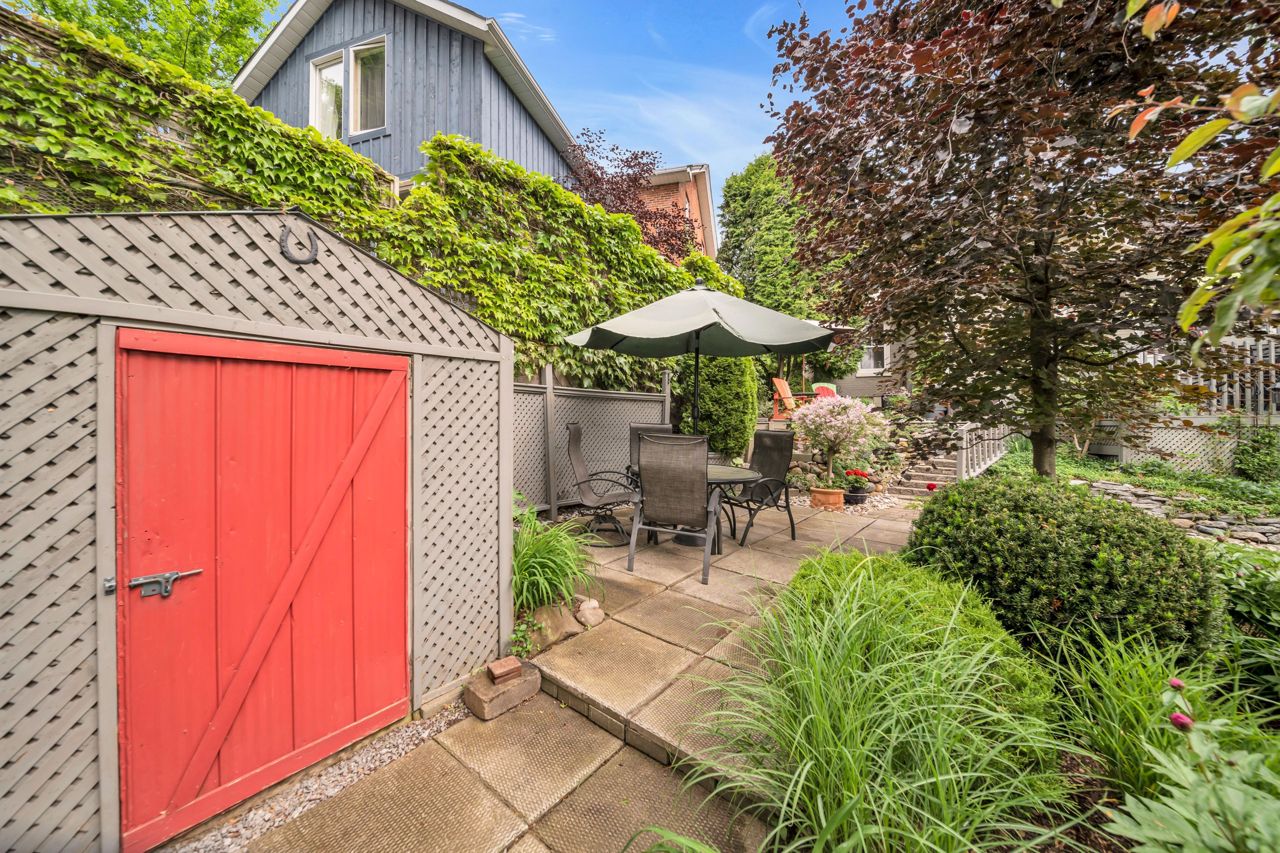A very special listing & opportunity to purchase this 1897 post & beam, brick, century 2 storey home. A home with 2 BR's, 1 1/2 bathrooms that radiates charm & personality. Enjoy afternoon refreshments on the inviting front veranda. Features include a formal DR with free-standing gas fireplace, formal LR, & a bright kitchen that features a gas range, beamed ceiling, eating area, California shutters & a view that includes a private garden oasis & Lake Ontario. 2nd level includes 2 BR's with cedar lined closets & 3-piece bath. Lower level features a "pass through" 2 piece bath, utility/workshop area & finished room with cork flooring which is currently an office, but could be a 3rd bedroom or TV room. There is a crawl space, great storage area under the kitchen addition. The back terraced deck & fenced landscaped yard are breathtaking with perennials in full bloom!Garden shed & 3 rain barrels.