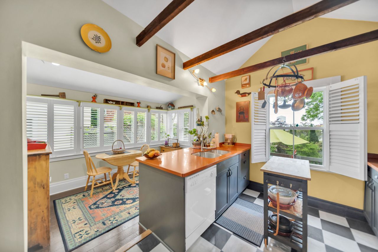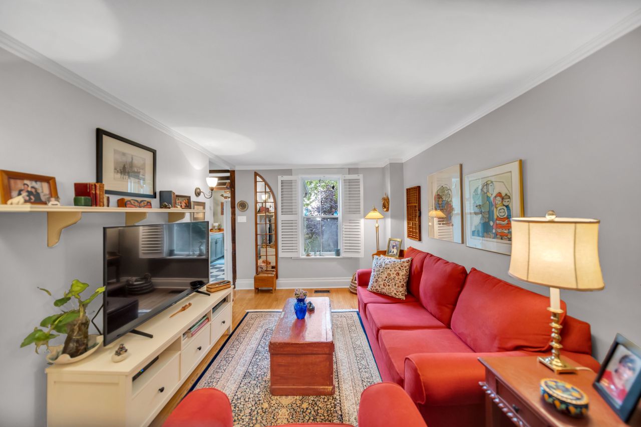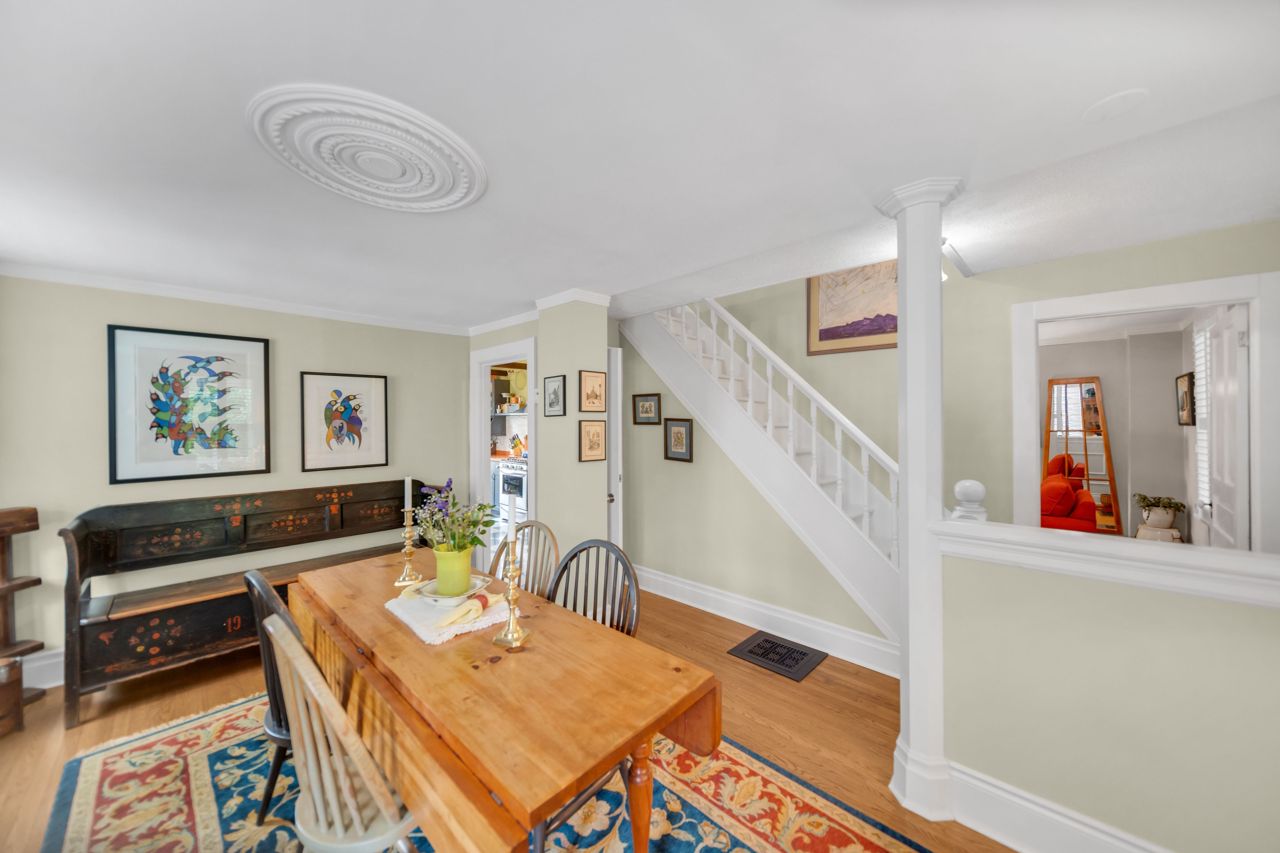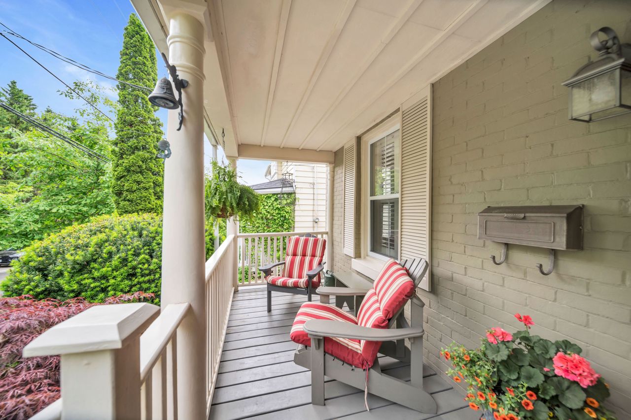 A very special listing & opportunity to purchase this 1897 post & beam, brick, century 2 storey home. A home with 2 BR's, 1 1/2 bathrooms that radiates charm & personality. Enjoy afternoon refreshments on the inviting front veranda. Features include a formal DR with free-standing gas fireplace, formal LR, & a bright kitchen that features a gas range, beamed ceiling, eating area, California shutters & a view that includes a private garden oasis & Lake Ontario. 2nd level includes 2 BR's with cedar lined closets & 3-piece bath. Lower level features a "pass through" 2 piece bath, utility/workshop area & finished room with cork flooring which is currently an office, but could be a 3rd bedroom or TV room. There is a crawl space, great storage area under the kitchen addition. The back terraced deck & fenced landscaped yard are breathtaking with perennials in full bloom!Garden shed & 3 rain barrels.