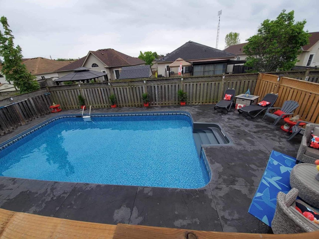 Welcome home! Stunning 2 plus 2 bed, 3 bath family home in desireable Port Hope neighborhood! This beautiful home features elegant finishes, charm and loads of updates! Vaulted ceilings in foyer entry and family room, hardwood floors on main and new broadloom 2023, inground salt water pool 2021 with stamped concrete yard for endless summer relaxation and entertainment, main floor offers open concept layout to stay connected, with formal living and dining, family room and eat-in kitchen! Tasteful, updated lighting, new Lennox furnace and heat pump 2023, insulated garage doors/openers 2022, 200 Amp update 2021, custom patio door 2022 and so much more! Main floor laundry, access to 2 car garage, with ample parking for up to 6 Primary ensuite offers glass walk-in shower and heated floors! 2 offices for work from home, 3 pc bath in basement, recreation area with gas fireplace and large utility/storage room! The perfect home for a growing family, or to welcome extended family!On demand hot water tank rental $56/mo. Late March/Early April closing available or TBD. Total sq ft 2837 includes basement.
