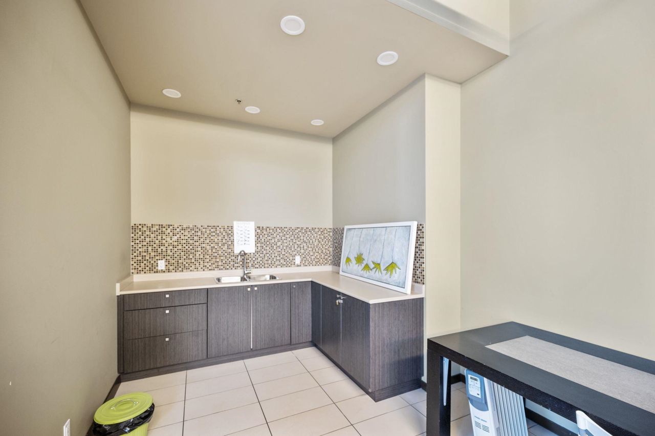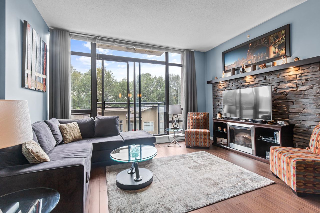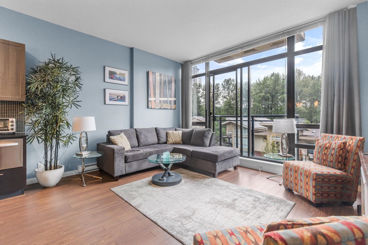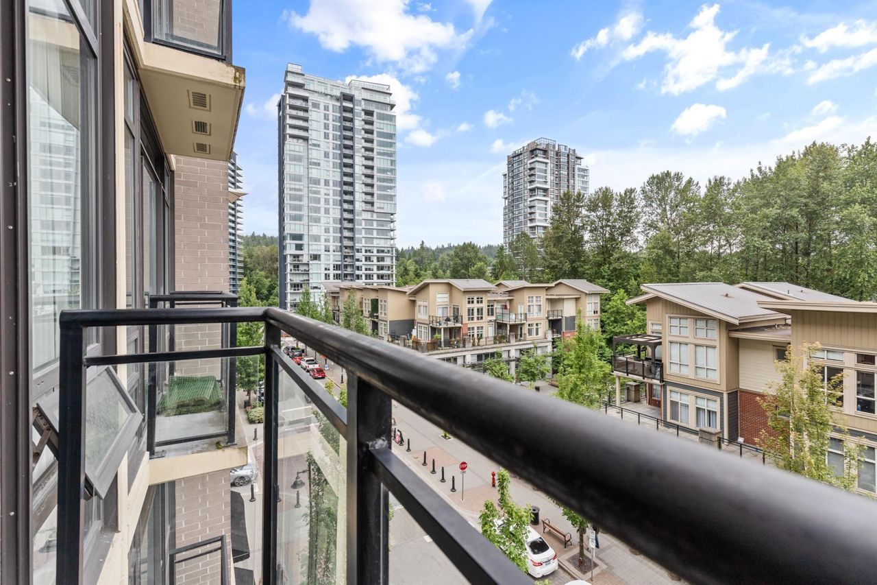 Welcome to The Room in Port Moody! Situated centrally in the heart of Suter Brook Village this spacious 1 Bedroom/1 Bathroom condo boasts 10 ft ceilings & an amazing floor plan. Enter into the condo and take in all of the updates throughout! Premium kitchen with granite countertops, SS appliances & custom bar area with built in wine fridge & cabinetry - perfect for entertainers. Beautiful hardwood floors span the unit with an open living room with built in fireplace feature & the bedroom features a built in wardrobe. Concrete building also boasting tons of amenities including a gym, pool, jacuzzi, squash court, & games room. 1 parking stall & 1 storage locker. 2 pets allowed. Located next to a commercial plaza for all your shopping needs, various restaurants and parks are also close by!
