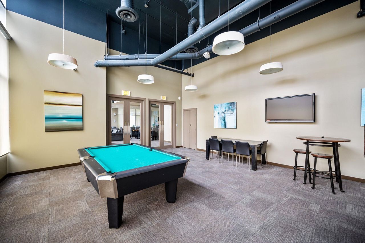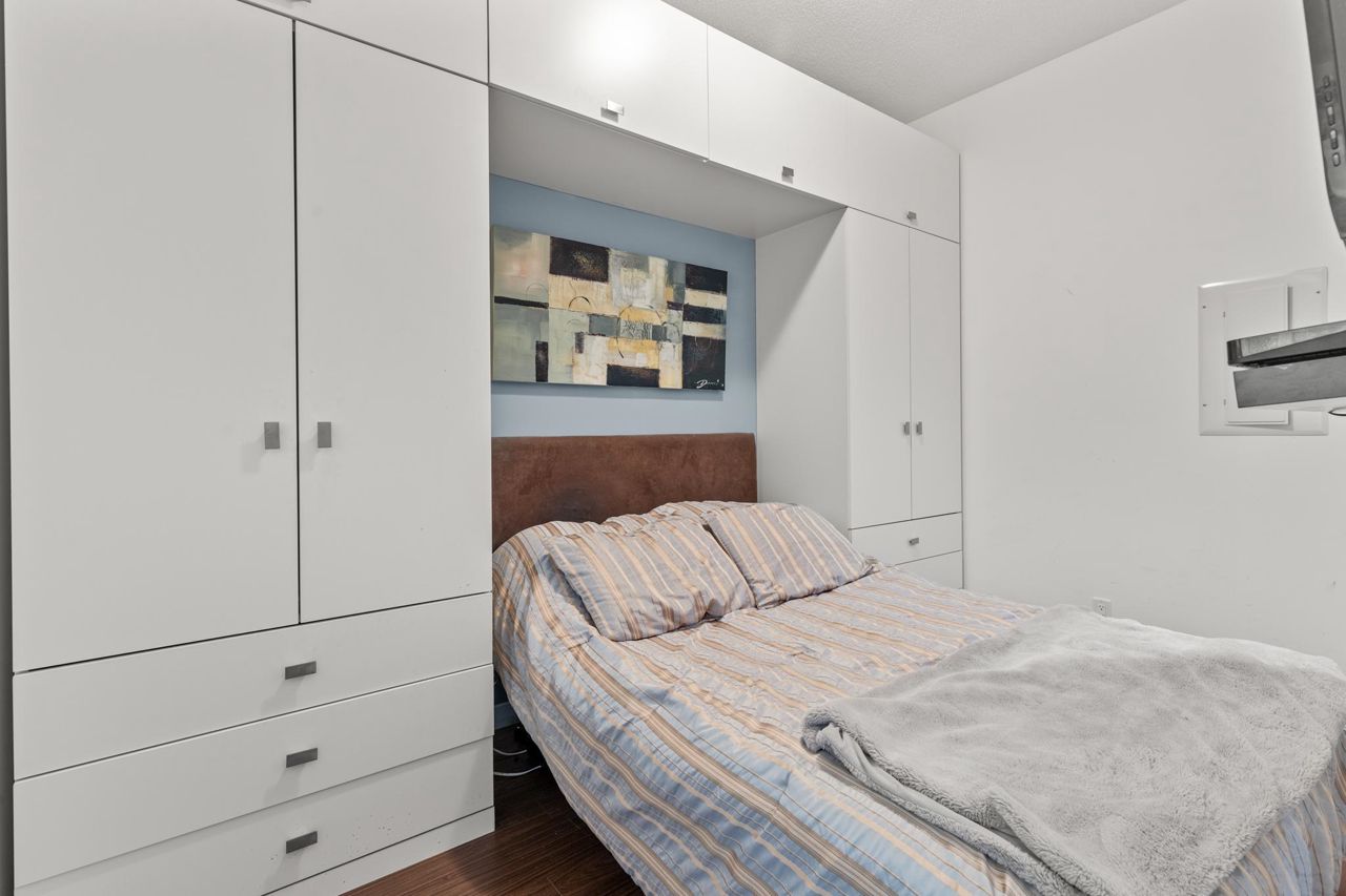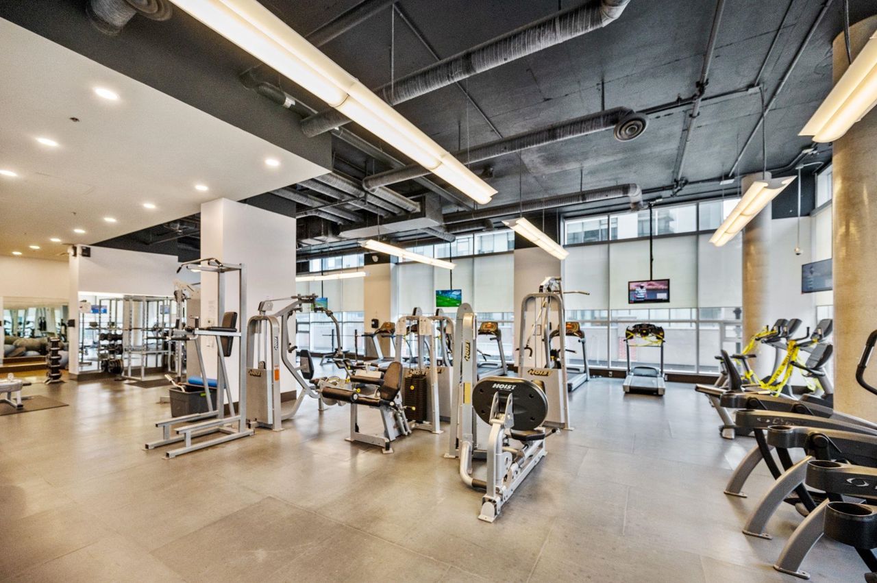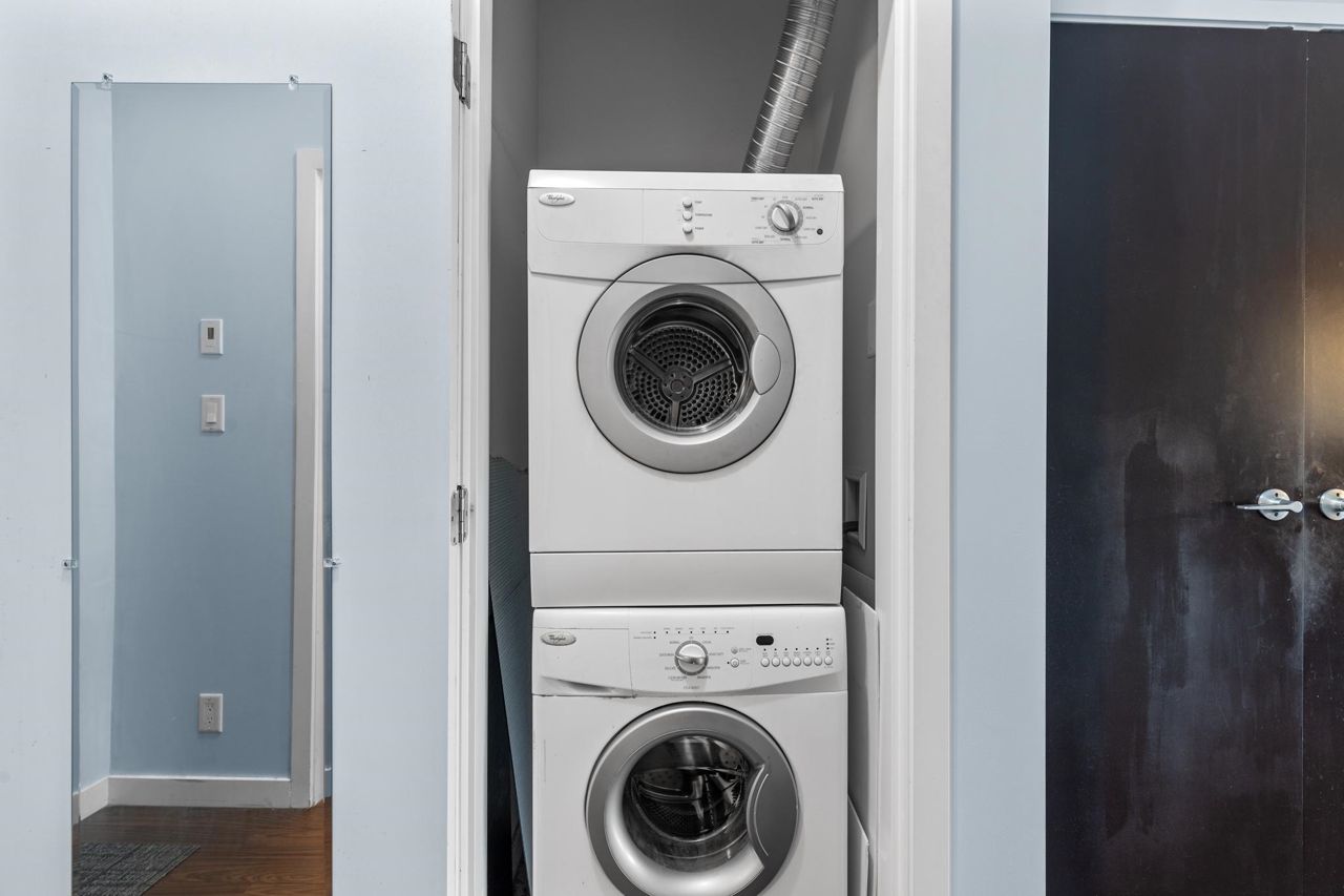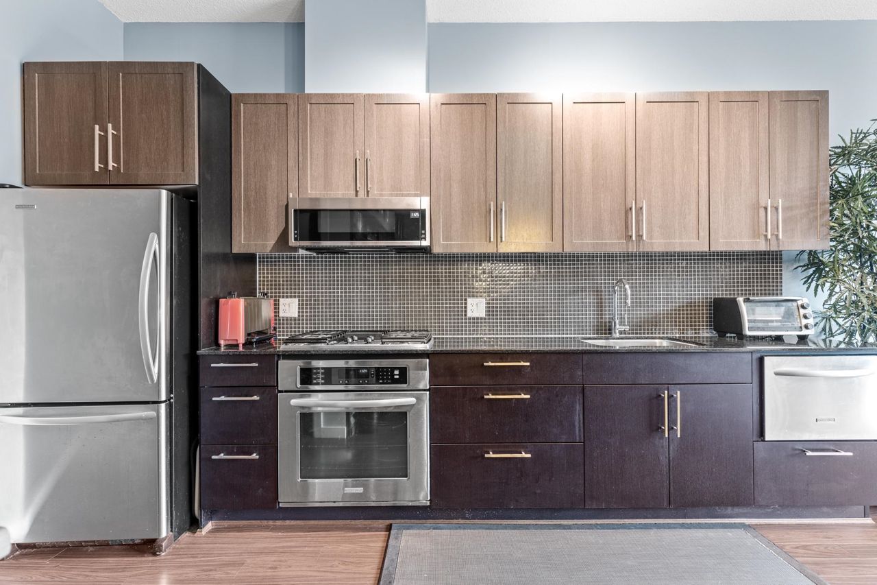 Welcome to The Room in Port Moody! Situated centrally in the heart of Suter Brook Village this spacious 1 Bedroom/1 Bathroom condo boasts 10 ft ceilings & an amazing floor plan. Enter into the condo and take in all of the updates throughout! Premium kitchen with granite countertops, SS appliances & custom bar area with built in wine fridge & cabinetry - perfect for entertainers. Beautiful hardwood floors span the unit with an open living room with built in fireplace feature & the bedroom features a built in wardrobe. Concrete building also boasting tons of amenities including a gym, pool, jacuzzi, squash court, & games room. 1 parking stall & 1 storage locker. 2 pets allowed. Located next to a commercial plaza for all your shopping needs, various restaurants and parks are also close by!
