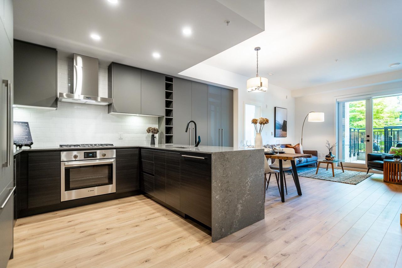 Welcome to 50 Electronic Avenue. THIS GORGEOUS DEVELOPMENT IS DYNAMIC! Walking distance to Rocky Point Park, West Coast Express, Shopping and Brewers Row. This beautiful 2 bedroom GROUND LEVEL suite with a LARGE patio has its own PRIVATE entrance! Features a top of the line appliance package; Fisher & Paykel 36" integrated French door fridge, Bosch gas range stove and electronic oven, Bosch integrated dishwasher, a large pantry for extra storage and built in closet organizers in the master bedroom, main bedroom and front hall closet. Club house with over 9000sq ft over 3 levels includes a fitness centre, yoga room, kids play areas, owners lounge, guest suite, bike repair shop, and pet wash! This home comes with 2 PARKING STALLS and 1 storage locker.