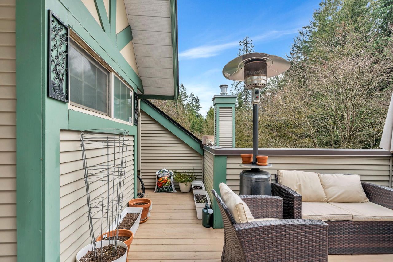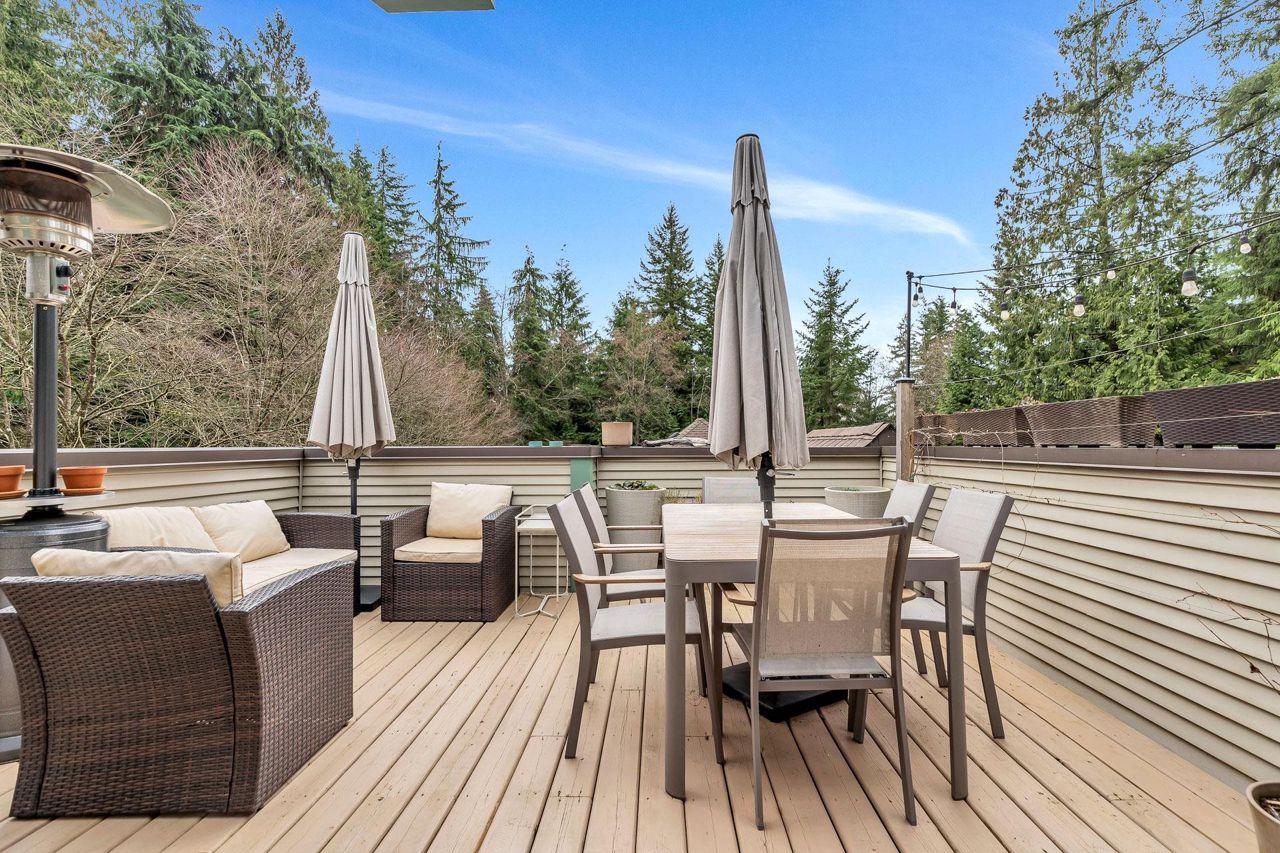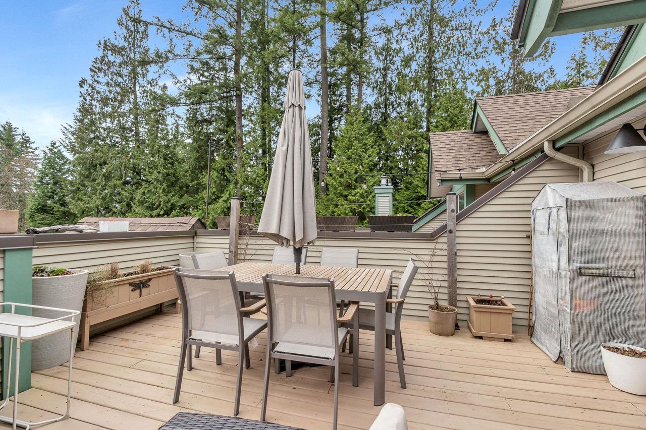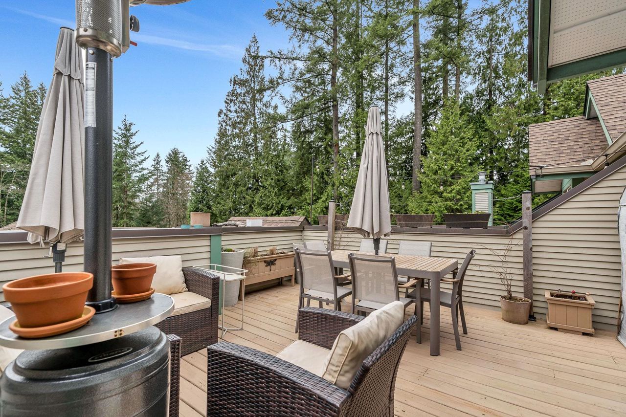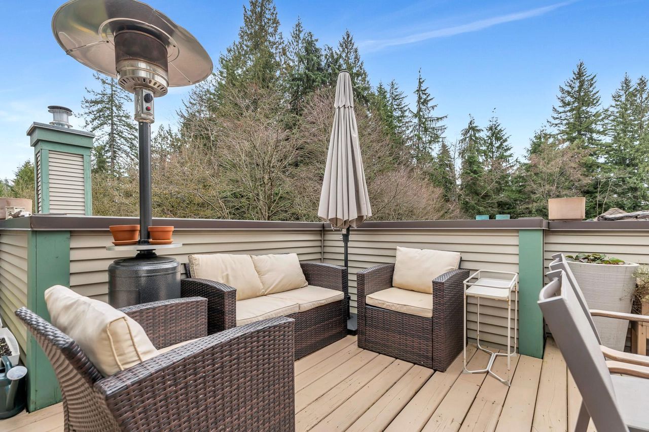 This MOVE-IN READY 2 bed + den, 2.5 bath, 1380 sqft townhouse boasts an amazing 300 sqft rooftop patio! The layout offers optimal privacy and serene views of the forest from the living room, bedrooms, or the expansive rooftop deck. You'll love the generous kitchen with a walk-in pantry & breakfast nook, formal dining area, alongside a luminous living room with high windows and a modernized cozy gas fireplace. Main floor includes full-sized laundry. The upper level hosts 2 bedrooms & a versatile den/storage space. The master suite features a semi-vaulted ceiling, a 4-piece ensuite bath, a walk-in closet, and direct access to the rooftop deck. Situated in the prime Heritage Mtn area, it's close to the WCE, Newport Village, lakes, trails, & schools. Open House Feb 10th 2-4pm & Feb 11th 1-3pm.