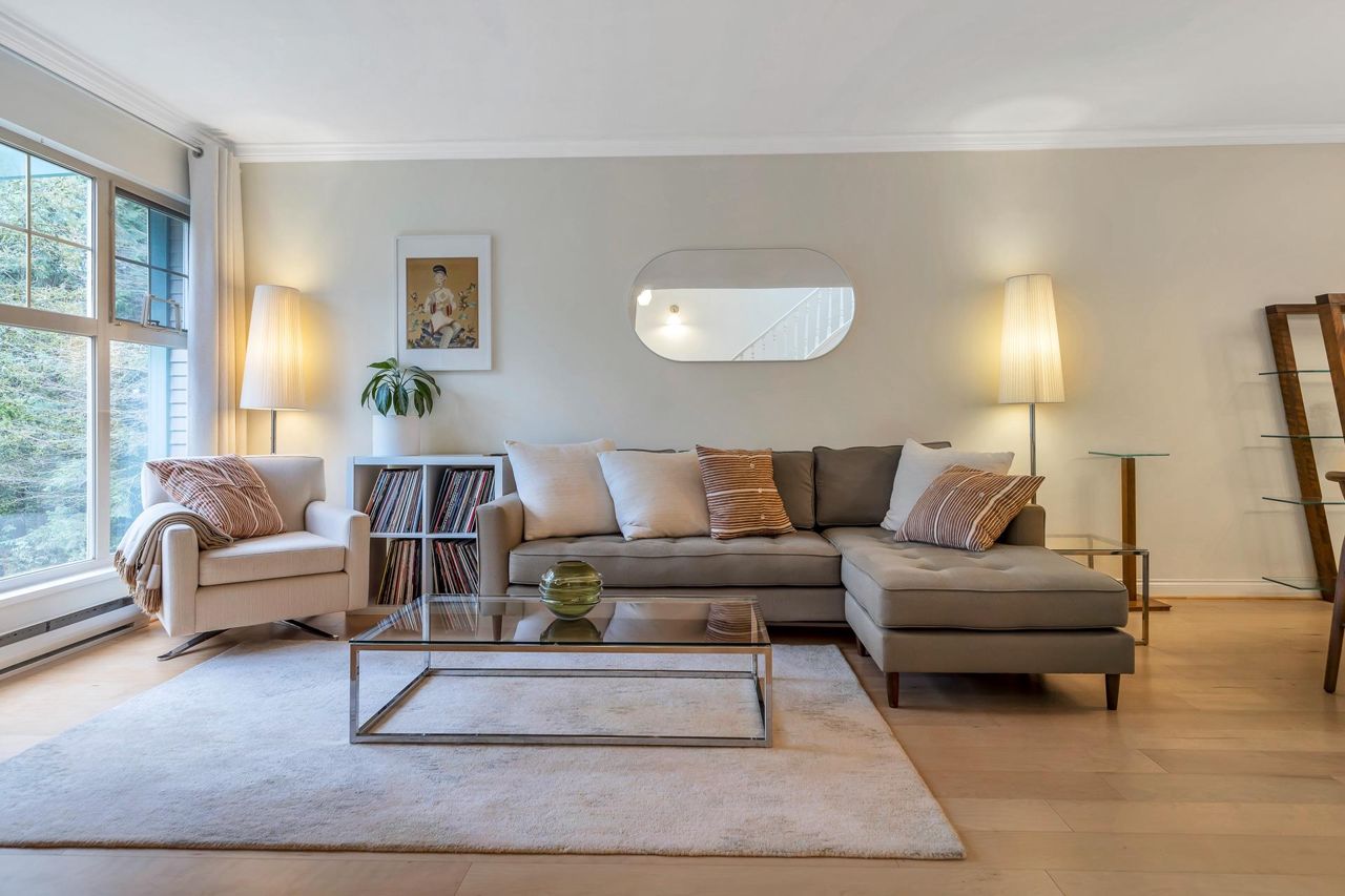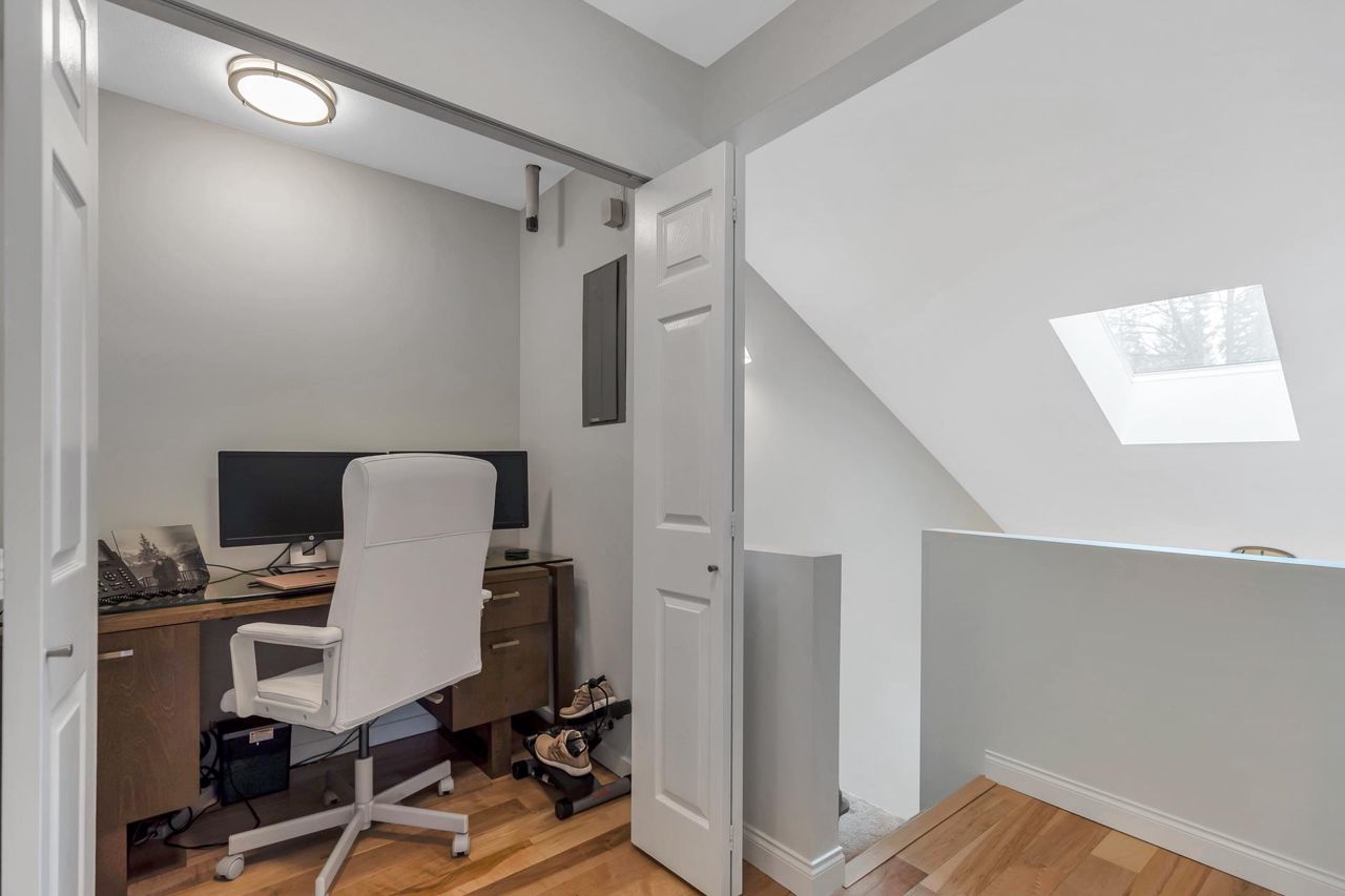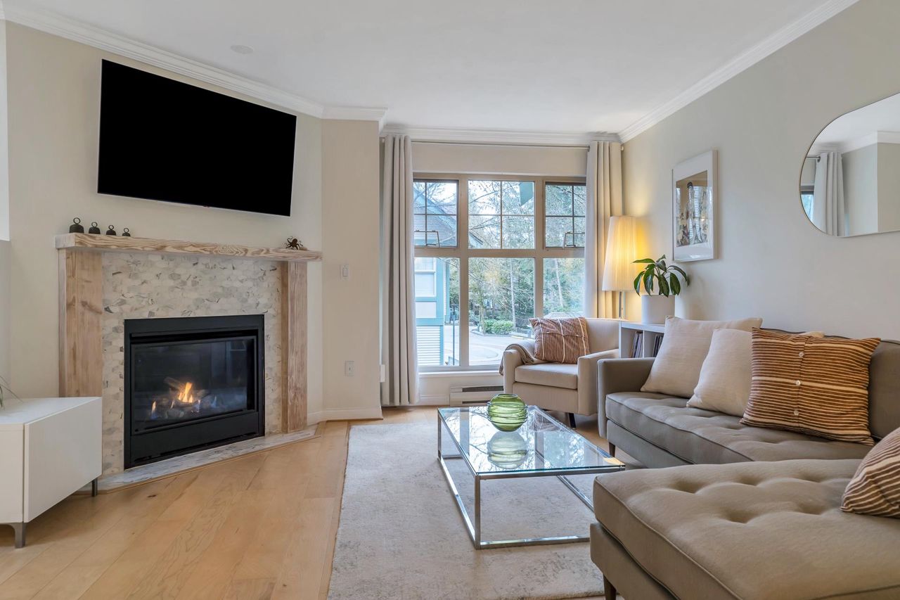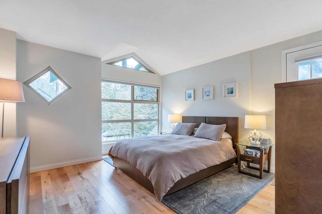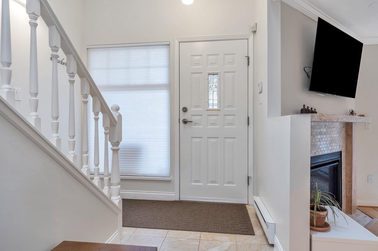 This MOVE-IN READY 2 bed + den, 2.5 bath, 1380 sqft townhouse boasts an amazing 300 sqft rooftop patio! The layout offers optimal privacy and serene views of the forest from the living room, bedrooms, or the expansive rooftop deck. You'll love the generous kitchen with a walk-in pantry & breakfast nook, formal dining area, alongside a luminous living room with high windows and a modernized cozy gas fireplace. Main floor includes full-sized laundry. The upper level hosts 2 bedrooms & a versatile den/storage space. The master suite features a semi-vaulted ceiling, a 4-piece ensuite bath, a walk-in closet, and direct access to the rooftop deck. Situated in the prime Heritage Mtn area, it's close to the WCE, Newport Village, lakes, trails, & schools. Open House Feb 10th 2-4pm & Feb 11th 1-3pm.