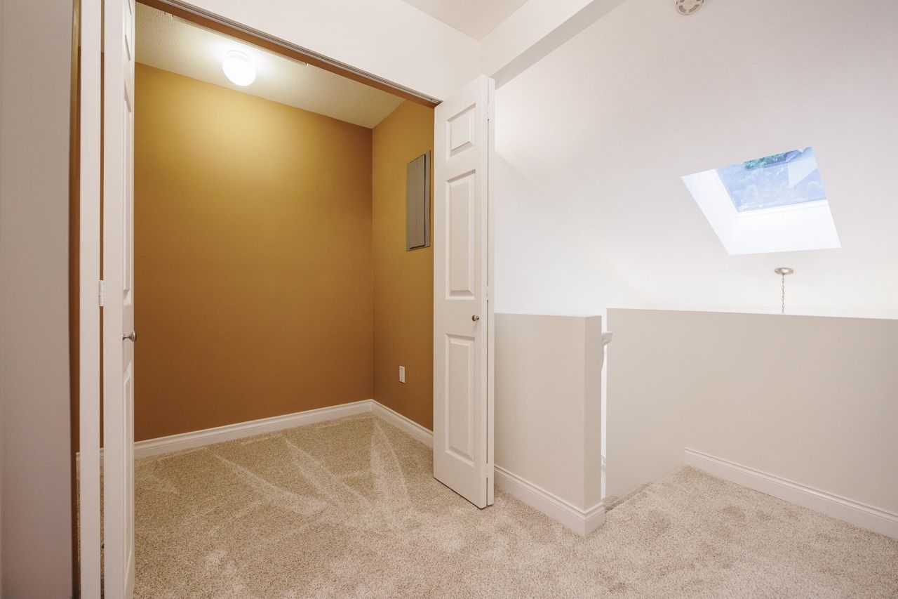 This 1370 square foot, 2 bed + den, 2.5 bath, townhouse is nestled in an ultra quiet and serene setting and boasts an amazing 300 square foot ROOFTOP BALCONY! Home features newer: roof, updated kitchen, carpets, paint, hot water tank, blinds, fireplace insert, dishwasher, light fixtures and more! Amazing two level design with powder room on main floor, cozy gas fireplace, and spacious kitchen. Main floor also offers a balcony that's perfect for BBQ's. Upstairs master bedroom has stunning vaulted ceilings, large walk-in closet and 4 piece ensuite. The private rooftop balcony is perfect for entertaining and enjoying your morning coffee or an evening favorite local brewery bevy! 2 parking stalls and a large locker as well. This floor plan doesn't last! Open house Saturday April 13th, 2-4:00pm