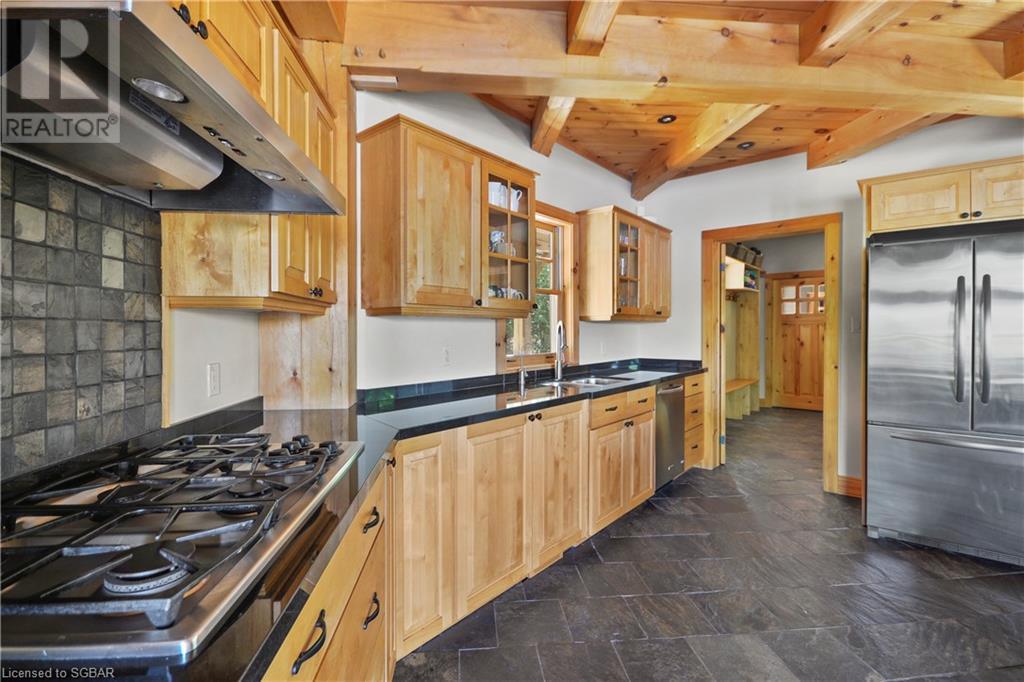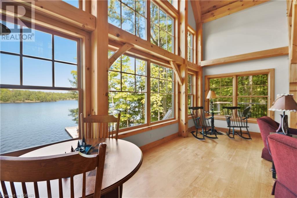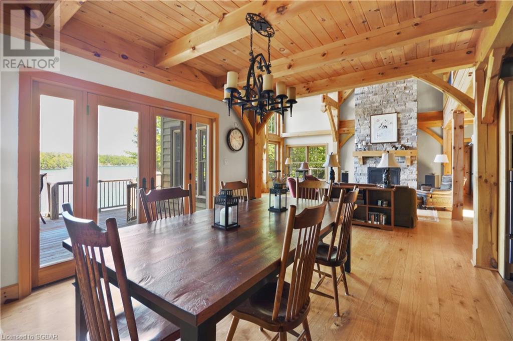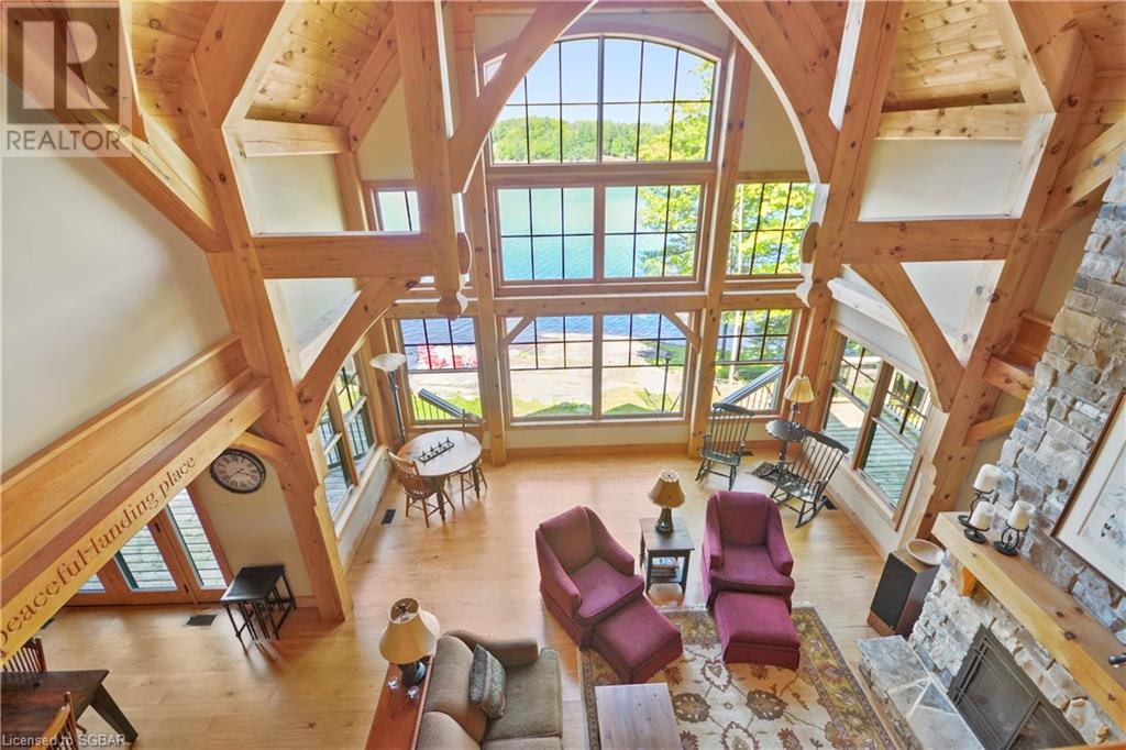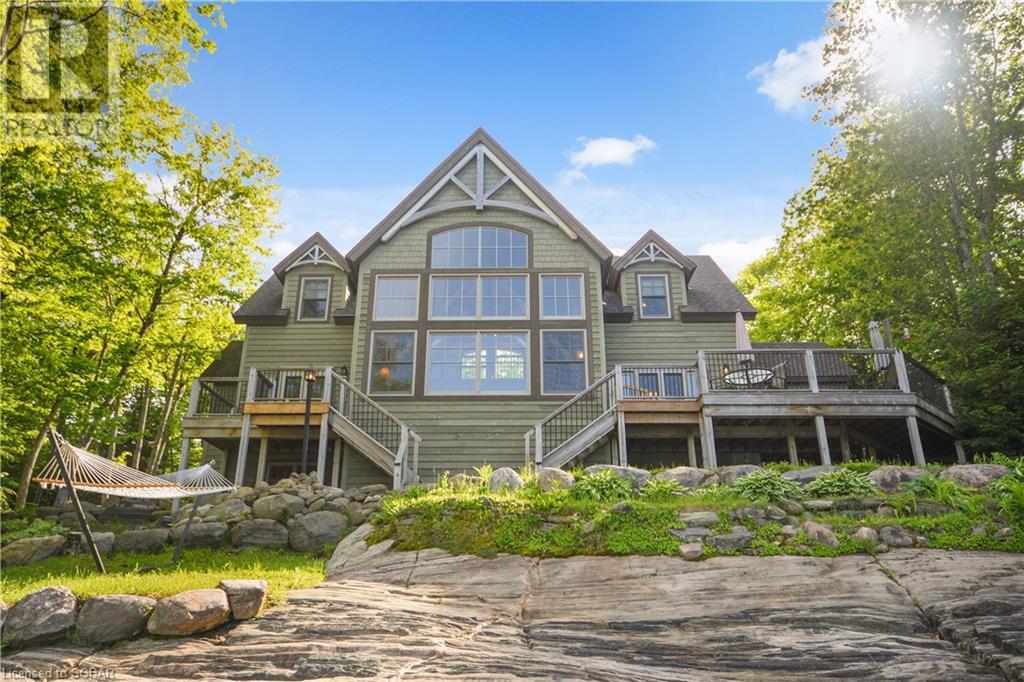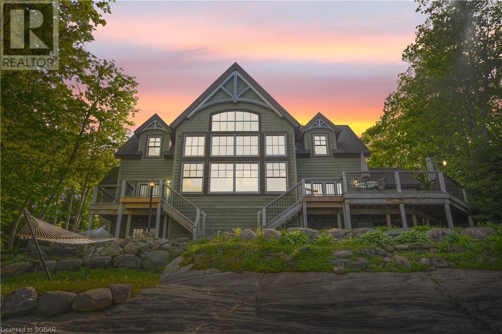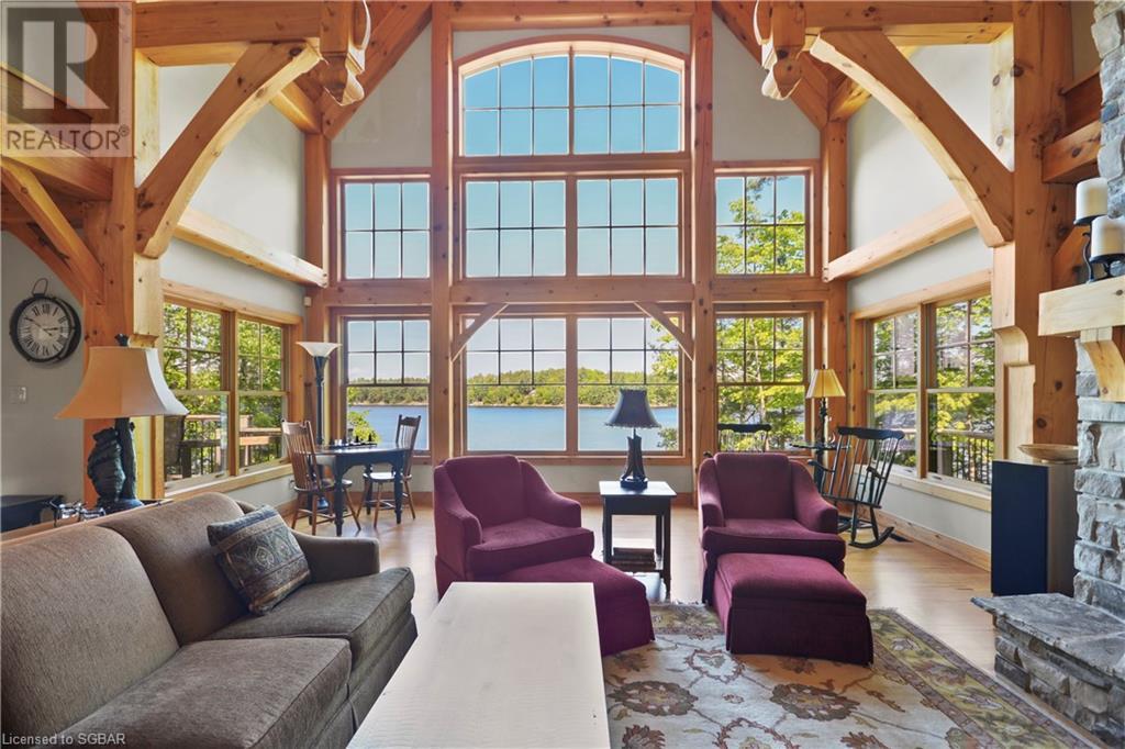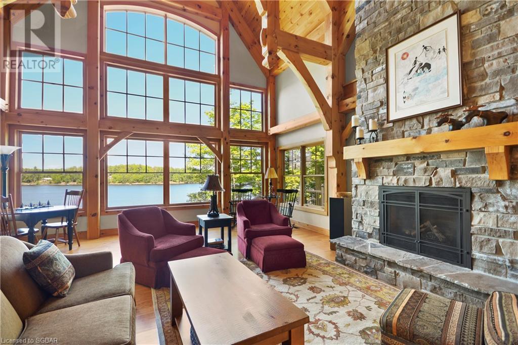 The shimmering waters of Muskokas Gibson Lake beckons. This 3 bedroom 2.5 bath timber frame open concept home checks all of the boxes. From the soaring vaulted ceilings to the spacious rooms, exploring this stylish home is full of surprises. Curl up in front of the stone fireplace in the Great Room or spend the afternoon reading on the sun-drenched deck. Entertain in style from the well-appointed kitchen or later, the Muskoka Room. The peaceful Master Suite is comprised of an ensuite, a walkout to the deck and a walk-in closet with built-ins. The laid-back loft will be a favourite as it overlooks the Great Room. For endless fun on rainy days, chill in the Games Room over the double car garage or watch videos in the Rec Room. The grounds are landscaped with granite and perennial gardens. Docktails will be a breeze on the custom-made dock or sandy beach and every night can be a smores night by the fire on the large granite patio. Dont miss the boat! Only 90 mins from the GTA. (id:22211)