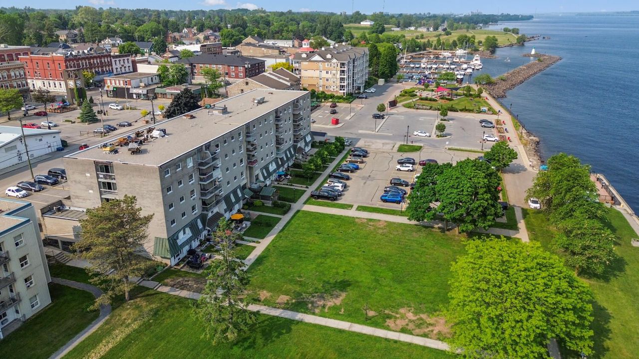 2-Bedroom Condo with Stunning St. Lawrence River Views - Welcome to Prescott Place! This bright and well-maintained 2-bedroom, 1-bathroom condo offers year-round, unobstructed views of the beautiful St. Lawrence River. Whether you're looking for a future home or a smart investment, this unit is perfect. Buy now and rent it out until you're ready to move in. Inside, you'll be greeted by abundant natural light, thanks to the unit's desirable south-facing exposure. The updated kitchen is conveniently located just off the entrance, offering ample counter and cupboard space. From the kitchen, step into the dining room, which features patio doors that open to your private balcony--a perfect spot to relax, enjoy the scenic river and park views, and watch fireworks from both the Canadian and U.S. sides. The dining room flows into a spacious living room, ideal for entertaining or cozy evenings at home. The hallway offers generous storage with multiple closets. You'll also find two comfortable bedrooms and a renovated 4-piece bathroom. Currently tenanted at $1,200/month (plus utilities), this condo includes one parking spot. Located just steps from downtown Prescott, you'll enjoy easy access to shops, restaurants, and amenities. Shoppers Drug Mart is right across the street for your everyday needs. Key Features: 2 Bedrooms | 1 Updated Bathroom, Private Balcony with River & Park Views, South-Facing Unit with Natural Light, Updated Kitchen, Ample Closet & Storage Space. The tenant pays $1,200/month + utilities, which includes 1 parking spot. Prime Location, Walkable to Downtown Prescott. Don't miss your chance to own a waterfront condo in a vibrant and convenient location!