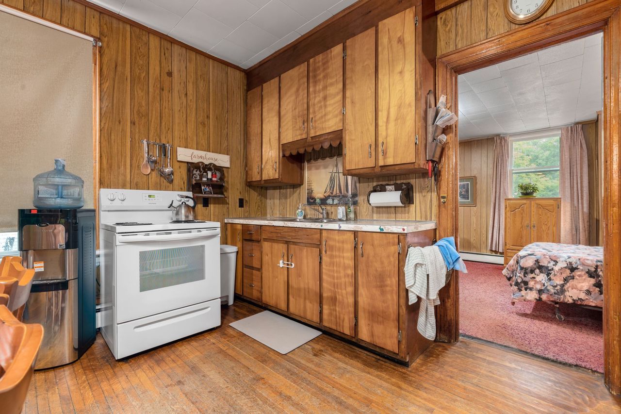 Opportunity to create your home and rent one too! Choose to keep two separate living spaces or convert it back to one large family home! This spacious century home is located just outside of Picton, offering municipal water and a large town lot! This two story home has been divided into 2 living spaces, each with bathroom and kitchen and also separate hydro meters. The main level has spacious rooms, high ceilings, 2 bedrooms, 4 piece bath, laundry and large eat-in kitchen. Large covered porch in the front and a heated mudroom expand the main floor living space. The upper level also has 2 bedrooms, living room, kitchen and bathroom. This home requires some renovating but there is so much potential to be explored, plus possibility to build another house on the back section of the lot. Over 4000 square feet of living space, ample parking, within walking distance to parks, hospital, restaurants and Main Street Picton.There is an outbuilding in the back yard with a cook house and detached garage.