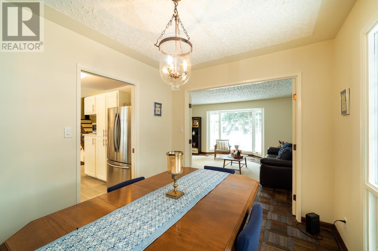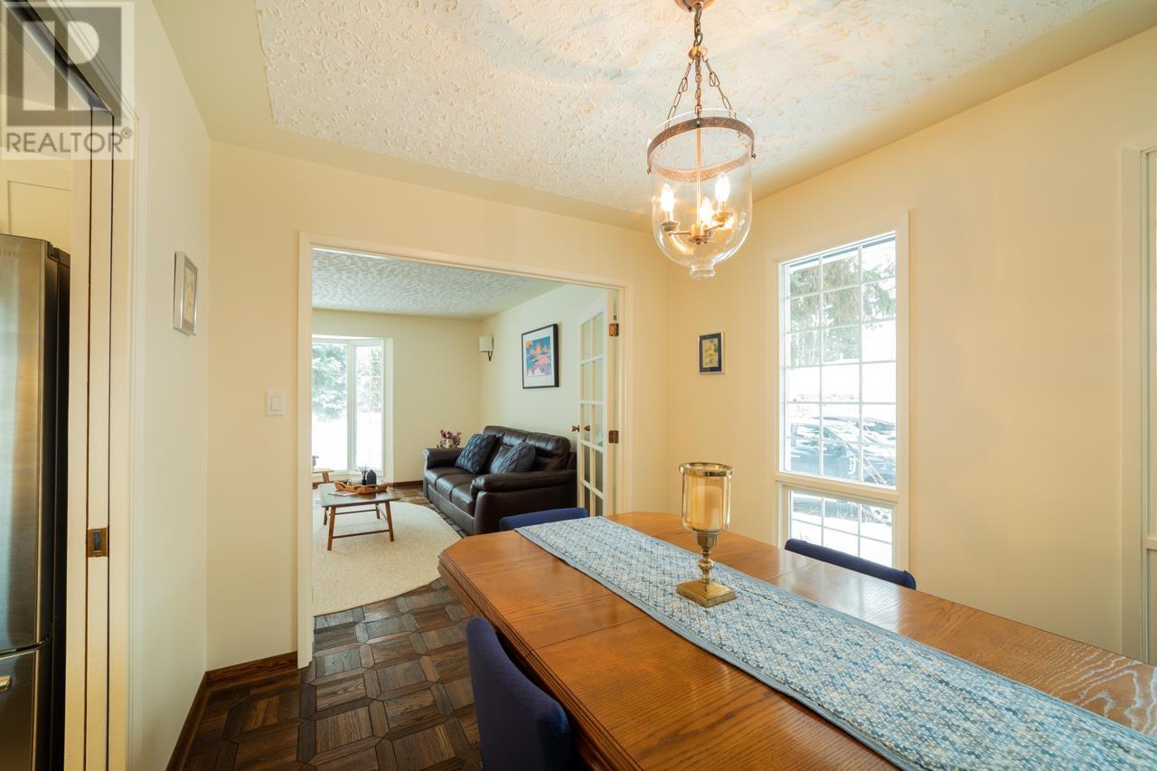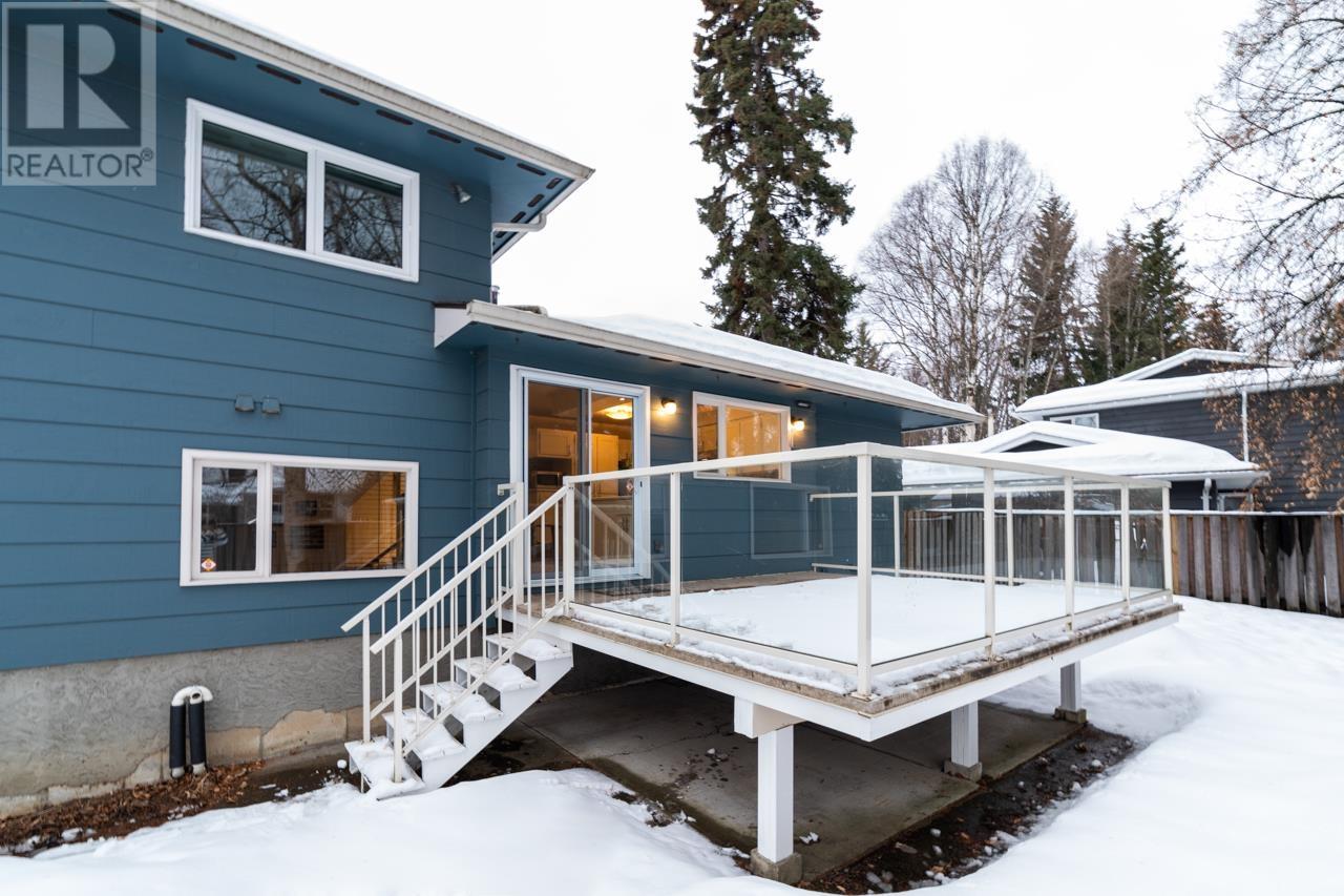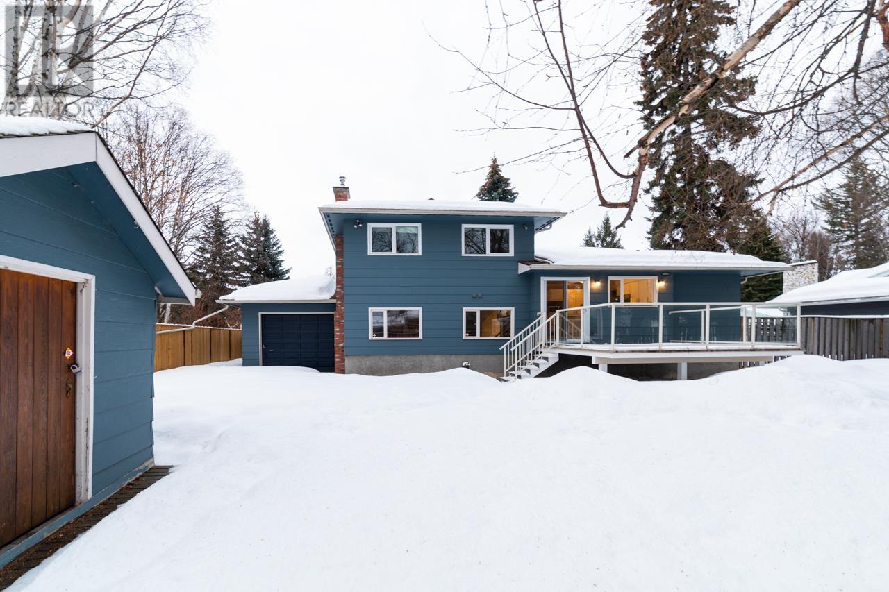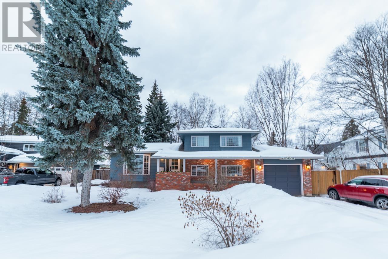 Impressive 5 bedroom, 3 bath home in quiet cul-de-sac, sought after upscale neighbourhood. Snow free covered walkway leads to the elegant front door. French doors grace the living & formal dining room, gorgeous hardwood floors. Glass panelled deck showcases the treed backyard. Bright kitchen overlooks the cozy family room level with wood fireplace, guest bedroom, inviting 3 pc spa bathroom with floating vanity & hallway to the garage. 3 bedrooms upstairs, large 2-piece ensuite off primary. 5th bed or office and 2nd large family room in the bsmt. Large crawl space storage. Drive thru garage to backyard. Close to shopping, restaurants, UNBC and parks. Truly a well cared for family home with lovely finishing. All measurements approx buyer to verify if deemed important. (id:22211)