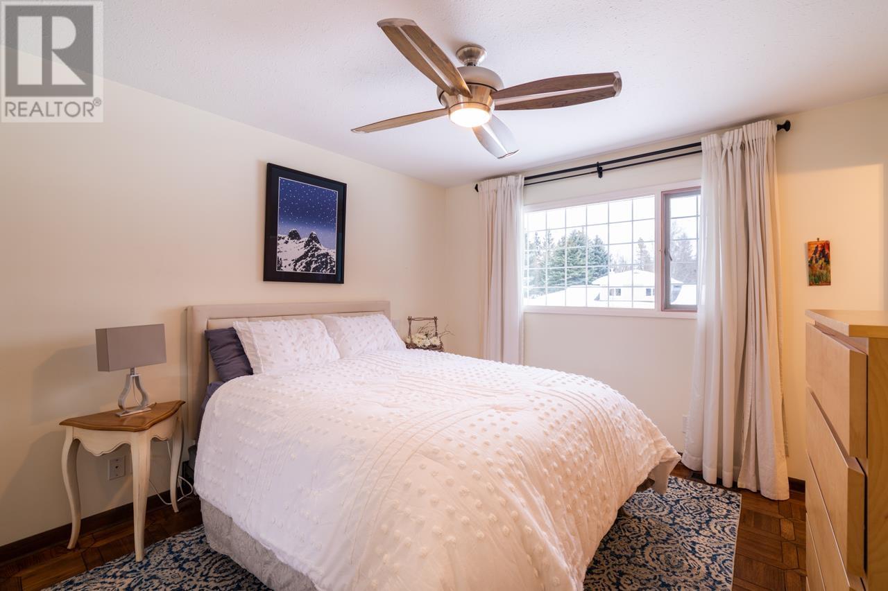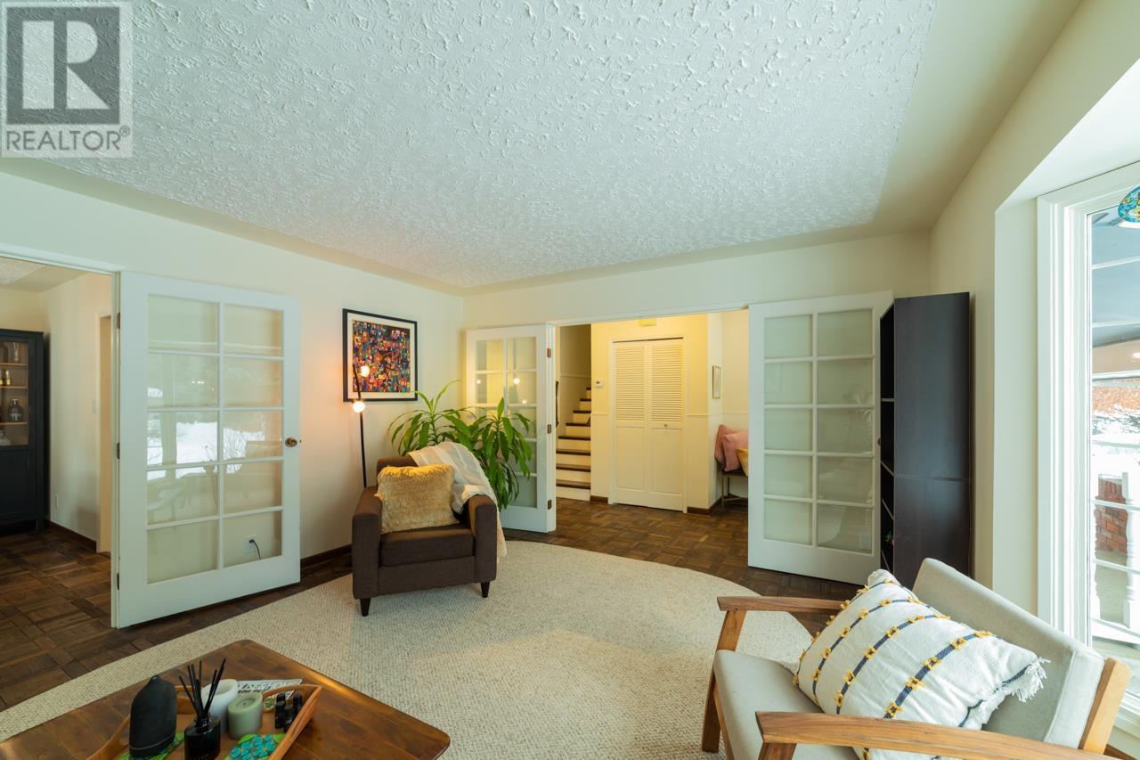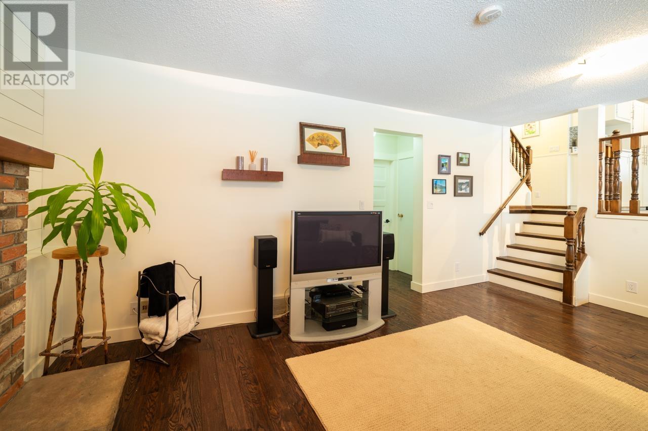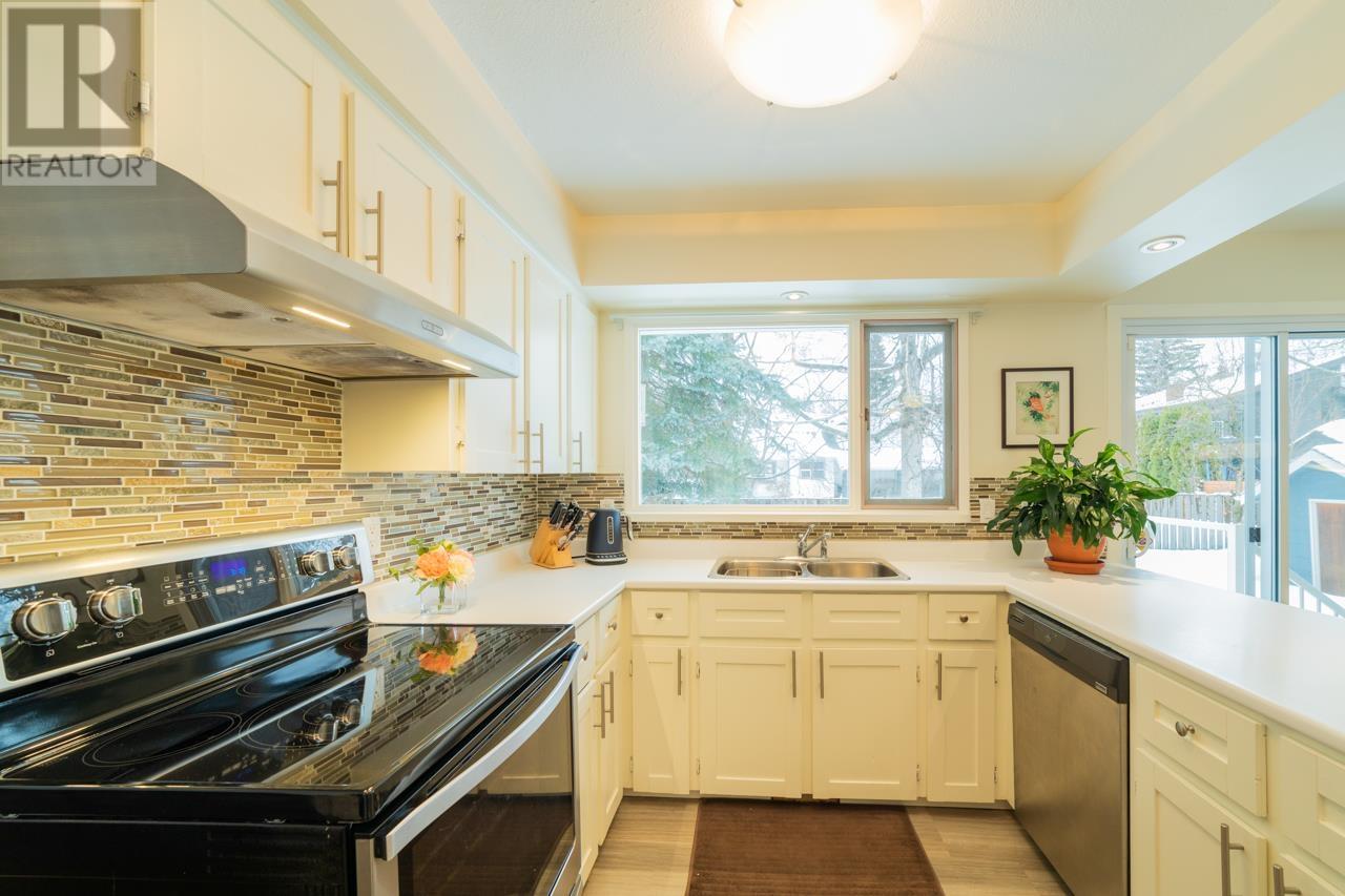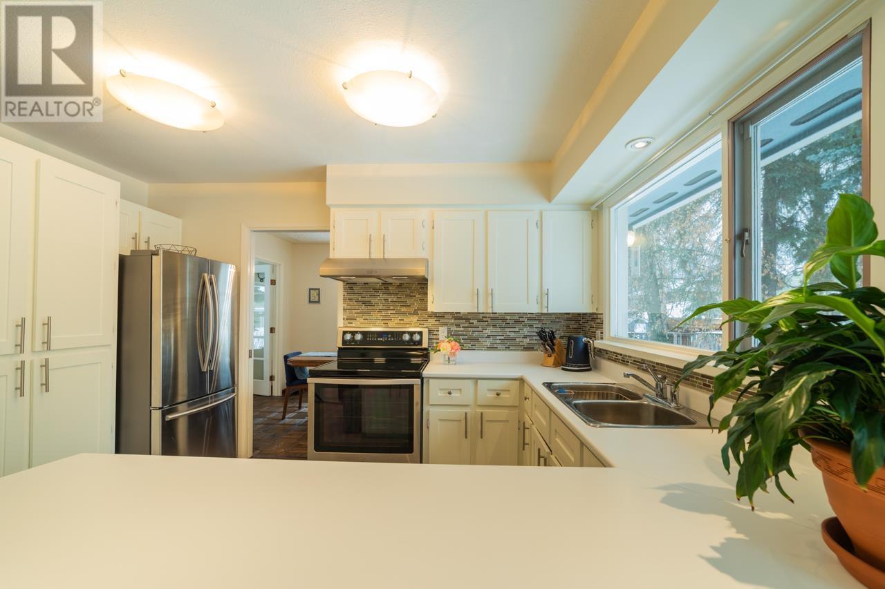 Impressive 5 bedroom, 3 bath home in quiet cul-de-sac, sought after upscale neighbourhood. Snow free covered walkway leads to the elegant front door. French doors grace the living & formal dining room, gorgeous hardwood floors. Glass panelled deck showcases the treed backyard. Bright kitchen overlooks the cozy family room level with wood fireplace, guest bedroom, inviting 3 pc spa bathroom with floating vanity & hallway to the garage. 3 bedrooms upstairs, large 2-piece ensuite off primary. 5th bed or office and 2nd large family room in the bsmt. Large crawl space storage. Drive thru garage to backyard. Close to shopping, restaurants, UNBC and parks. Truly a well cared for family home with lovely finishing. All measurements approx buyer to verify if deemed important. (id:22211)