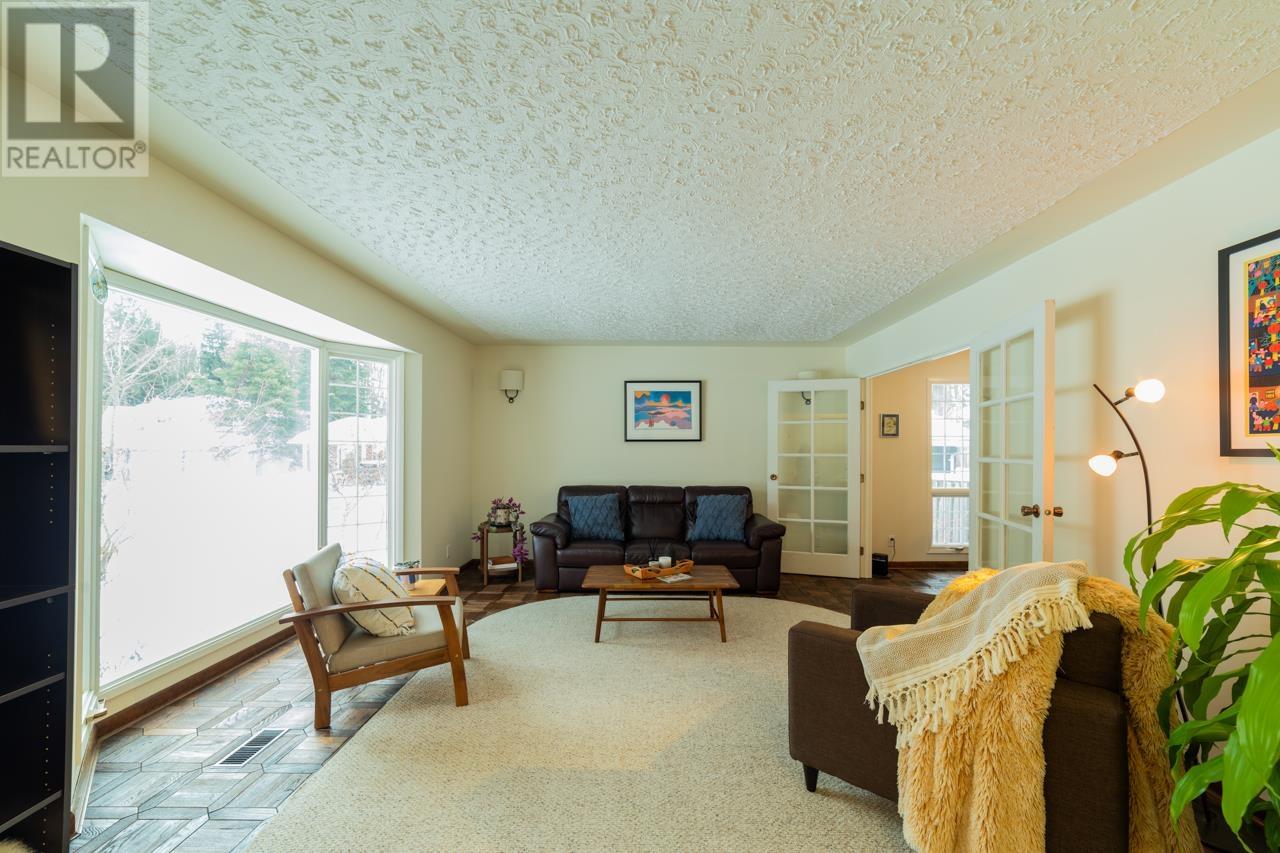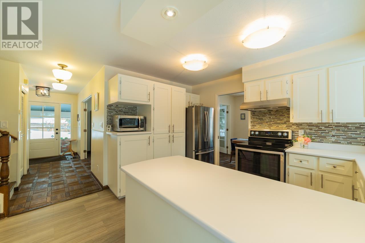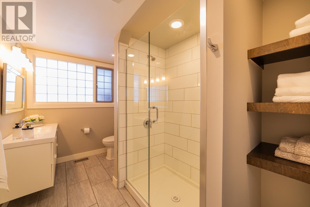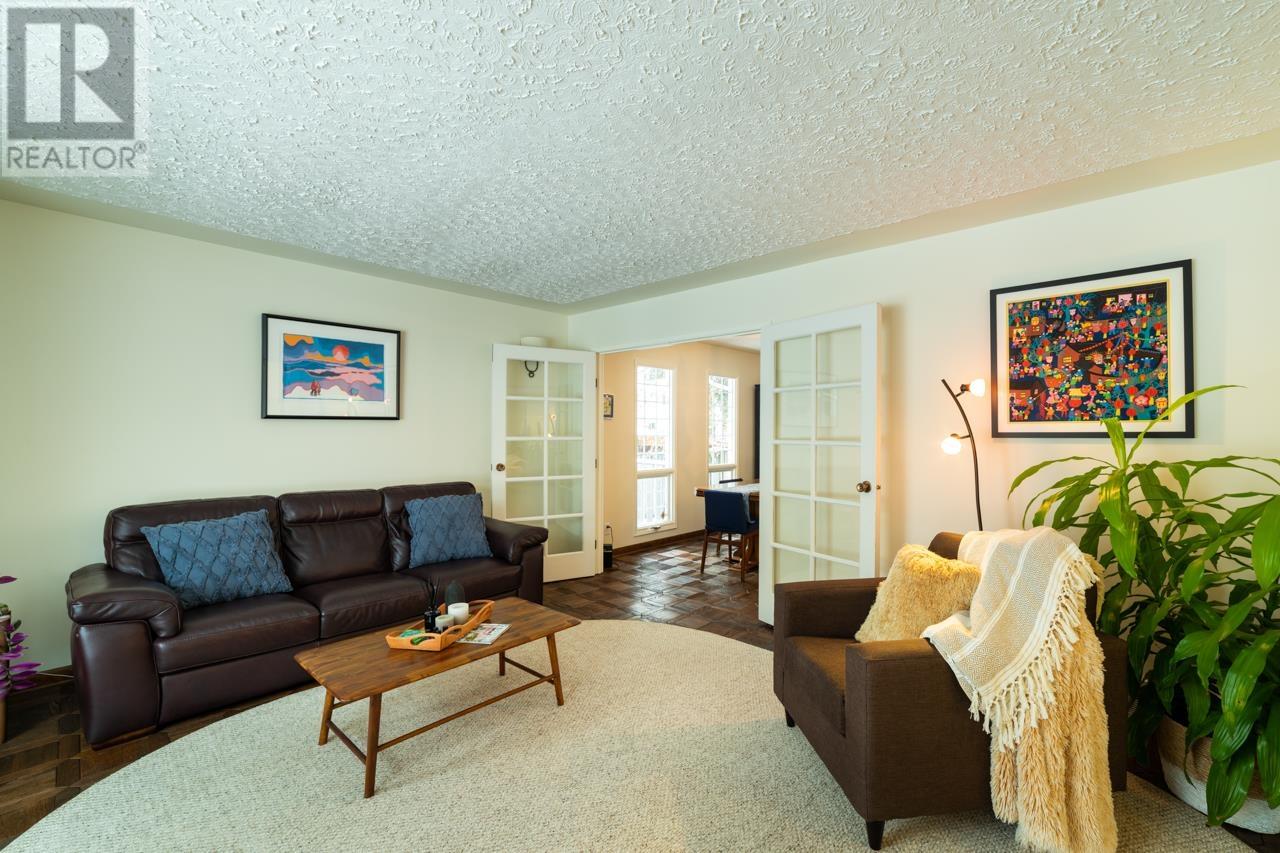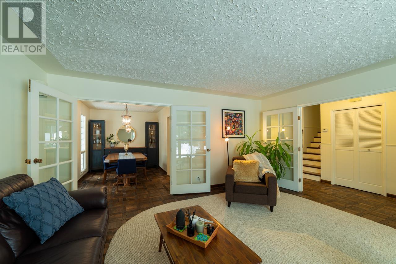 Impressive 5 bedroom, 3 bath home in quiet cul-de-sac, sought after upscale neighbourhood. Snow free covered walkway leads to the elegant front door. French doors grace the living & formal dining room, gorgeous hardwood floors. Glass panelled deck showcases the treed backyard. Bright kitchen overlooks the cozy family room level with wood fireplace, guest bedroom, inviting 3 pc spa bathroom with floating vanity & hallway to the garage. 3 bedrooms upstairs, large 2-piece ensuite off primary. 5th bed or office and 2nd large family room in the bsmt. Large crawl space storage. Drive thru garage to backyard. Close to shopping, restaurants, UNBC and parks. Truly a well cared for family home with lovely finishing. All measurements approx buyer to verify if deemed important. (id:22211)