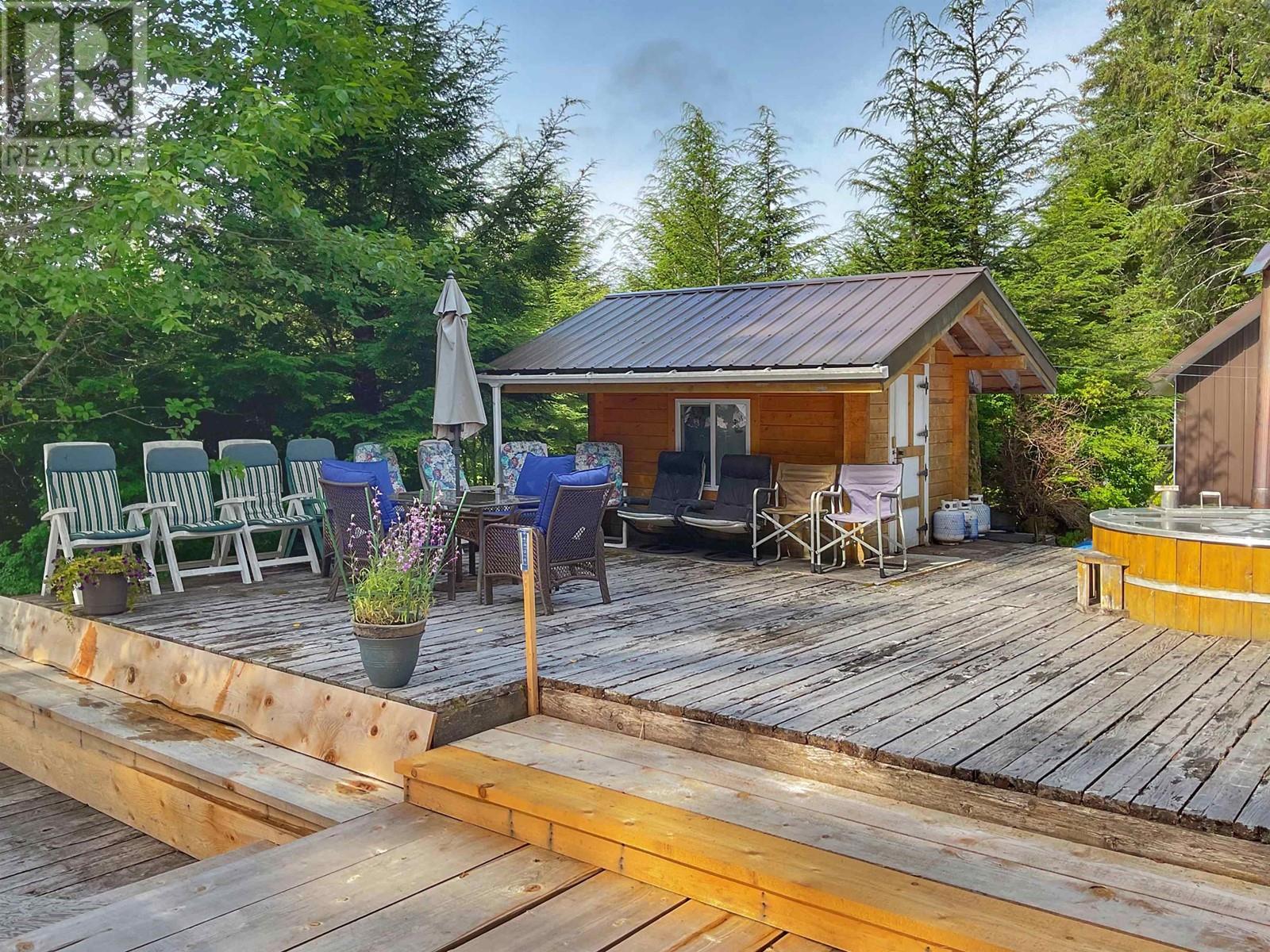 * PREC - Personal Real Estate Corporation. This phenomenal oceanfront property is located near the mouth of the Skeena River and features a beautifully renovated 3-bedroom house. The main floor is open and bright and is equipped with a custom-built island kitchen with solid-surface countertops, freestanding wood stove, cozy living room and spacious bathroom. Although you're off the grid, you'll enjoy all the modern amenities, such as internet and satellite TV, thanks to the state-of-the-art solar power system. Soak in the views from the expansive sundecks that surround the home, which also features a wood-burning hot tub. In the back you'll find a 32'x62' woodshed/workshop, as well as other outbuildings to store your belongings in. Go fishing or exploring--all from your own doorstep! This is living the West Coast Dream!! (id:22211)
