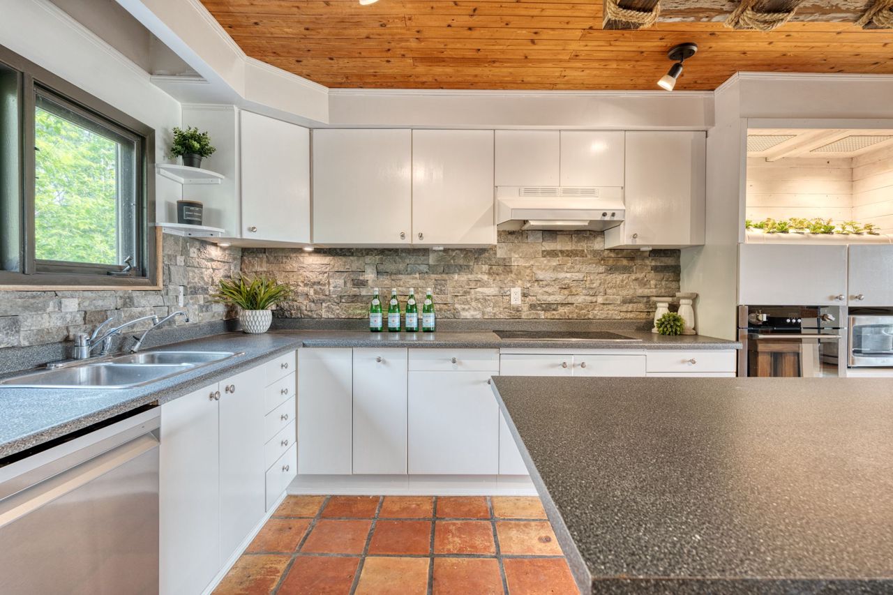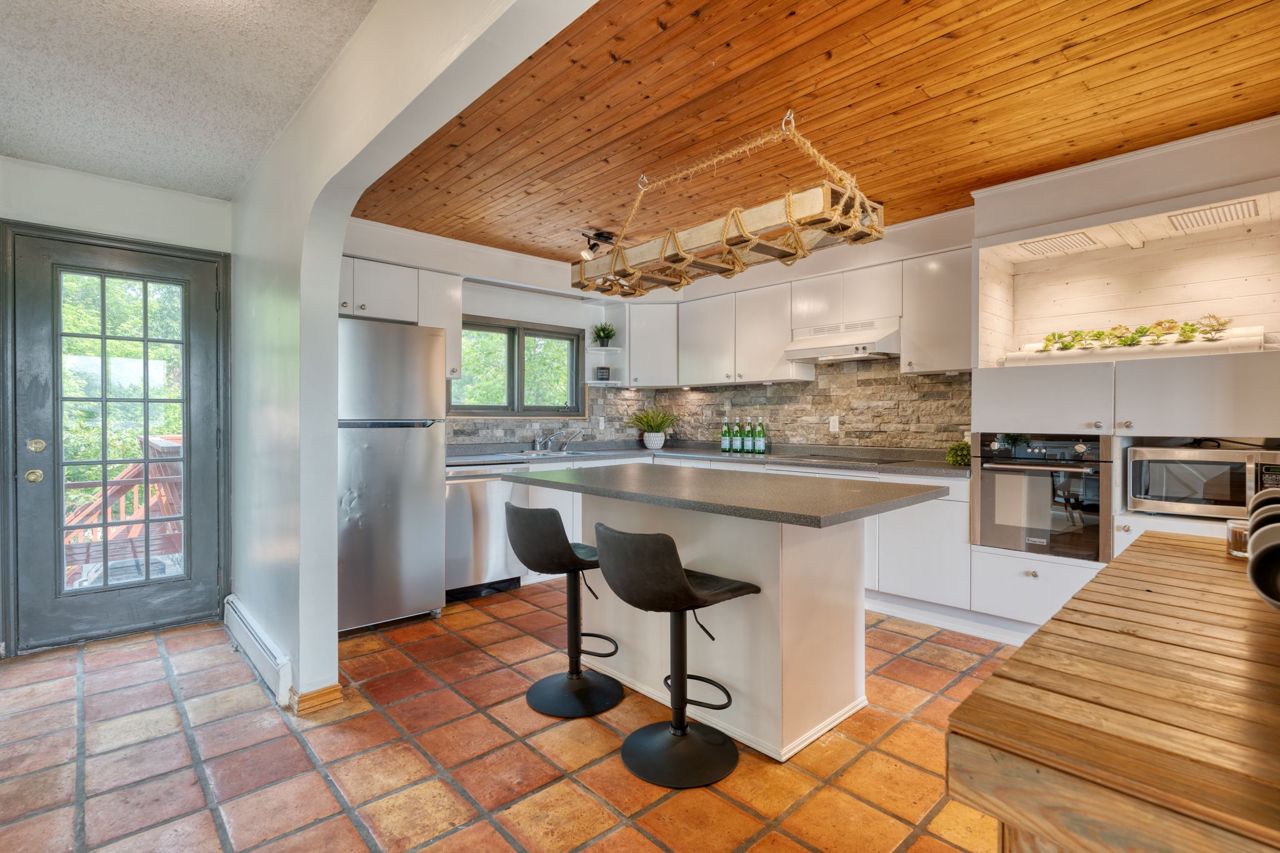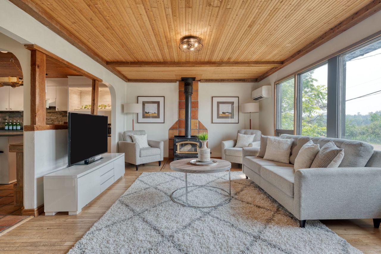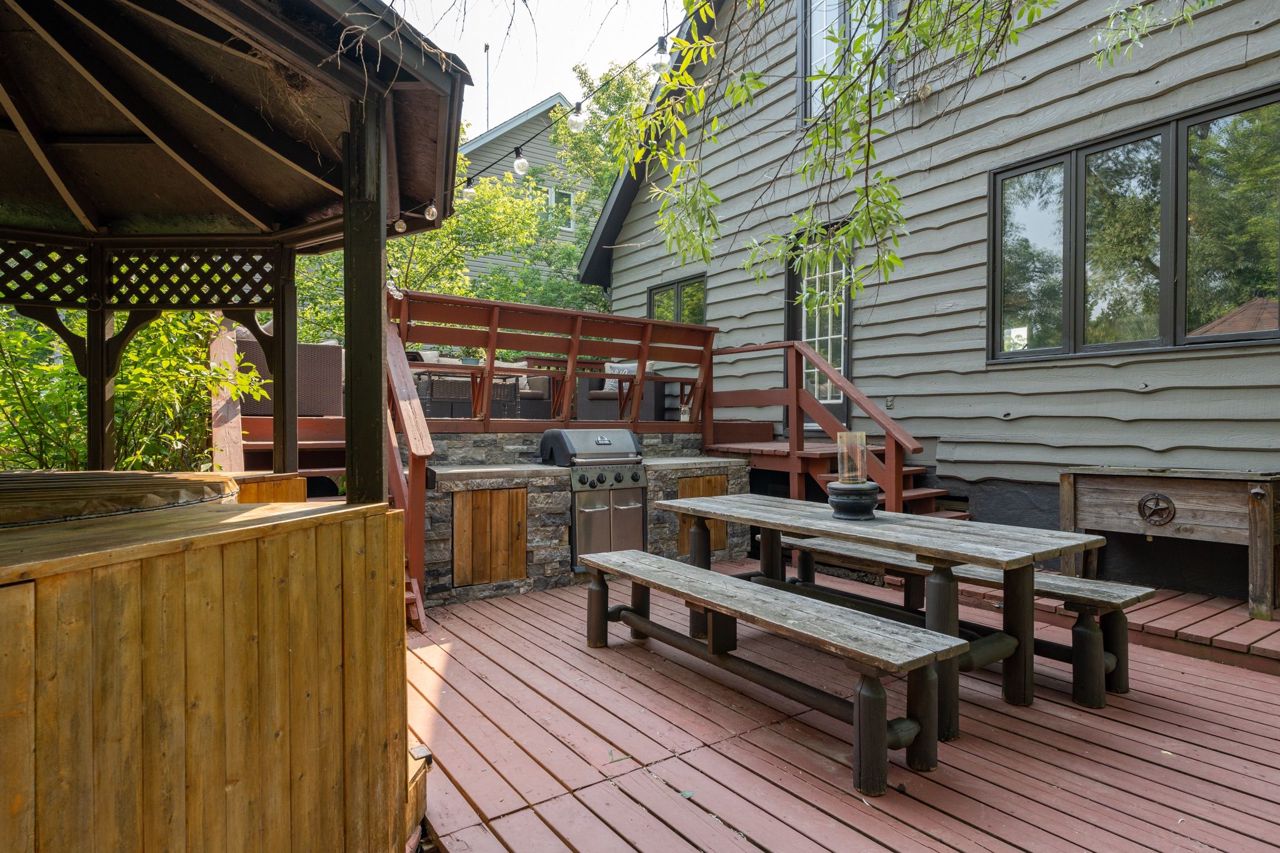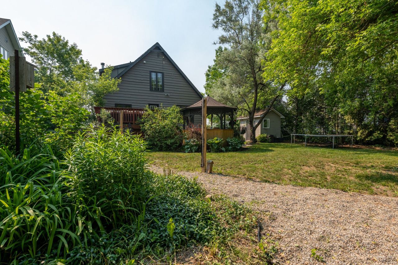 Chalet near city on lake close to 401 commuters, nature lovers! 1/4acre private property backs on GRCA view of lake, trails close to amenities. year round activities, canoe, swim off floating dock, fishing, skating. 2+1Bdrm 2bath cottage living with efficient systems. Open concept living room, fireplace, updated kitchen, dining room, greenspace. Backyard oasis, splitlevel Deck, Gazebo, hottub, bar, built in outdoor kitchen with BBQ, firepit & dome for stay-cation. Basement has 4-pce bath, Rec.Room & bed/study. 2nd floor has bdrm and large Master Bdrm (balcony looking at Lake, spa bath walk-in shower & Jacuzzi. 2nd drive behind double-wide gate for parking boat! Updates upgraded 200amp panel (2016), 4 EFFICIENT multi-split heat/AC pumps entirely replaced need for oil. Iron softener, UV & Reverse Osmosis, full septic and well inspection serviced regularly, new well pump 2017. Features include some newer windows, 220v car charger, 2023 kitchen, new appliances, interior & exterior paint.