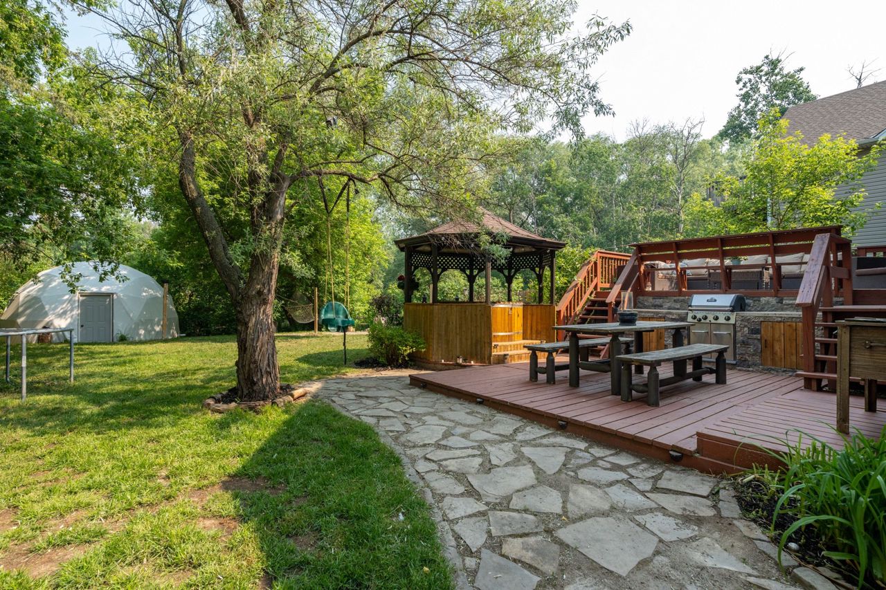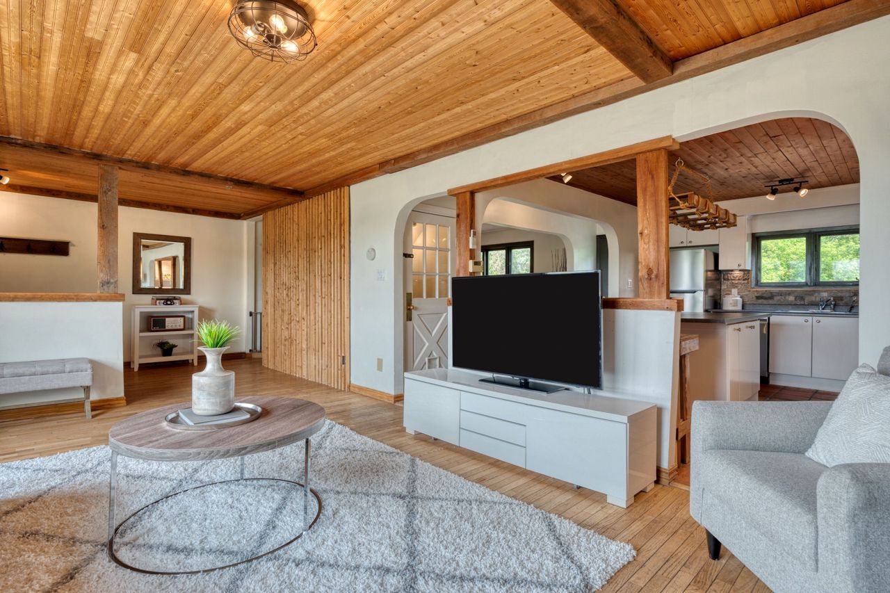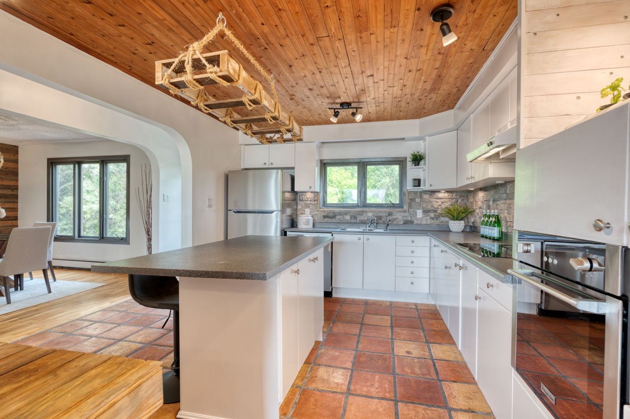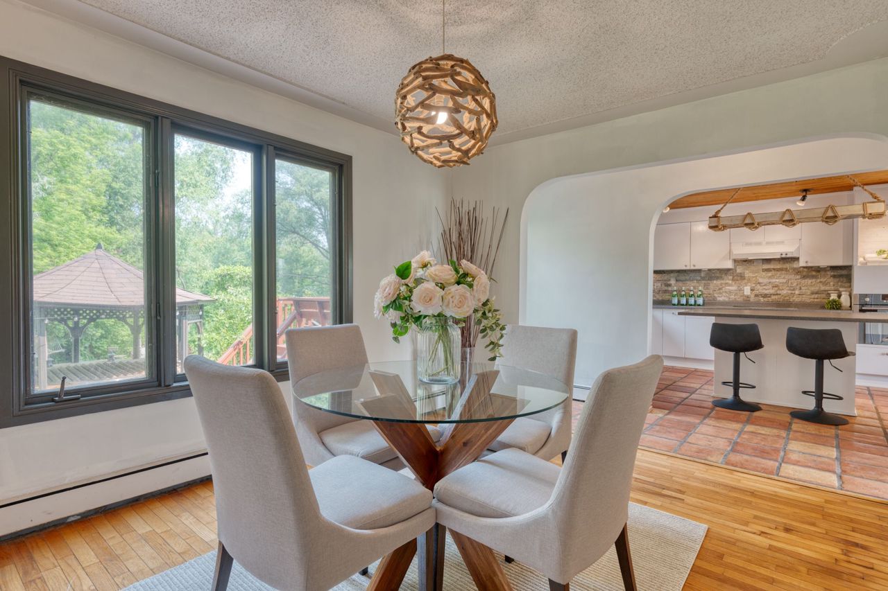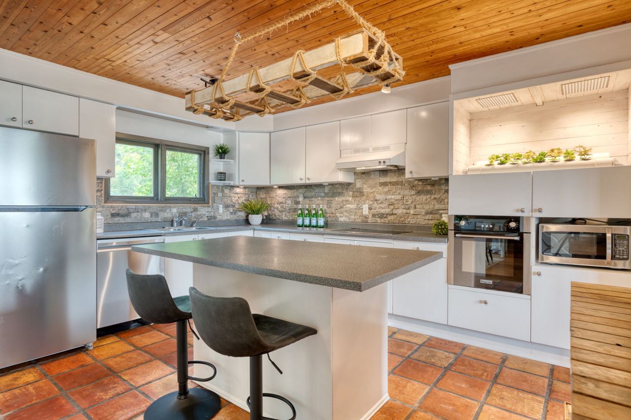 Chalet near city on lake close to 401 commuters, nature lovers! 1/4acre private property backs on GRCA view of lake, trails close to amenities. year round activities, canoe, swim off floating dock, fishing, skating. 2+1Bdrm 2bath cottage living with efficient systems. Open concept living room, fireplace, updated kitchen, dining room, greenspace. Backyard oasis, splitlevel Deck, Gazebo, hottub, bar, built in outdoor kitchen with BBQ, firepit & dome for stay-cation. Basement has 4-pce bath, Rec.Room & bed/study. 2nd floor has bdrm and large Master Bdrm (balcony looking at Lake, spa bath walk-in shower & Jacuzzi. 2nd drive behind double-wide gate for parking boat! Updates upgraded 200amp panel (2016), 4 EFFICIENT multi-split heat/AC pumps entirely replaced need for oil. Iron softener, UV & Reverse Osmosis, full septic and well inspection serviced regularly, new well pump 2017. Features include some newer windows, 220v car charger, 2023 kitchen, new appliances, interior & exterior paint.