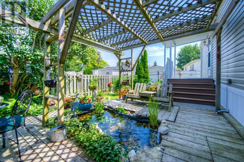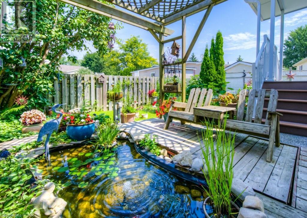 Incredibly well maintained home in a friendly gated community South of Guelph and just north of HWY 401. This 2 bedroom 2 bathroom home in MiniLakes is set up to take advantage of one of the best lots in the neighbourhood. Enjoy your own backyard oasis of lush gardens, a covered gazebo and the perfect place to relax and BBQ with friends on a nice day. Speaking of friends, did I mention that this is one of the friendliest communities around. Everywhere you go, people smile and wave or say hello. When you walk inside you will find a clean, well maintained home with a spacious main living area, nicely appointed kitchen as well as a dedicated dining area for meals and time with friends. The primary bedroom includes a 2-piece ensuite as well as your laundry for convenience. Tour this lovely home, take a drive around the neighbourhood and see the lakes, pool, Bocce court, and of course the friendly neighbours that always wave. You can even reserve your own vegetable garden plot to enjoy fresh vegetables all summer long. (id:22211)