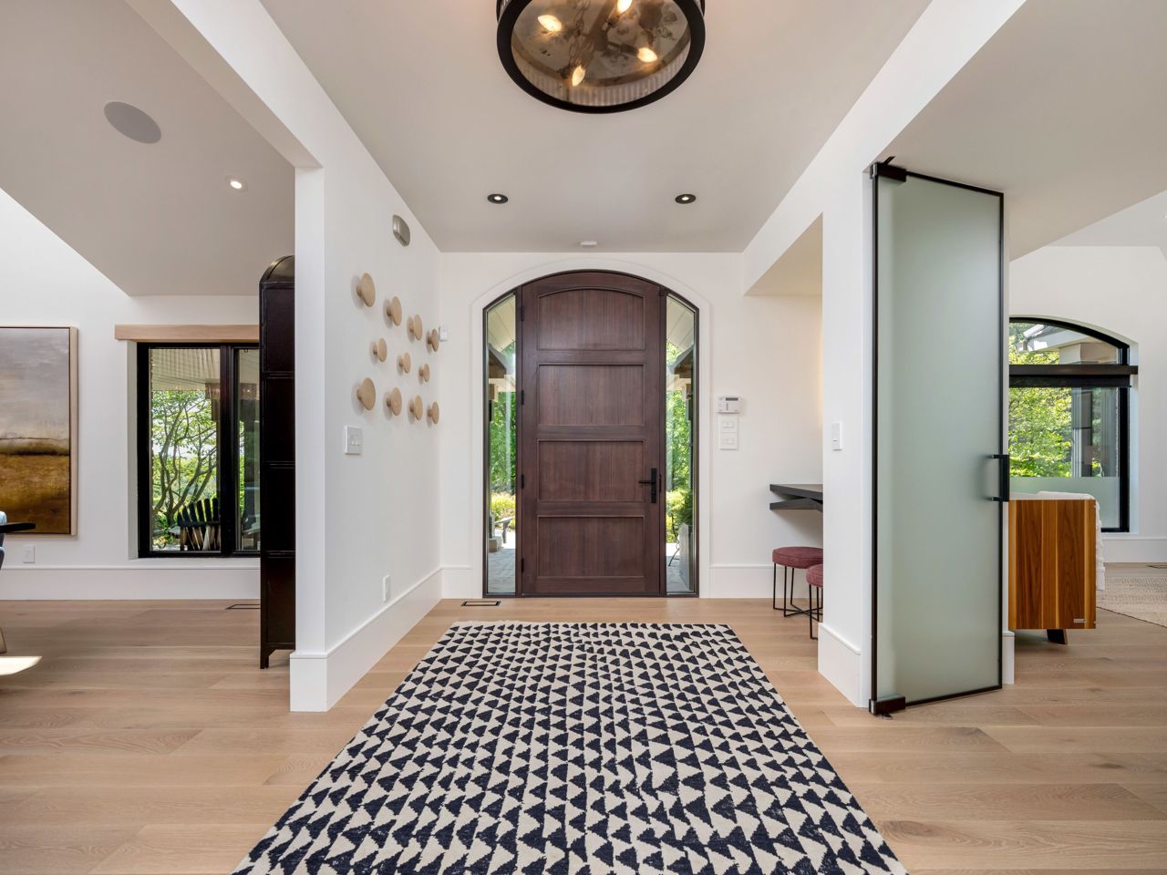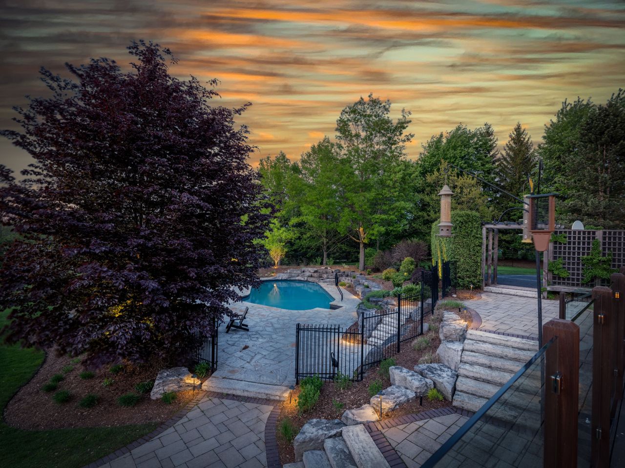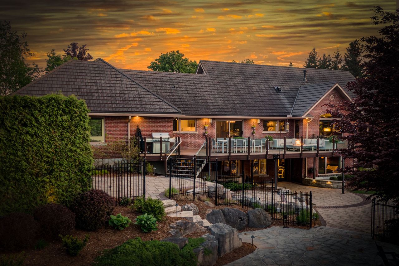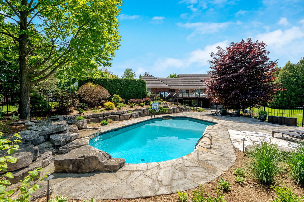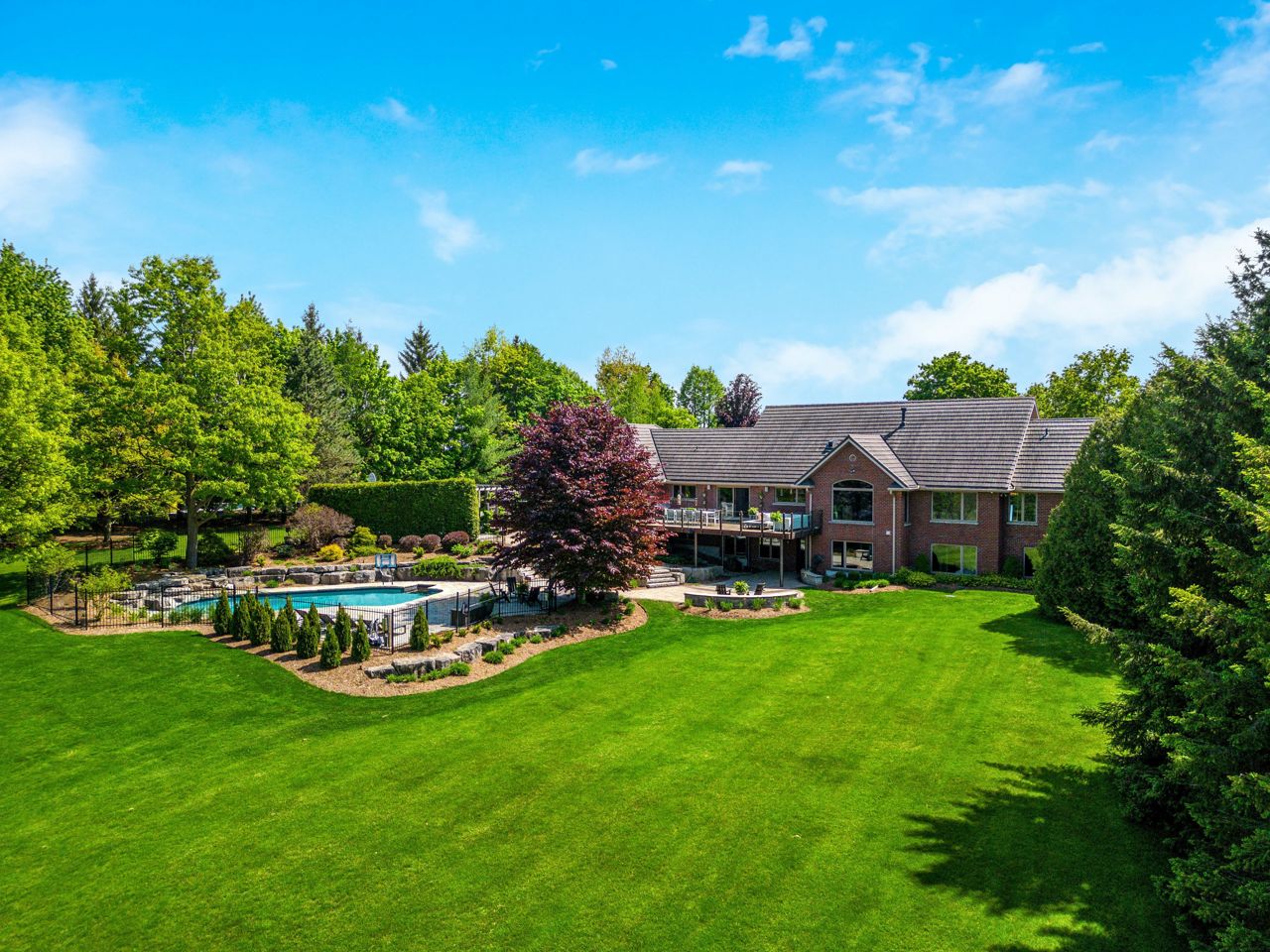 The epitome of elegance & modern sophistication greets you as you drive up an extensive driveway towards your dream home. Set atop a 1.8 acre private lot with an abundance of lush gardens & foliage, one of the most marvelled homes in the prestigious Fox Run Estates. Jaw dropping backyard retreat with multi-level surroundings of steel framed Brazilian hardwood & glass adorned deck, armour stone gardens, & Credit Valley sandstone walkways. Beautifully surrounded by trees & shrubs for the ultimate private oasis, enjoy the heated inground salt water pool with waterfall feature. 5000 sqft of contemporary living space, stunning custom eat-in kitchen with Dekton & Quartz countertops, Gaggenau appliances, modern vertical slat white oak feature walls to dining room, stone adorned gas fireplace, ceiling heights as high as 15ft vaulted, expanded large windows, wide plank white oak hardwood flooring, the list goes on and on. Backing onto 7 untouchable acres with neighbourhood trail behind.W/O basement w/3 bedrooms, office, rec room, family room w/fireplace & two more bathrooms. W/U entry to garage perfect for multi-gen families. Fox Run is highly desired for its secluded feel & convenient access to schools & major amenities.