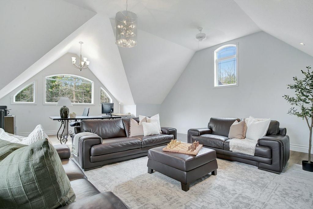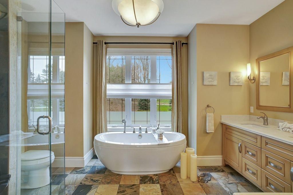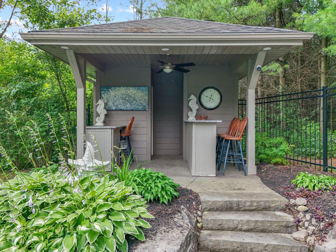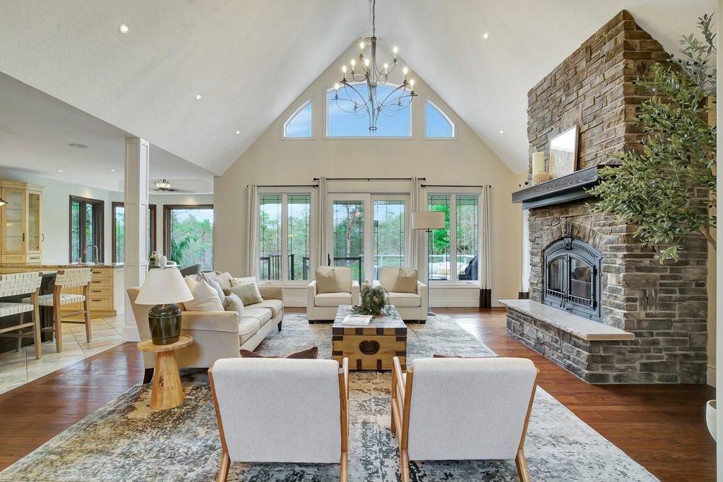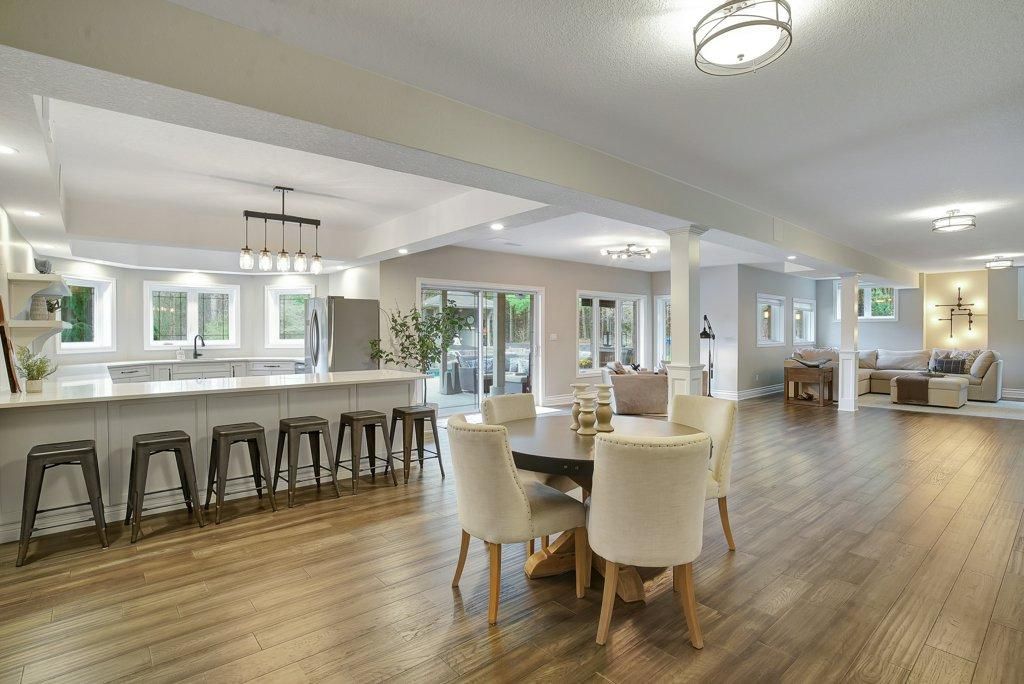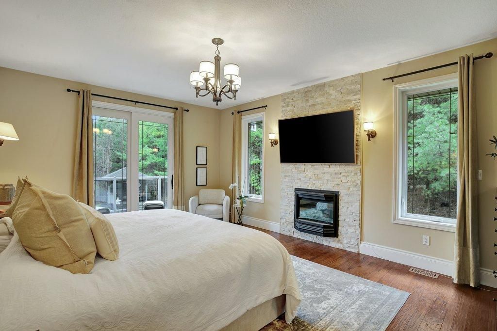 5-bdrm estate on 1.4-acre lot W/backyard oasis nestled amidst mature trees! The winding tree-lined driveway reveals stately stone bungaloft W/oversized garage W/car lift to accommodate 4 cars & landscaped grounds. Grand 2-story foyer welcomes you to spectacular great room W/bamboo hardwood, vaulted ceilings & wall of windows. Floor-to-ceiling stone fireplace adds touch of warmth. Custom kitchen W/top-tier appliances, granite countertops & high-end cabinetry W/glass accents. Massive island invites casual dining & complemented by luxurious conveniences such as pot filler, W/I pantry with B/I beverage fridge & wine racks. Adjacent to kitchen is sun-drenched reading nook W/beautiful views. Dining room W/bamboo hardwood, elegant lighting & expansive window. Primary suite W/bamboo hardwood & floor-to-ceiling stone fireplace. Dbl doors open to dressing room W/custom B/Is. Spa-like ensuite W/soaker tub, glass shower & expansive dbl sink vanity W/quartz counters. There is a private balcony overlooking the pool! There are 2 add'l main-floor bdrms each W/private ensuites & W/I closets. The bonus 700sqft + loft W/vaulted ceilings offers versatile space for an office, playroom or movie room all supported by Fiber Optic High-Speed Internet. B/I speakers throughout main floor & outside. Renovated W/O bsmt W/huge rec area, engineered hardwood, secondary full kitchen W/quartz counters & breakfast bar ideal for casual dining. There is a workout room, 2 bdrms & bathroom. This space is set up for in-law suite making it ideal for multi-generational families! Unwind on terrace W/glass railings for unobstructed views of saltwater pool & forest beyond. Descend the spiral staircase to patio offering sunlit areas & shaded retreats. Saltwater pool W/stone waterfall becomes centre piece for entertainment. Generator offers peace of mind guaranteeing power during any outages. Mins from South-End Guelph amenities, 15-min to 401, 30-min to Mississauga, 1hr to Toronto & 40-min to Toronto Airport