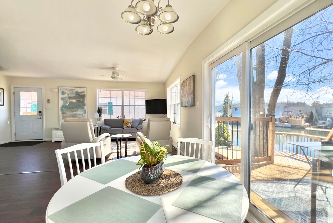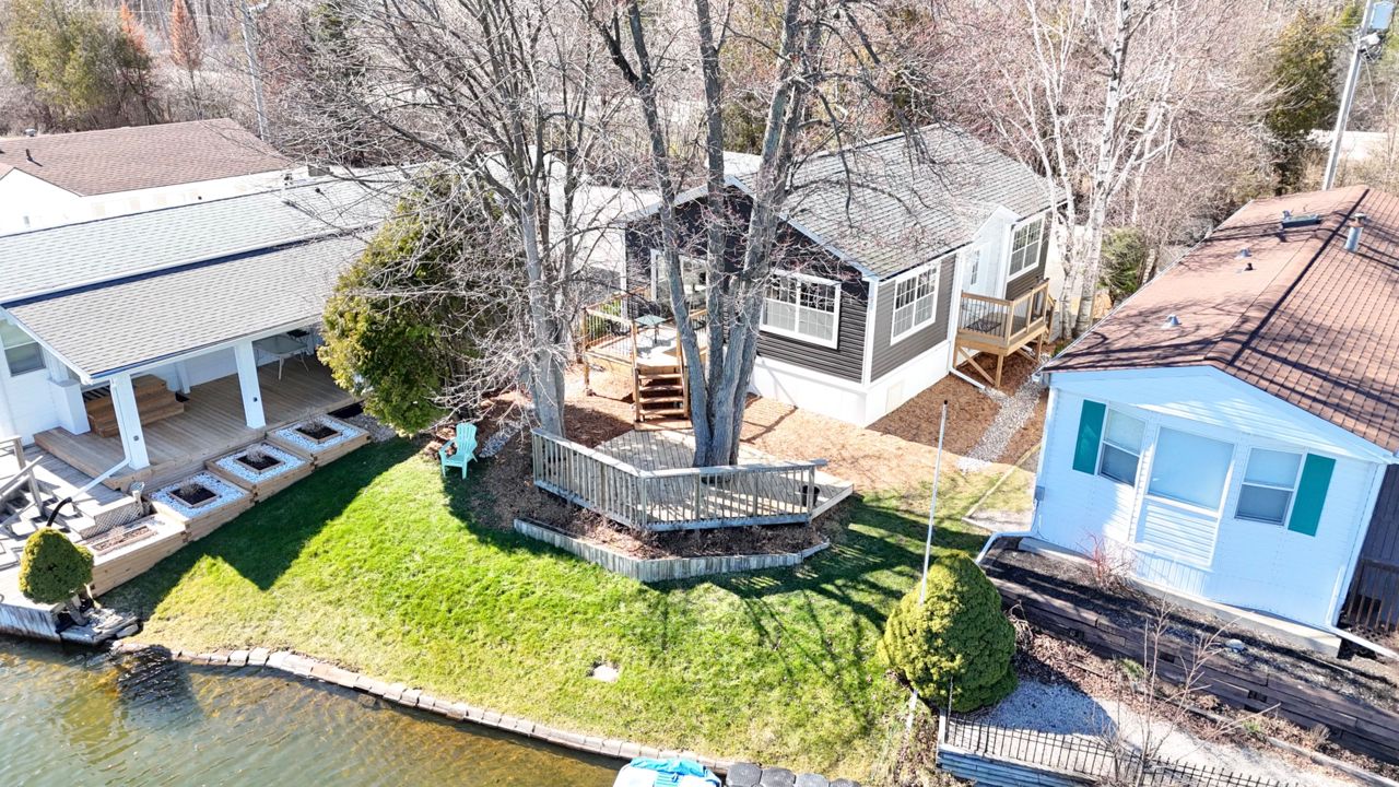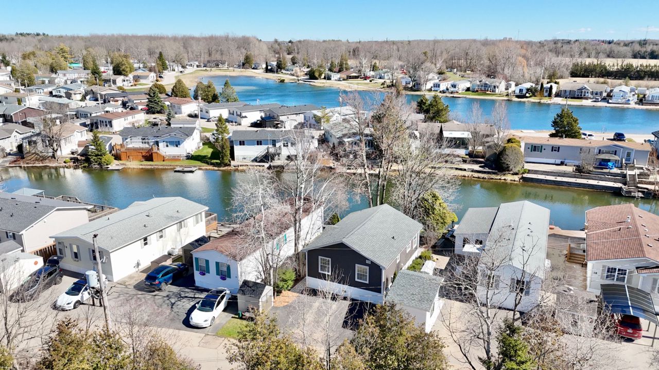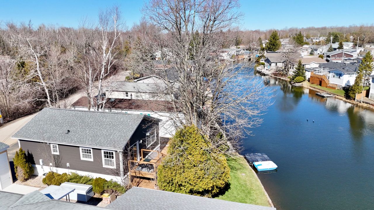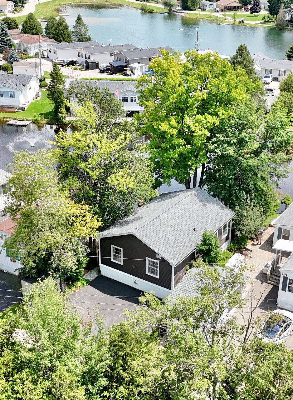 Welcome to your new oasis at 22 Jasper Heights. This is a freehold property within the common elements condominium community of Mini-Lakes; a sought after gated neighbourhood with a variety of amenities including common areas, a heated seasonal pool, a lake with excellent swimming and recreational boating, and much more. This recently built two bedroom custom 4-season home sits on a large premium waterfront lot with unique water access. Skate, swim, or fish right from your private lawn or paddle along the canal to enjoy recreation on the lake. Soak in the morning sun shining across the water right into the open concept living room and kitchen, enjoy the breeze and view from the two-tiered deck, or relax on the private dock. Ample secure storage in the included 8x20 sea container located on-site. Convenient local amenities and shopping close by in Guelph with excellent access to the 401.